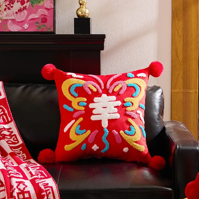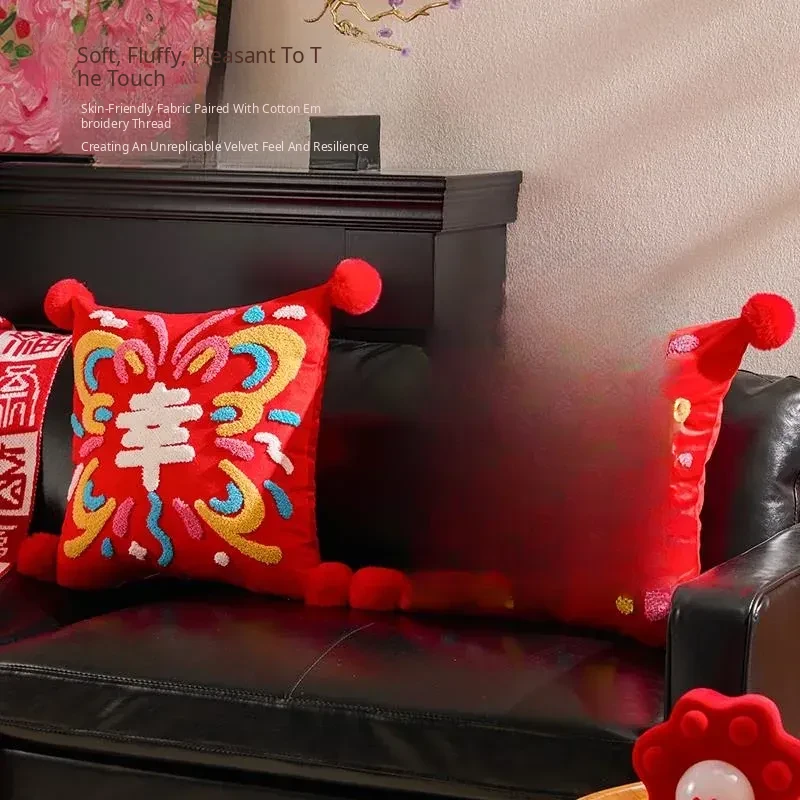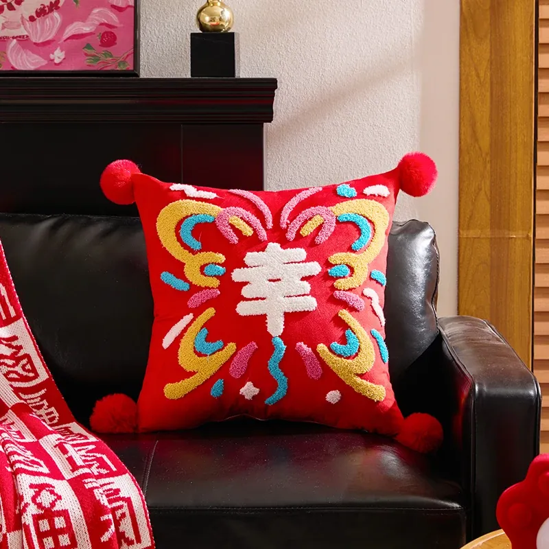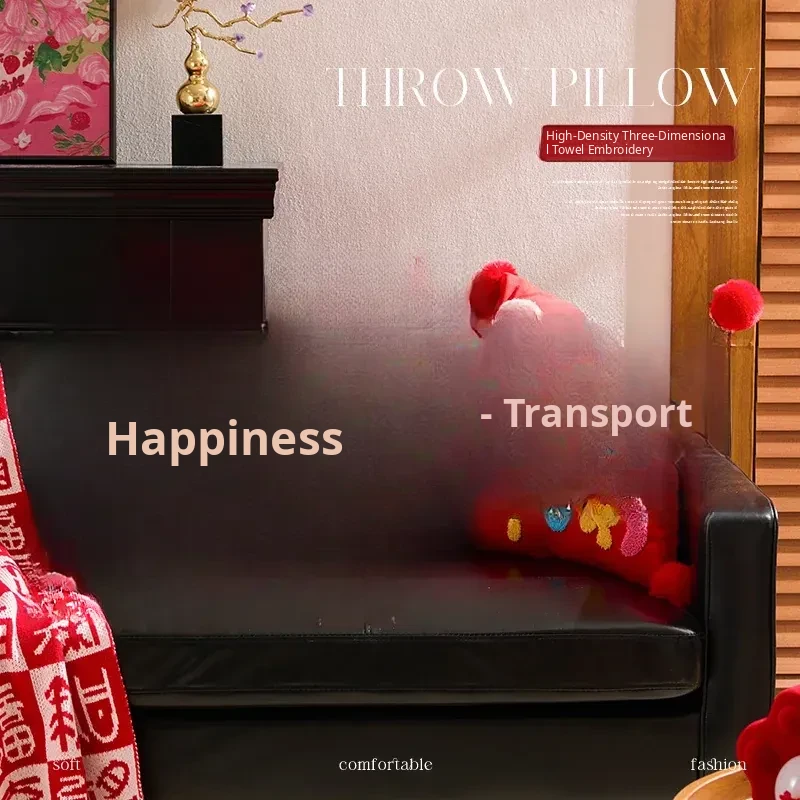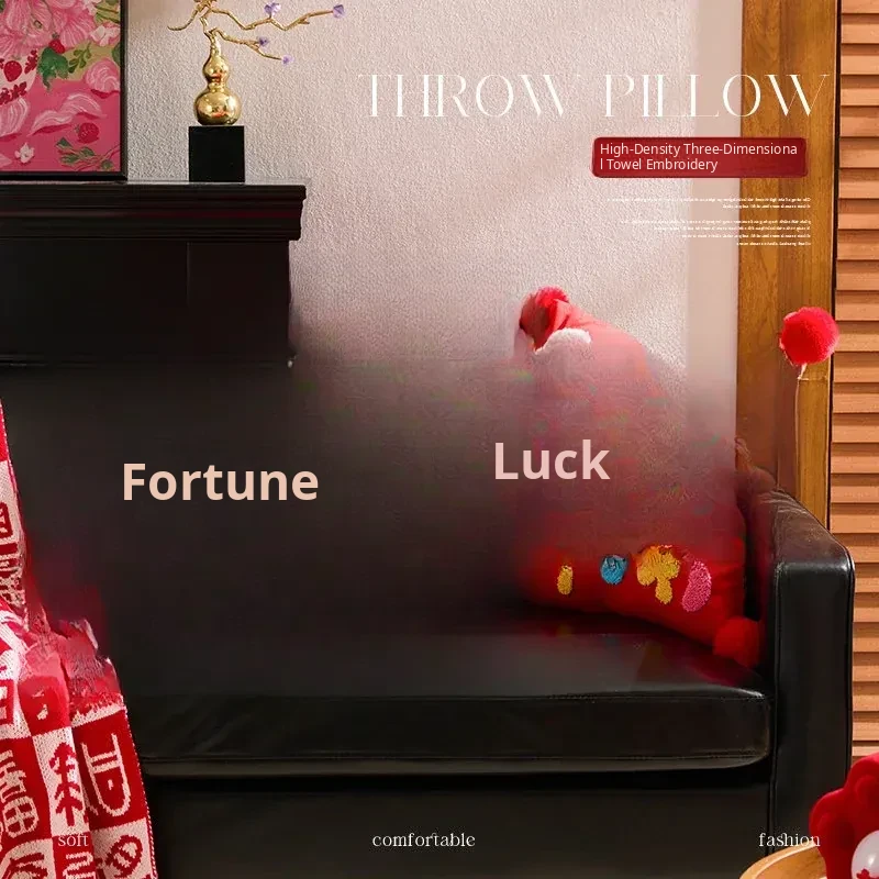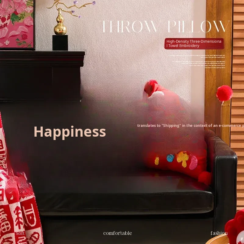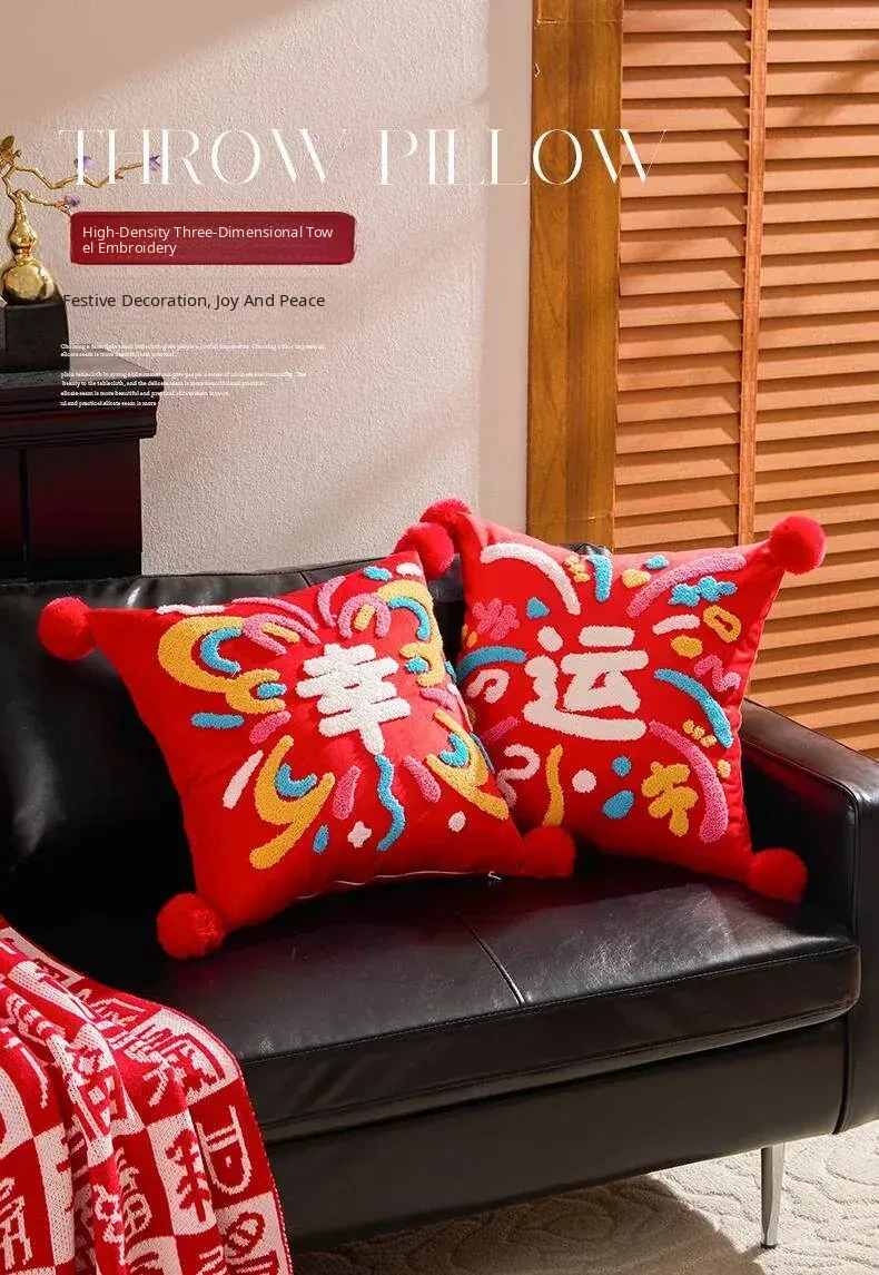 2026 Creative New Year Gift - Luxurious Red Celebration Throw Pillow for Birthdays, Perfect for Living Room Sofas and Decorative Cushions