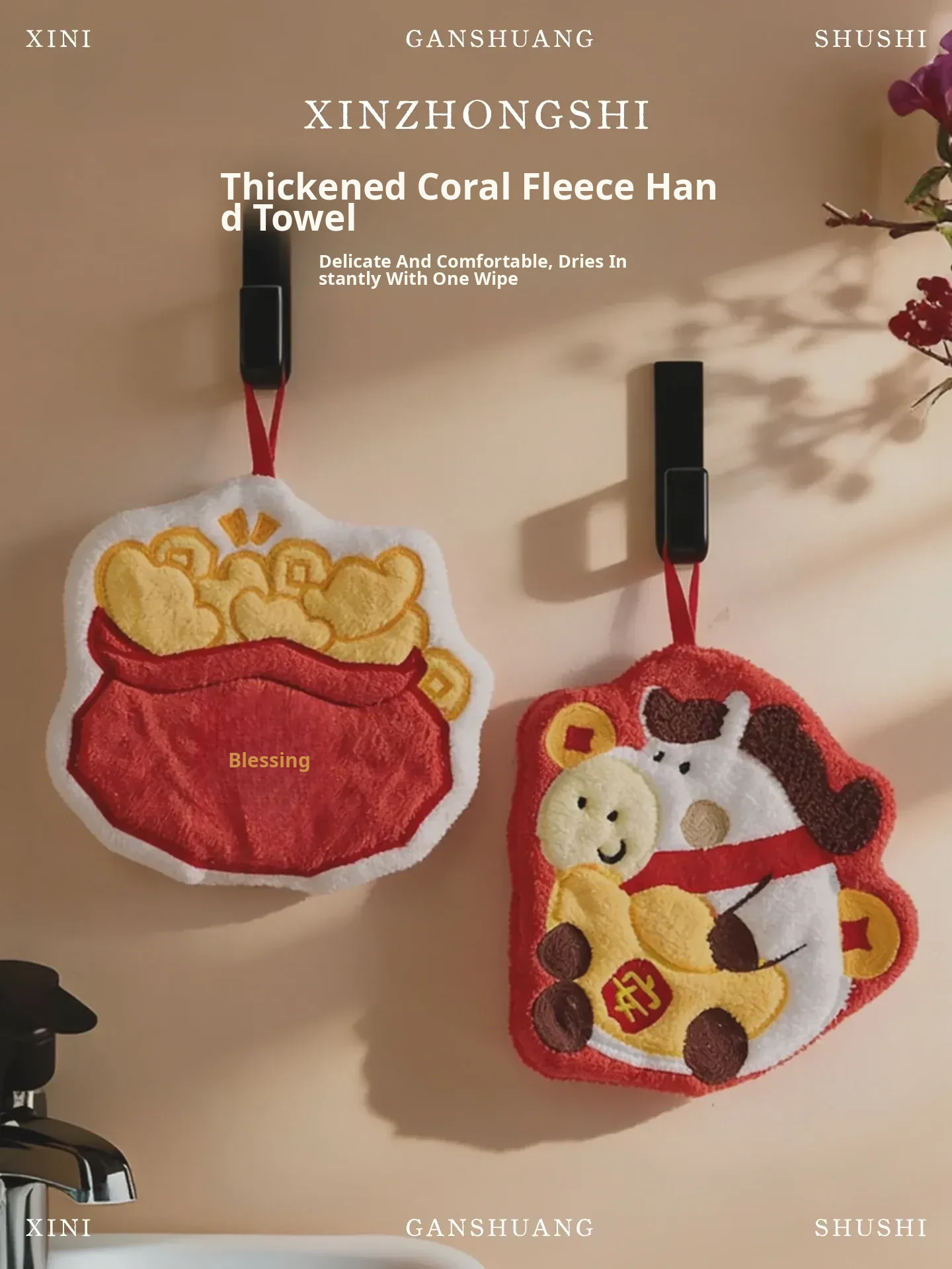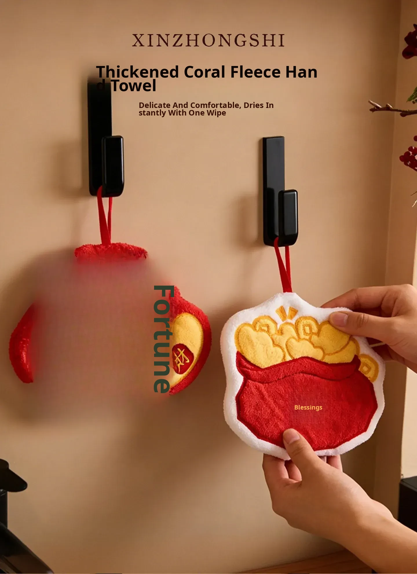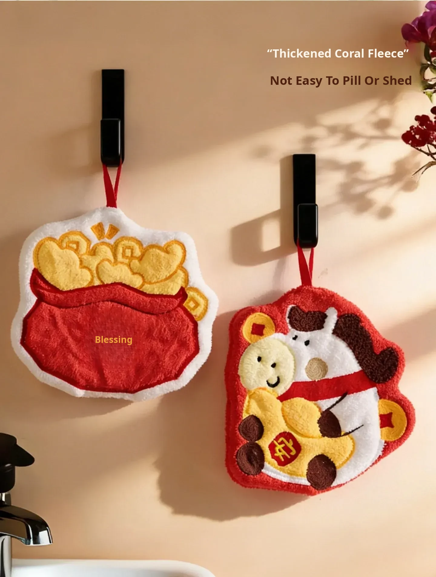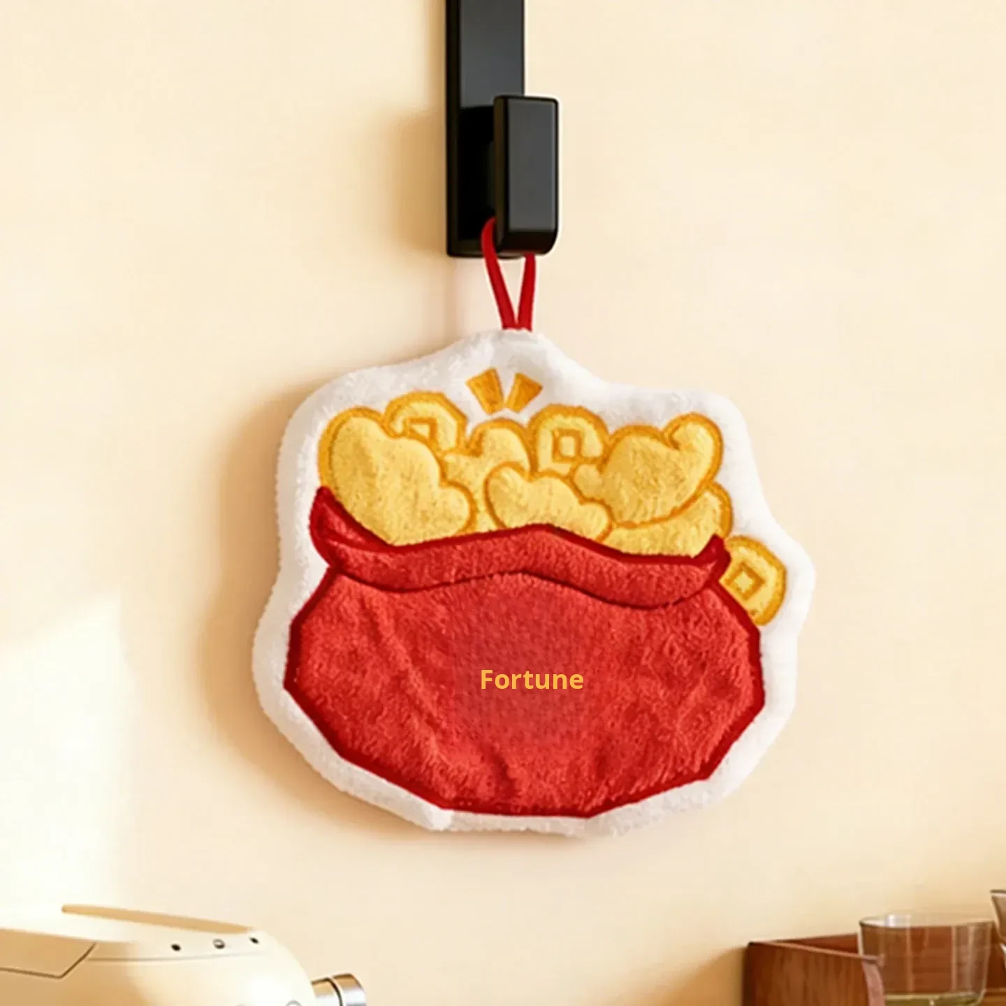 Lucky Fortune Coral Fleece Embroidered Hand Towel(24.5 X 10.04 in)