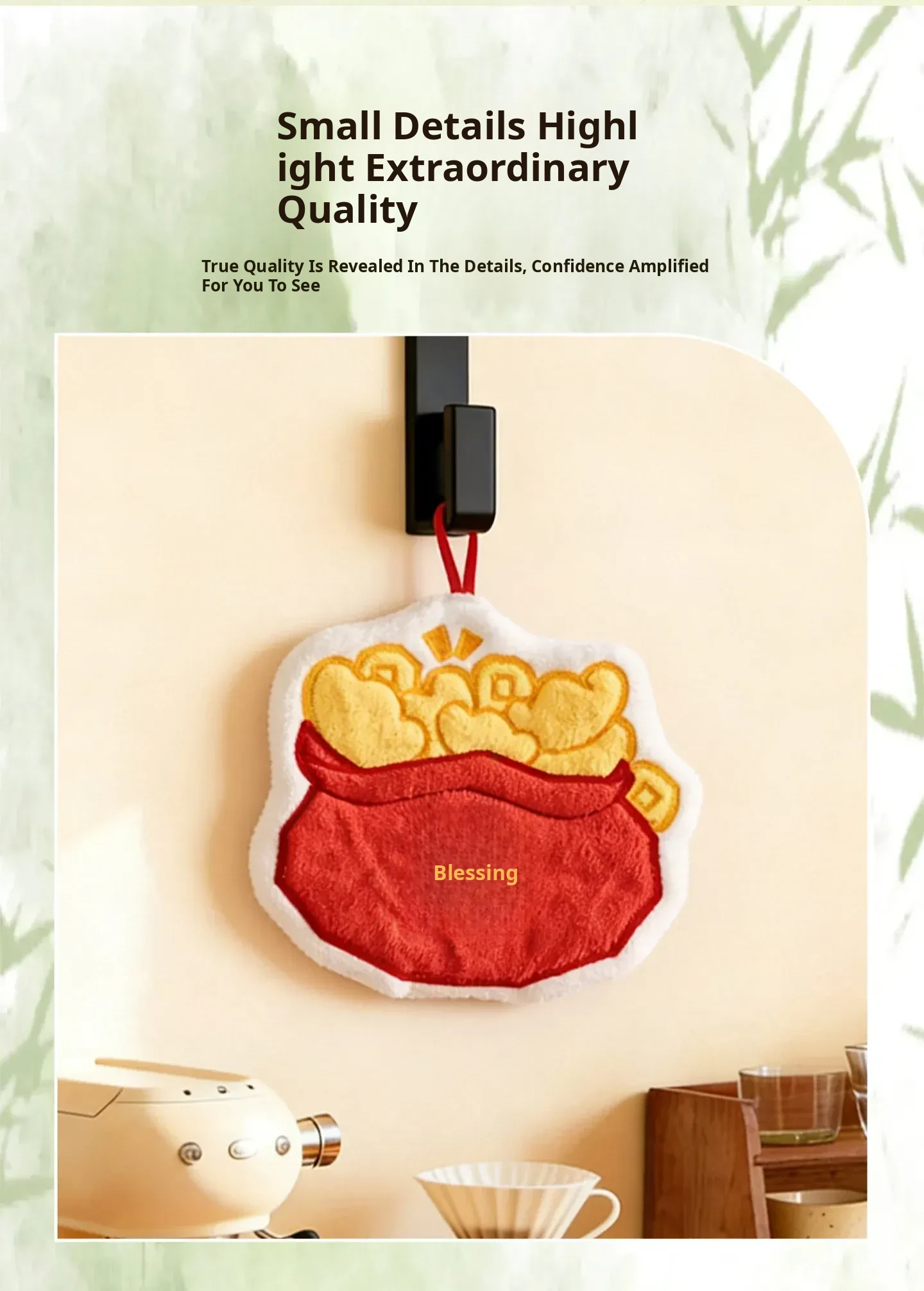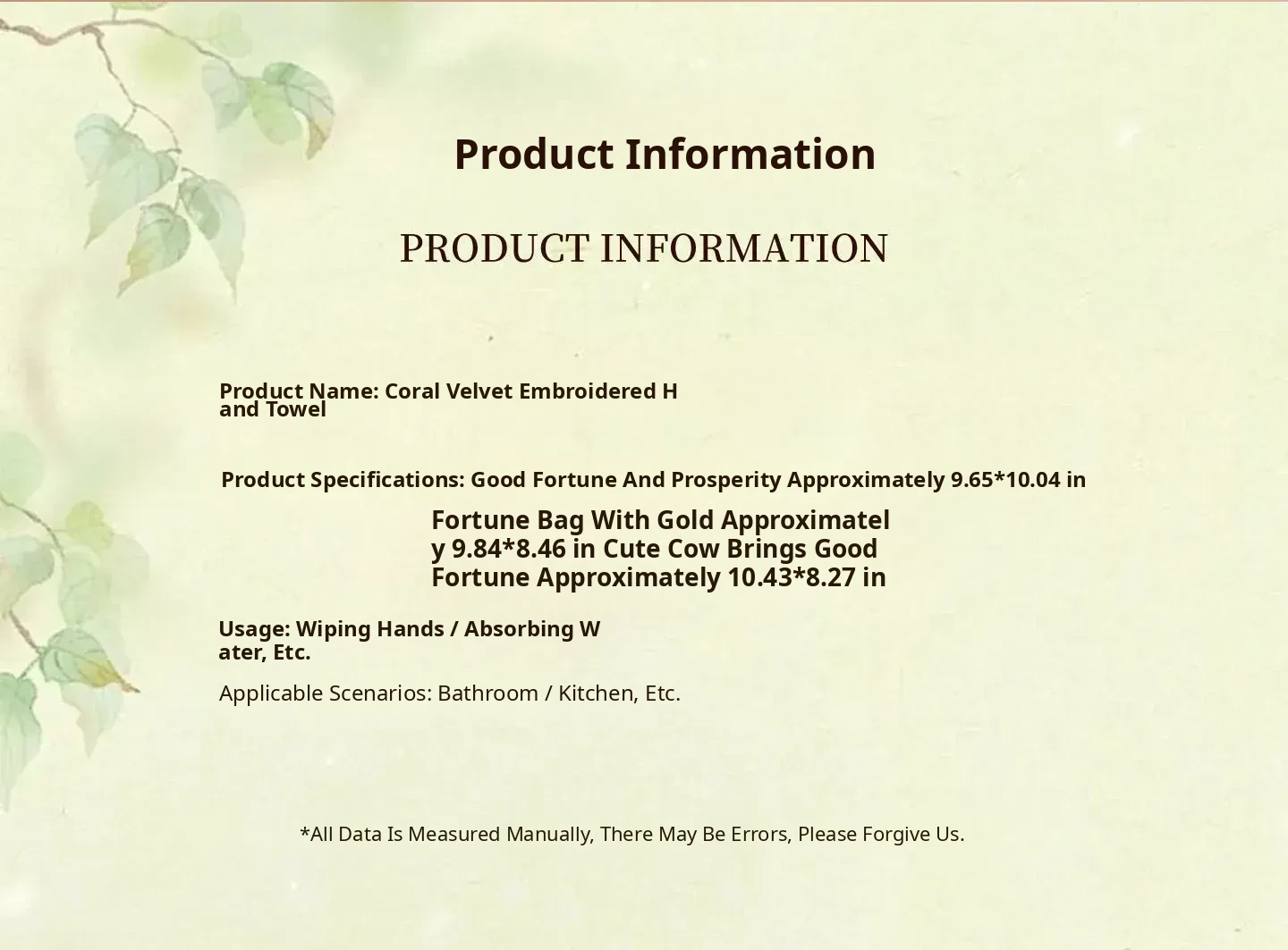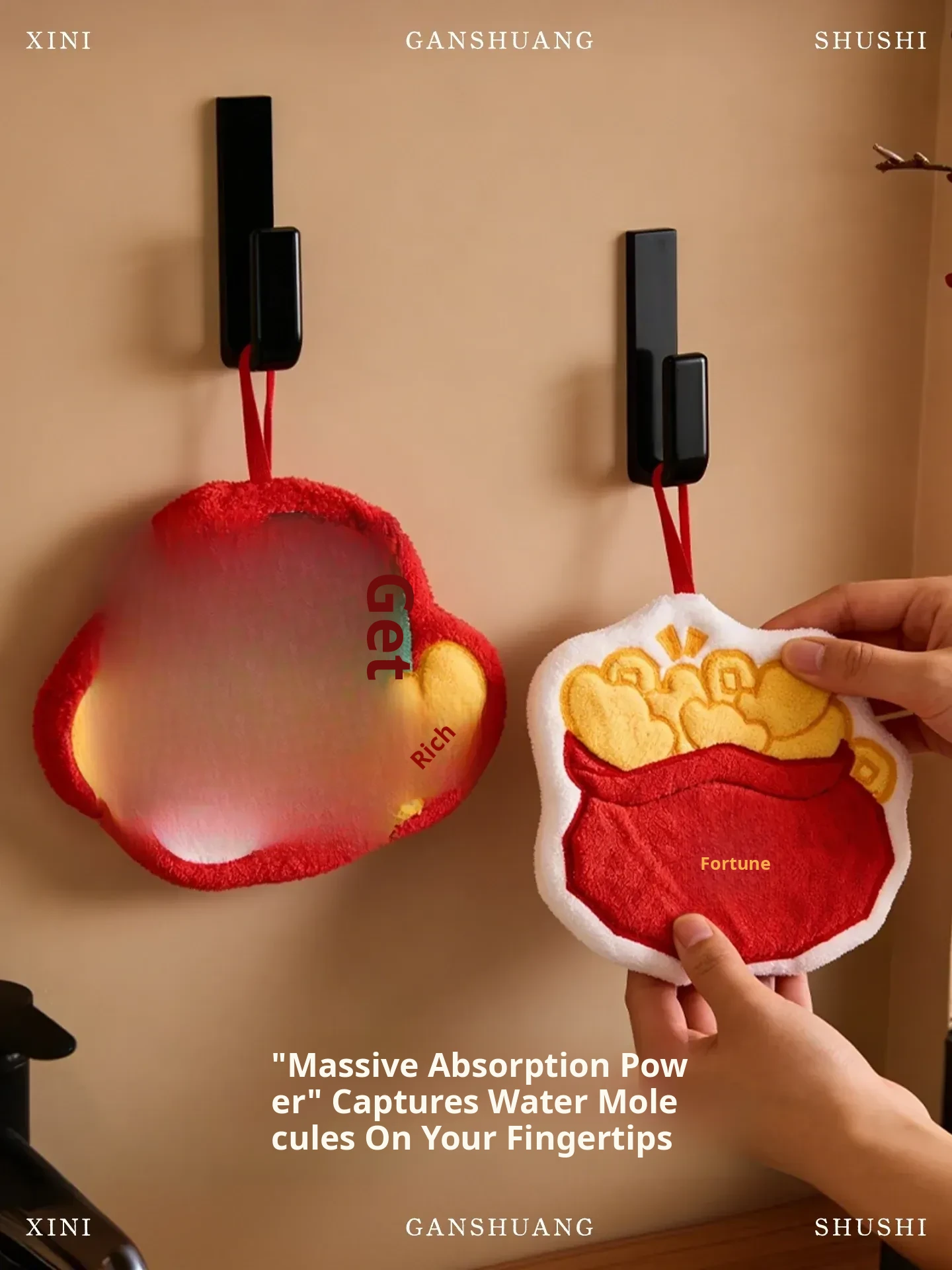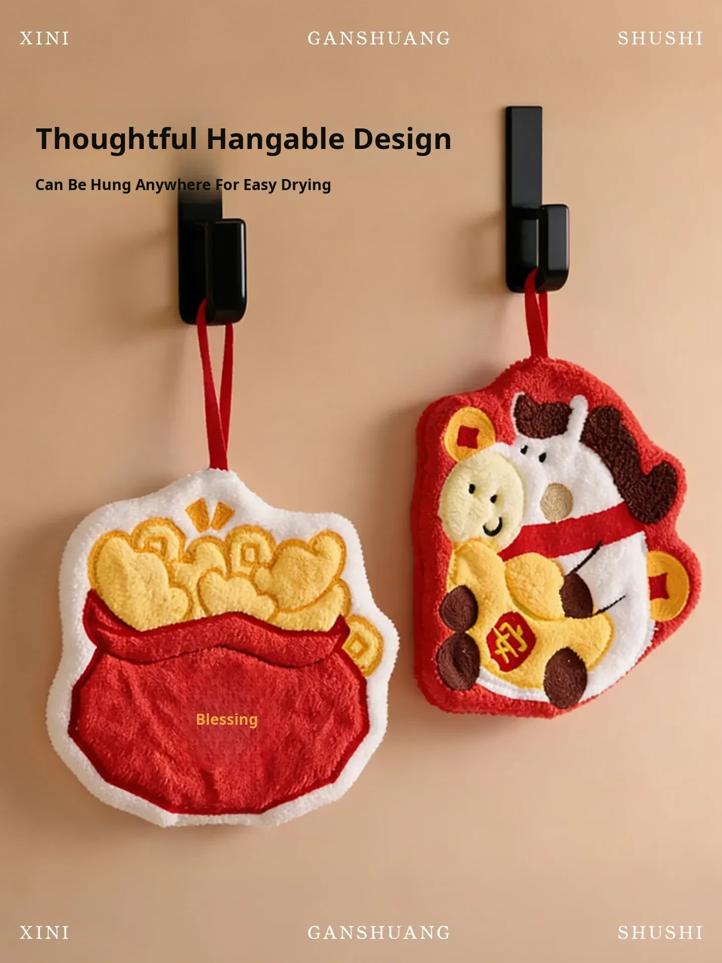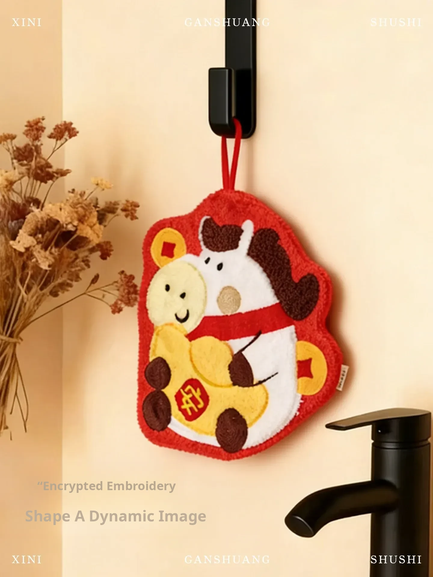 Lucky Fortune Coral Fleece Embroidered Hand Towel(24.5 X 10.04 in)