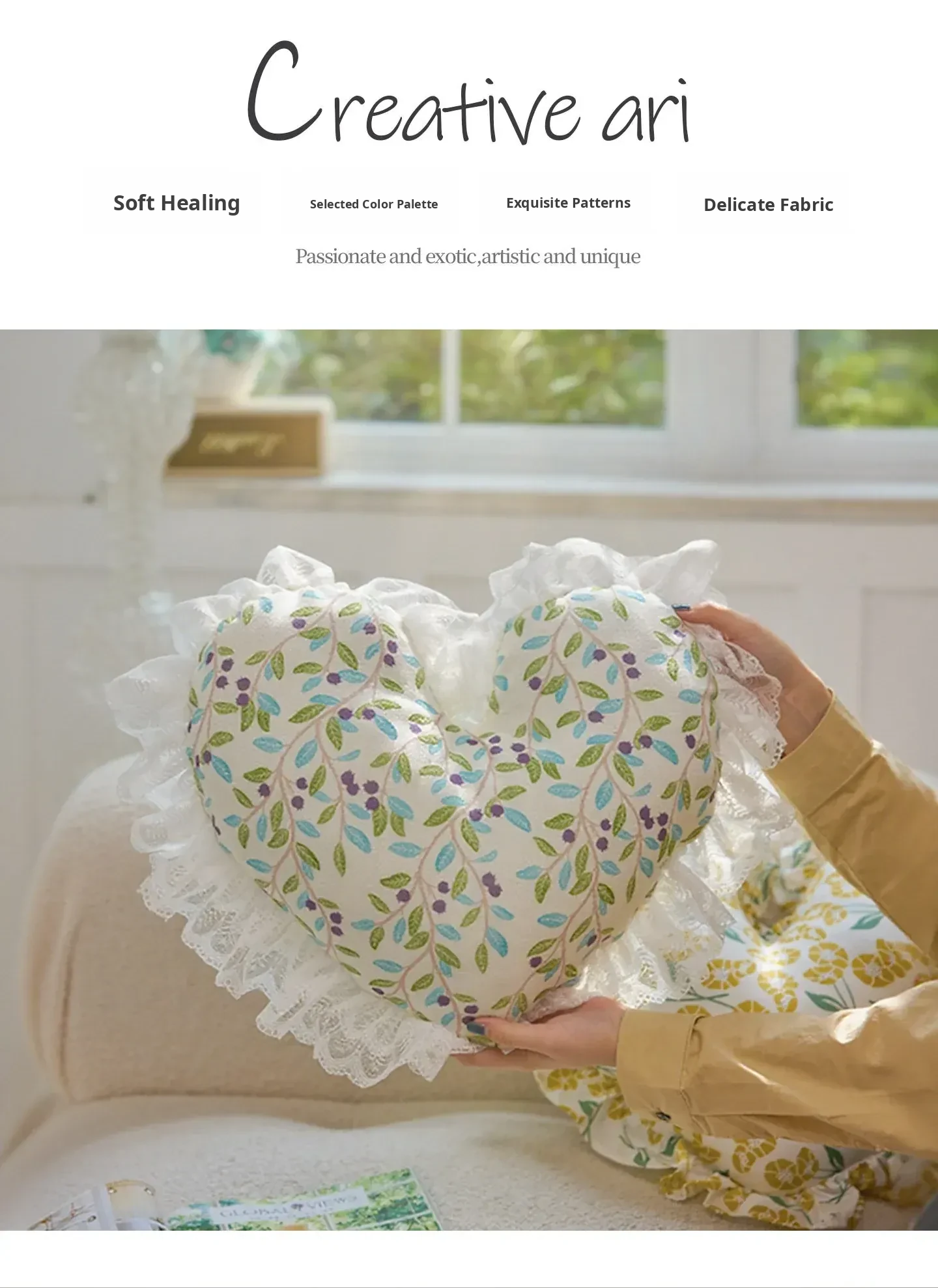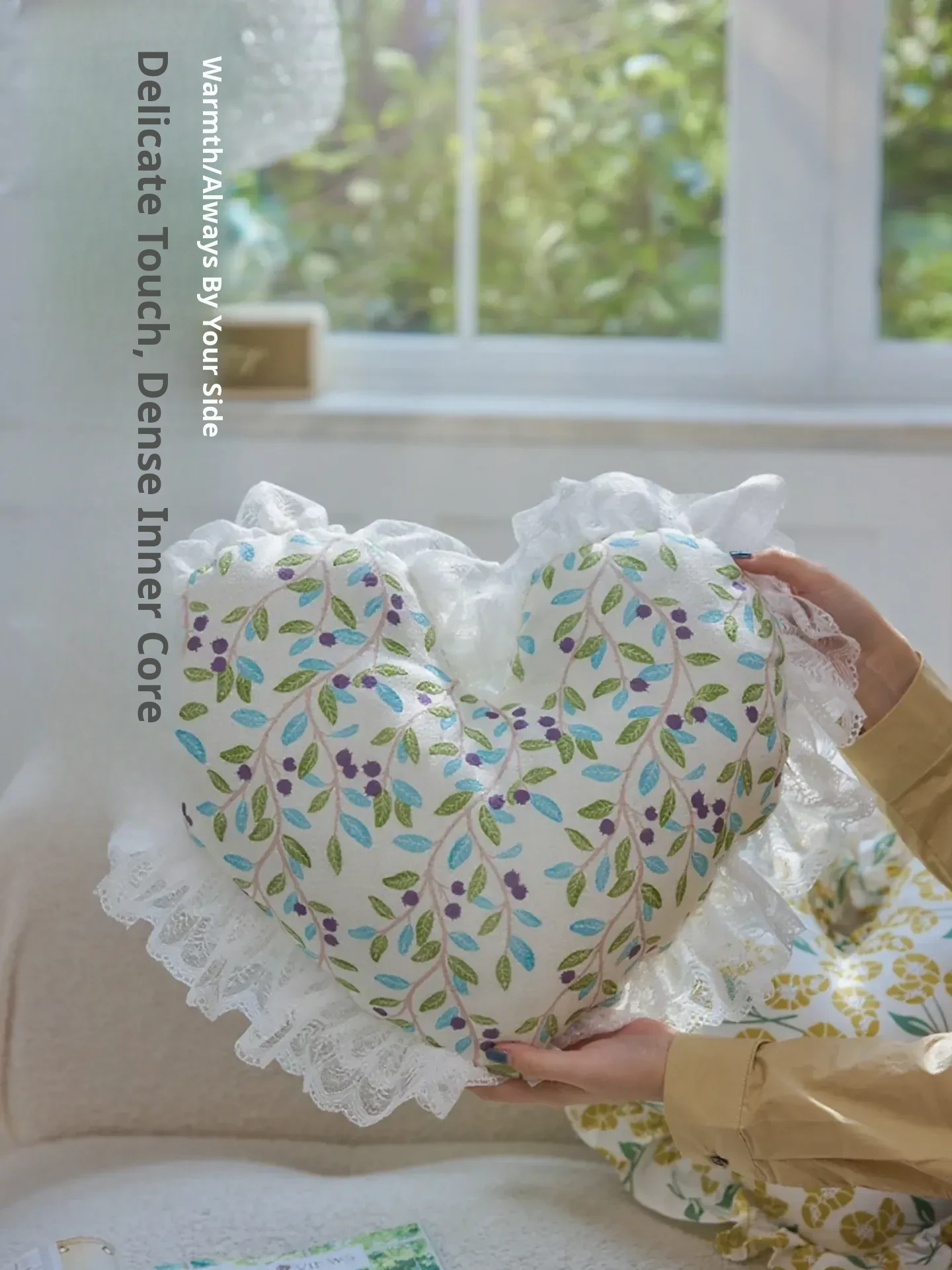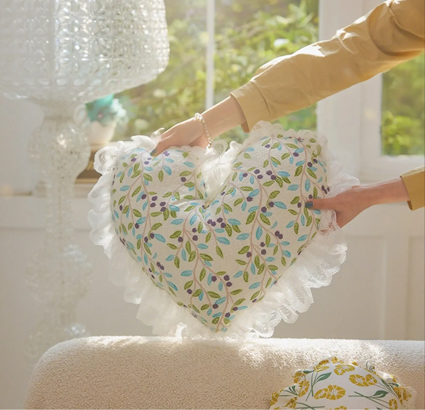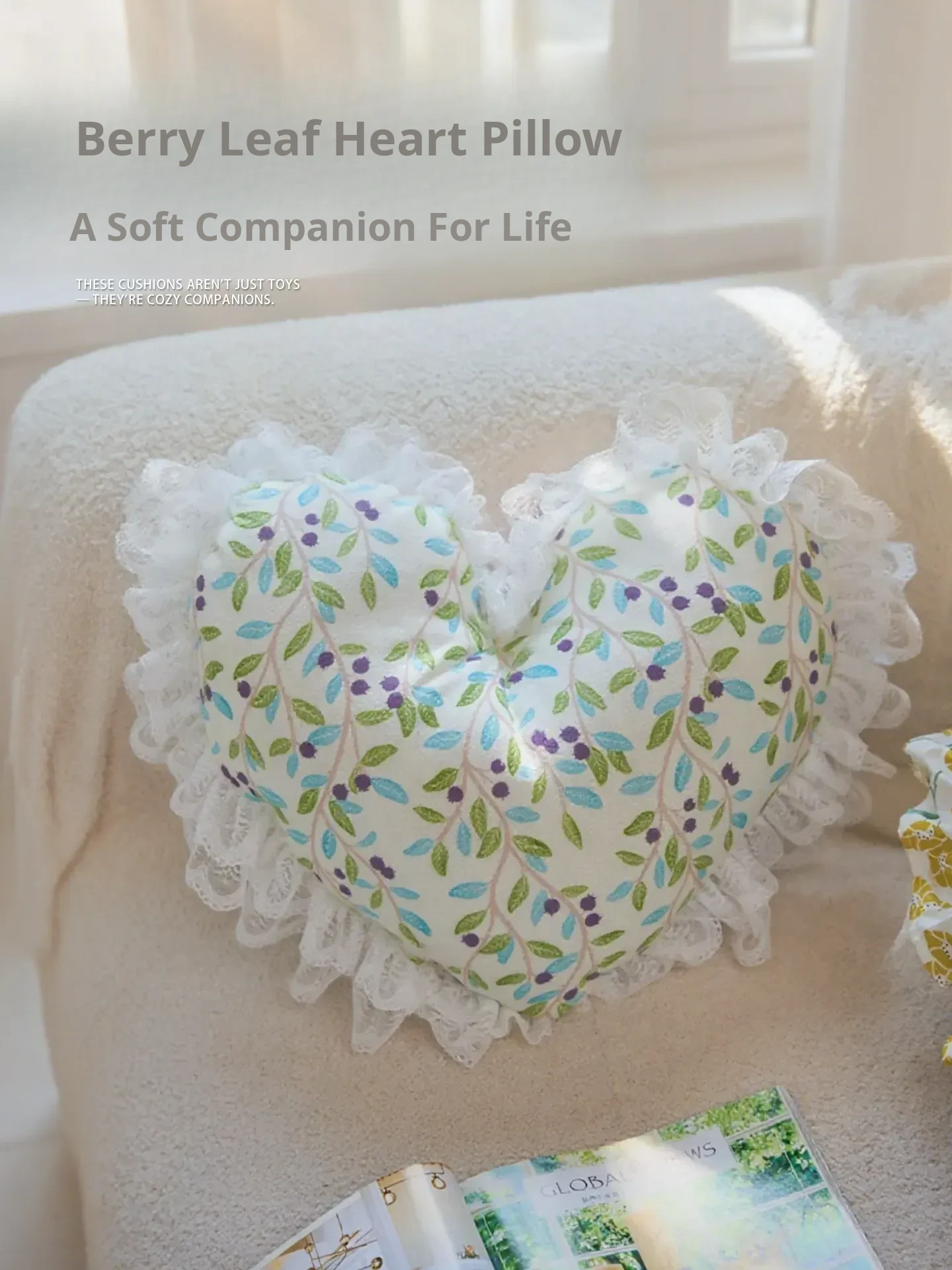 Berry Leaf Heart Pillow Fabric Pillow [15.75in*13.78in]
