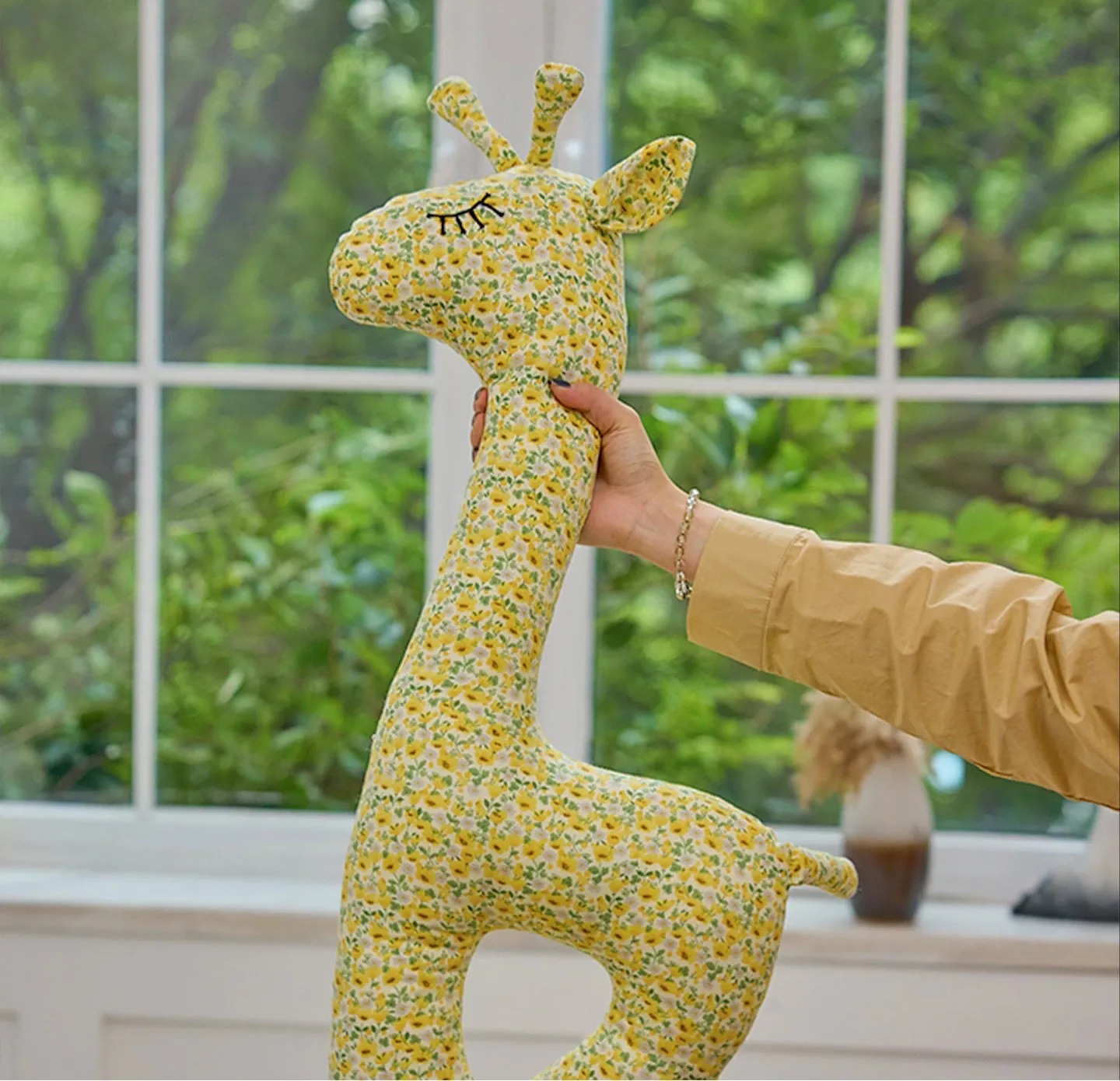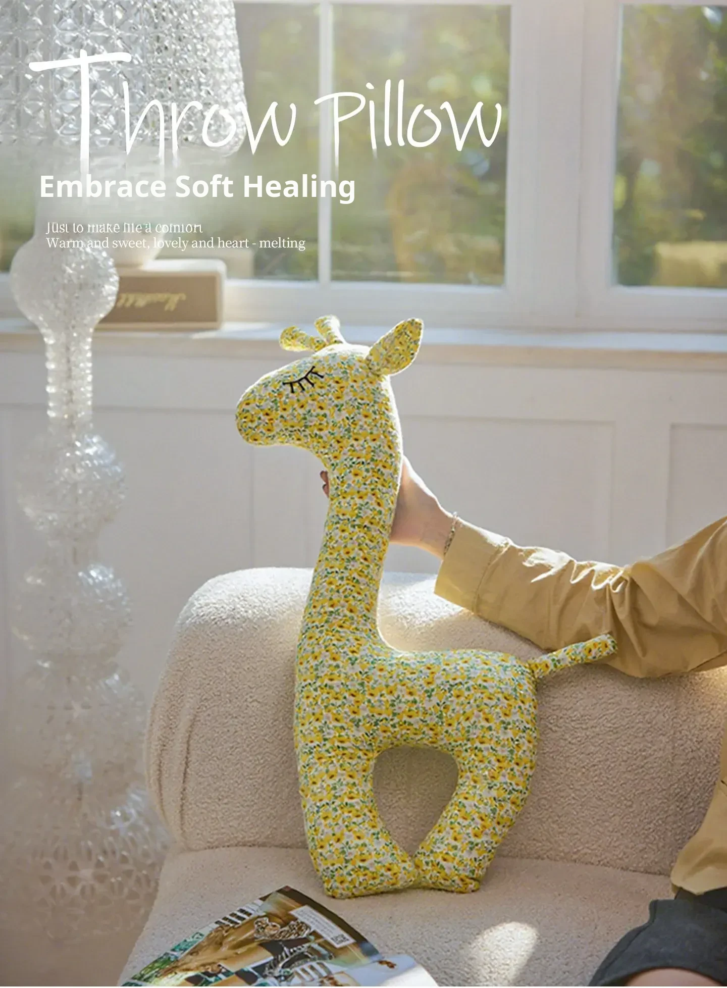 American Rustic Long-necked Giraffe Shaped Pillow - Creative Back Cushion for Living Room Sofa, Bedroom Bedside Support Pillow, Soft Fabric Waist Pillow