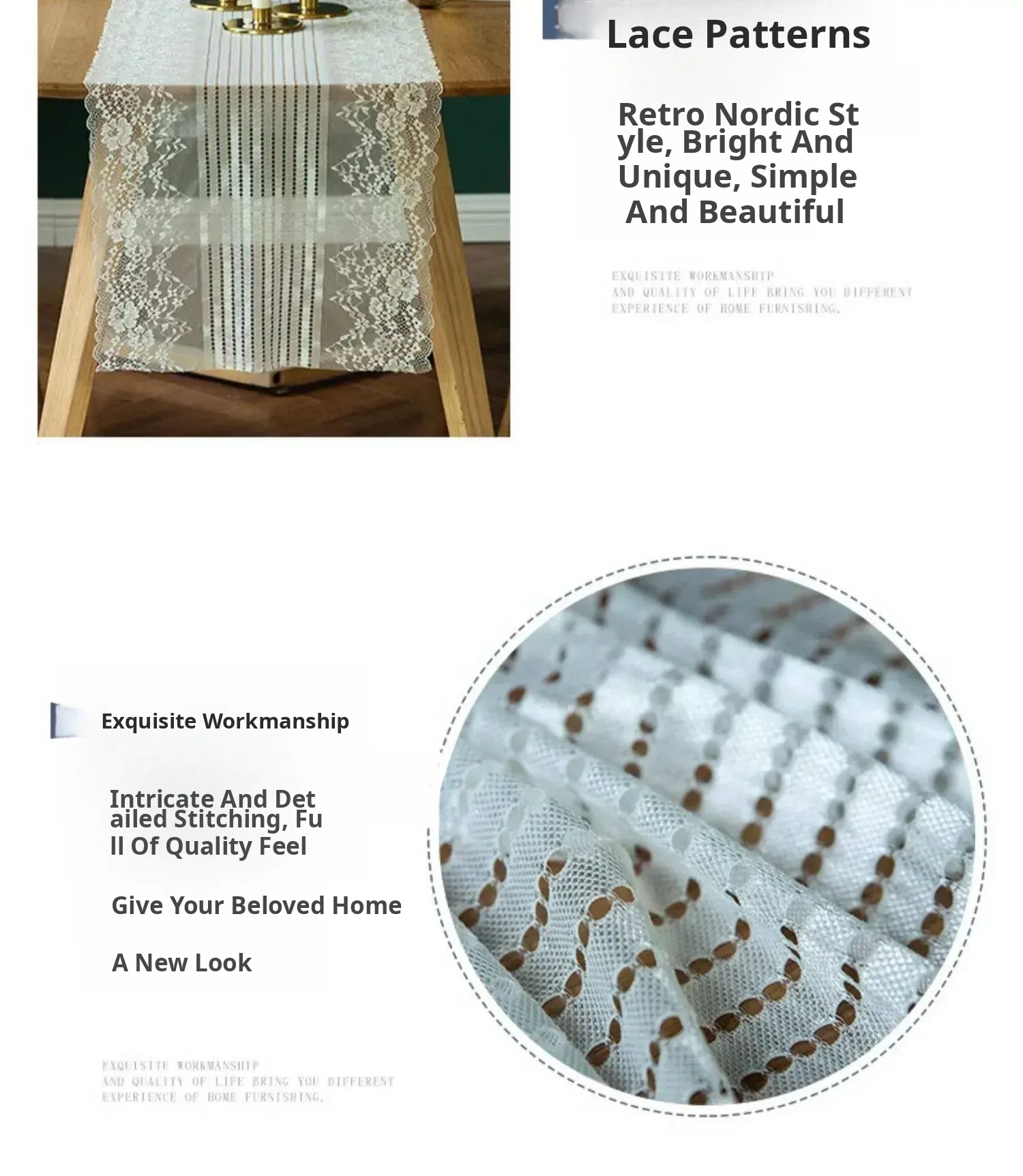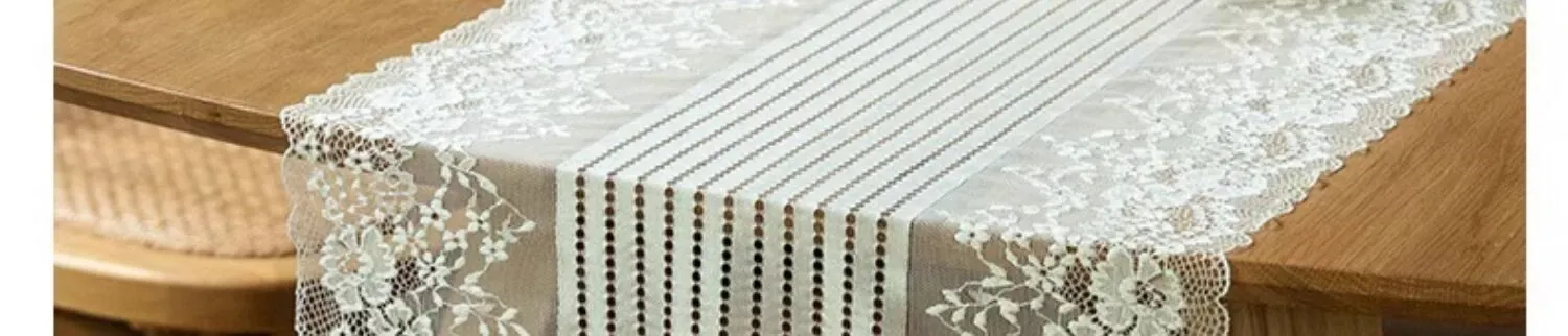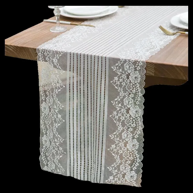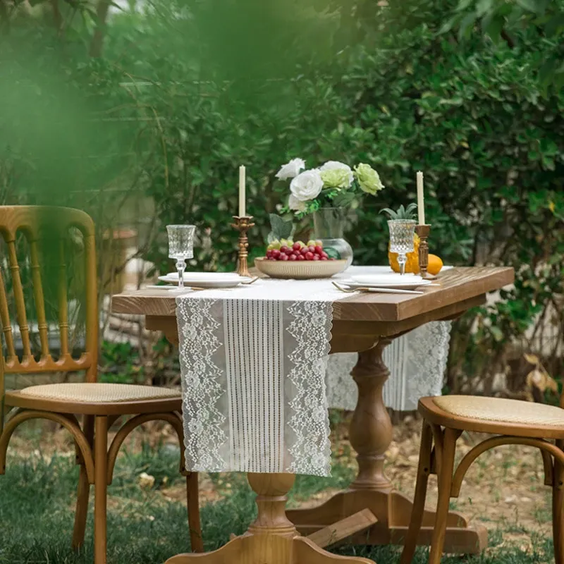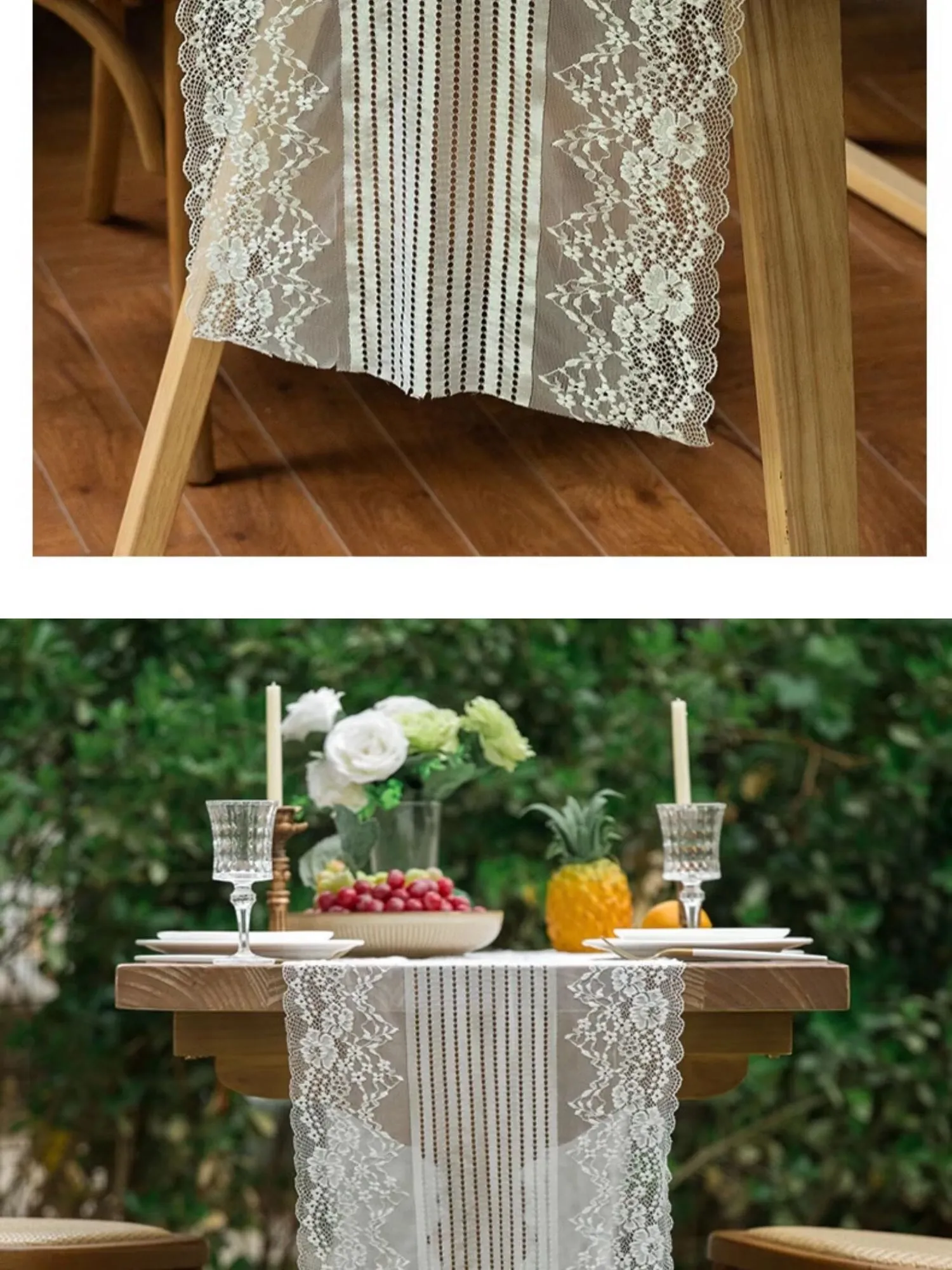 American White Lace Table Runner - Bohemian Style Long Decorative Cover for Outdoor Patios and Gardens, Perfect for Styling and Photography Props