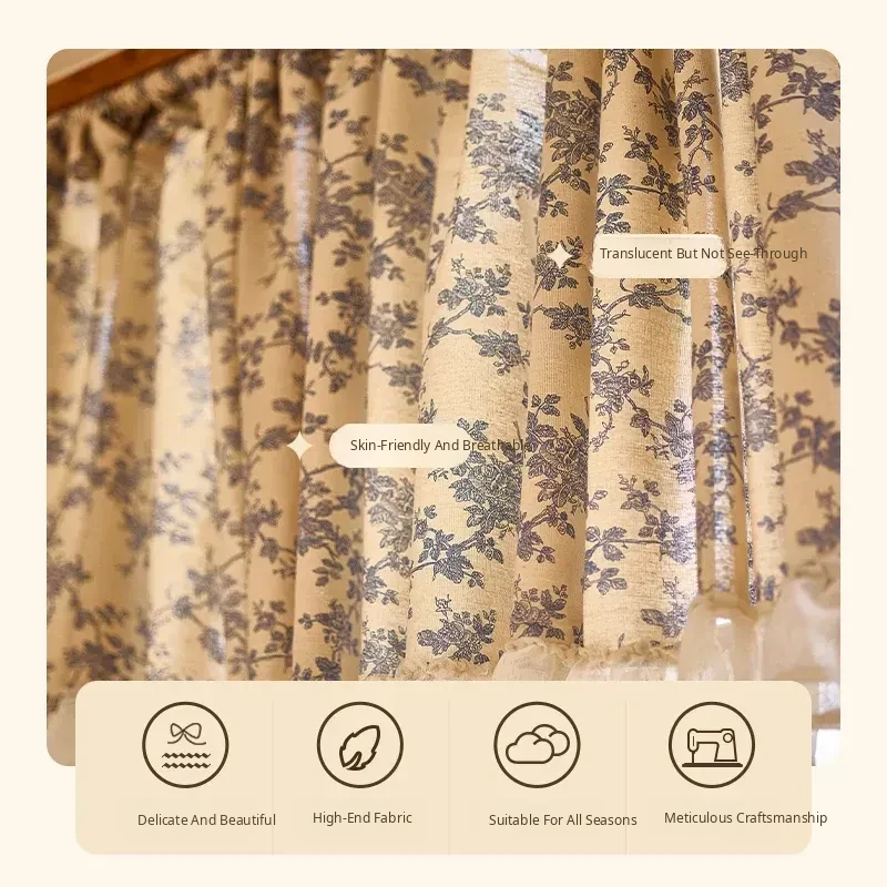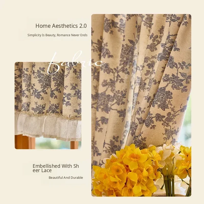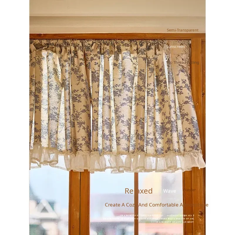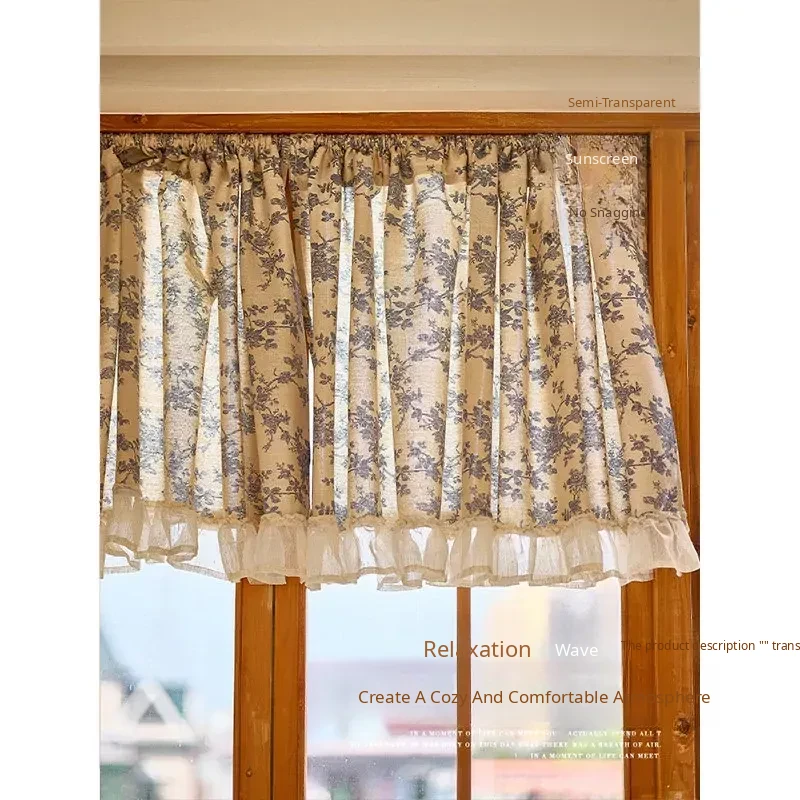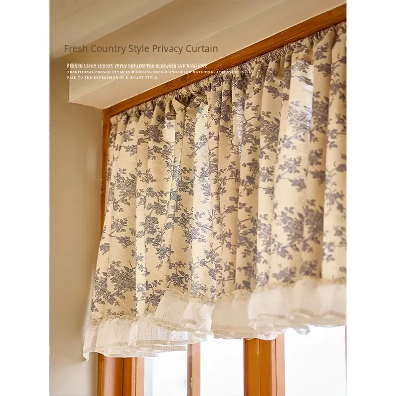 Chic Country Floral Short Lace Curtains - Elegant Half-Length Door Drapes for Balcony, Perfect Indoor Sunshade for Bedroom and Living Spaces