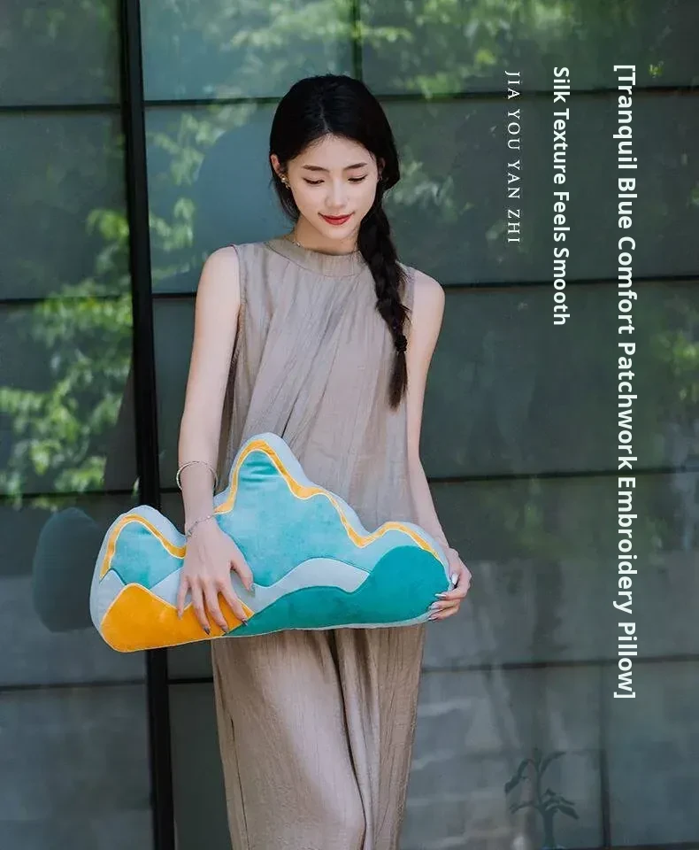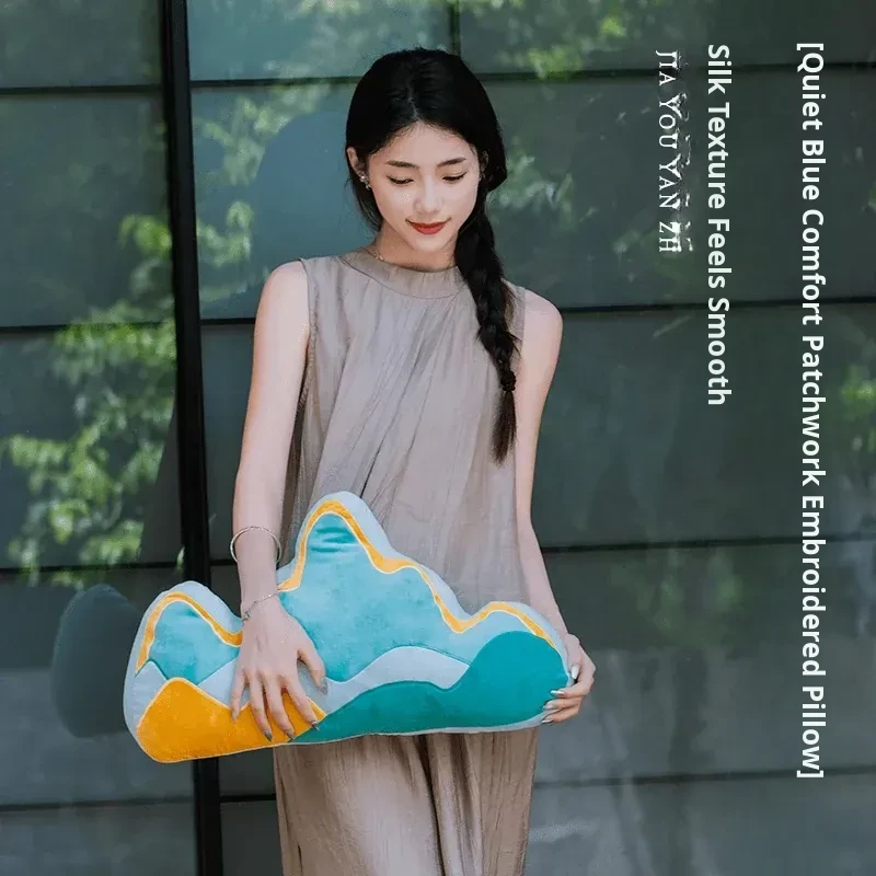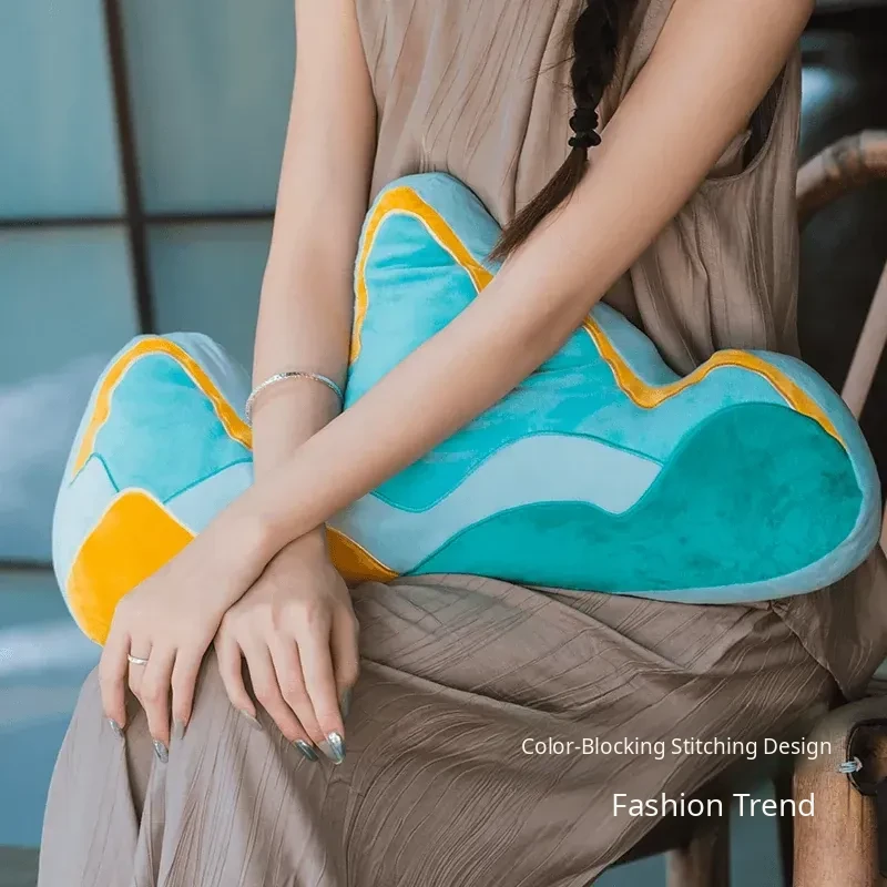 Creative New Chinese Style Backrest Pillow - Artistic Shaped Cushion for Sofa, Office Chair, and Lumbar Support, Perfect for Living Room Comfort