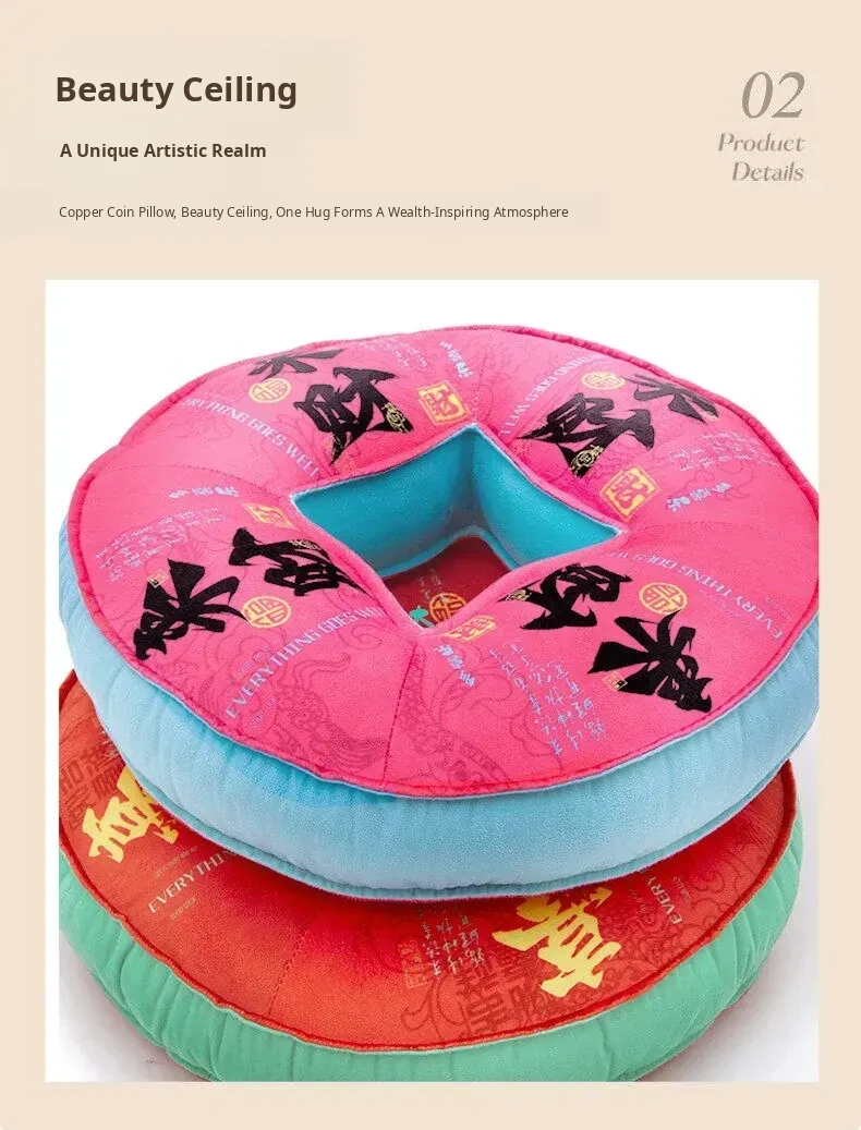 Creative New Chinese Style Coin Cushion - Unique Decorative Pillow for Bed, Sofa, and Office | Perfect Gift for Prosperity in the New Year