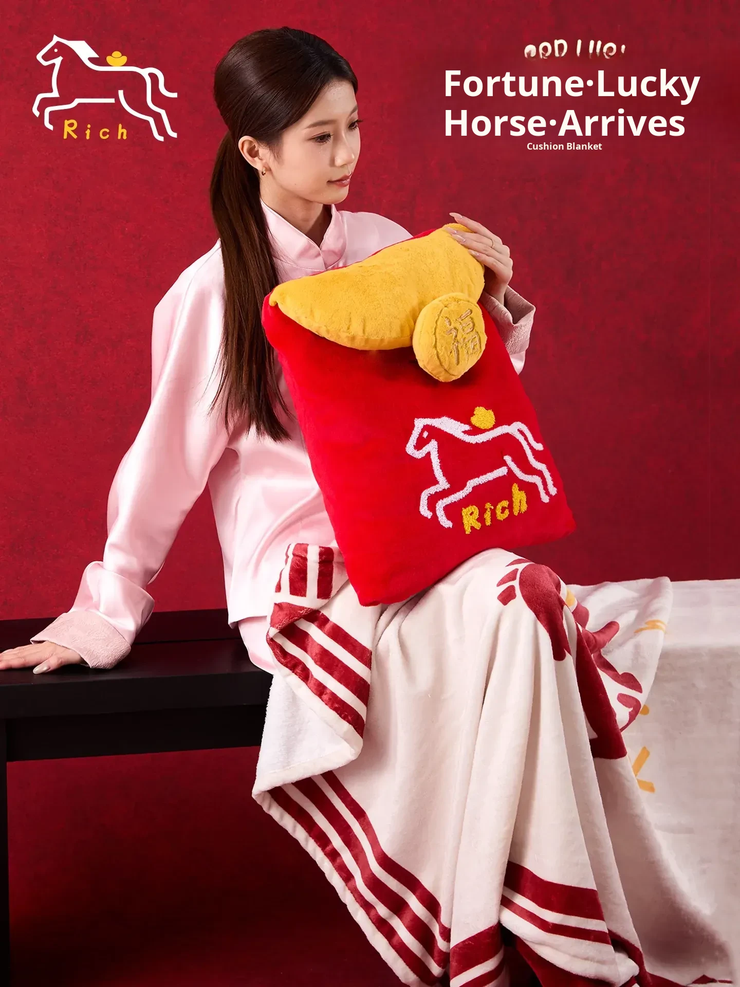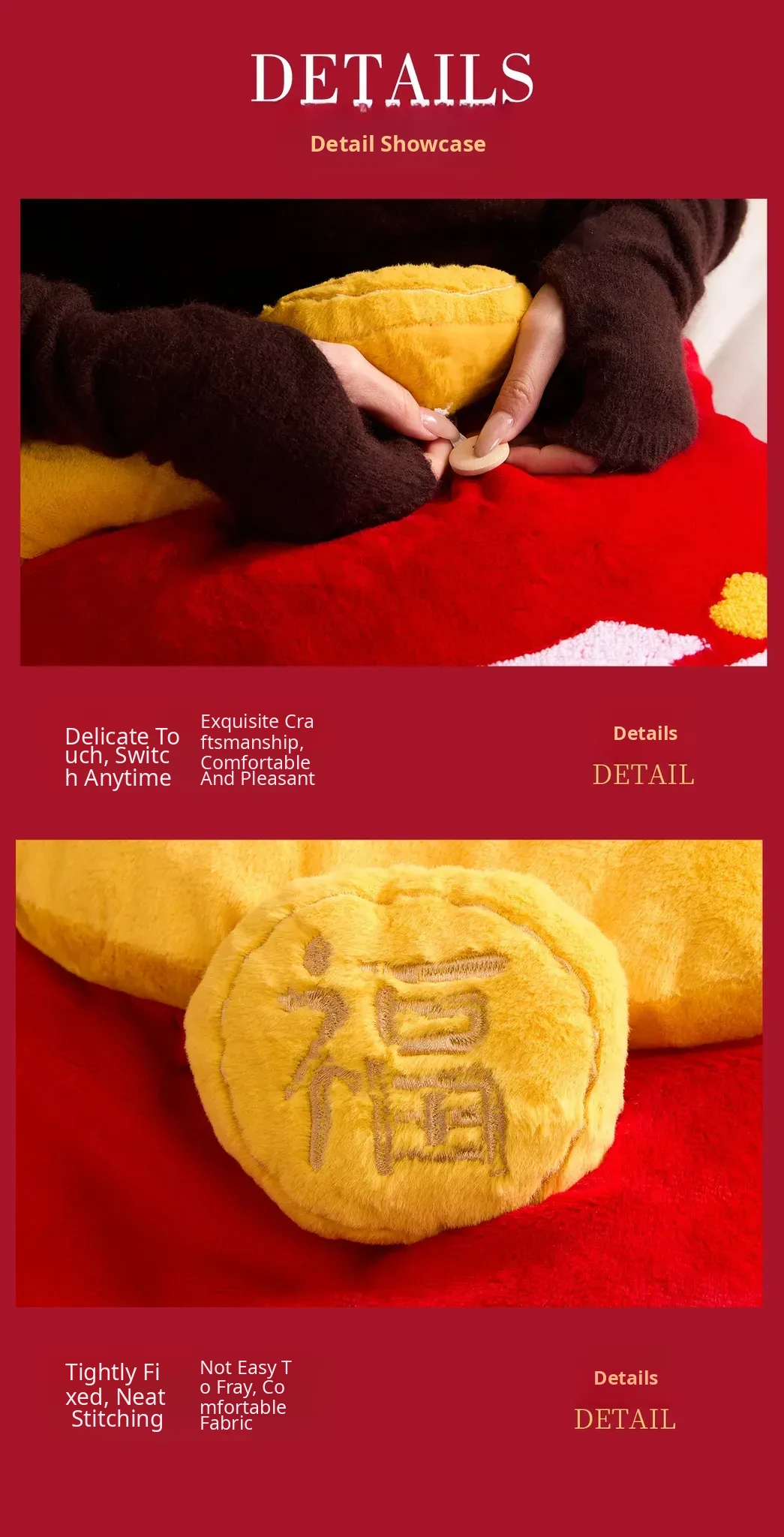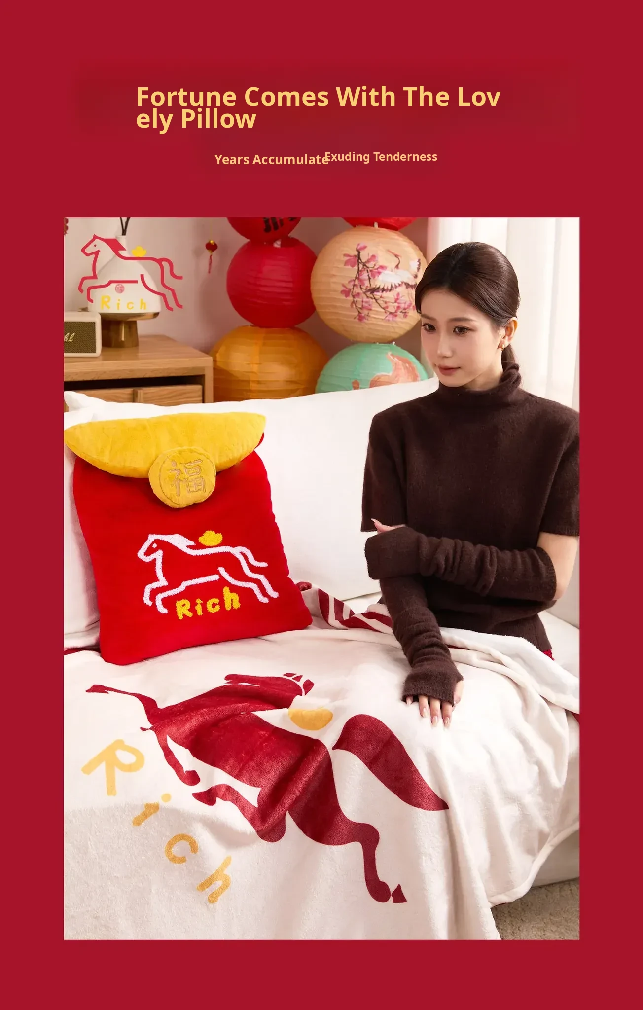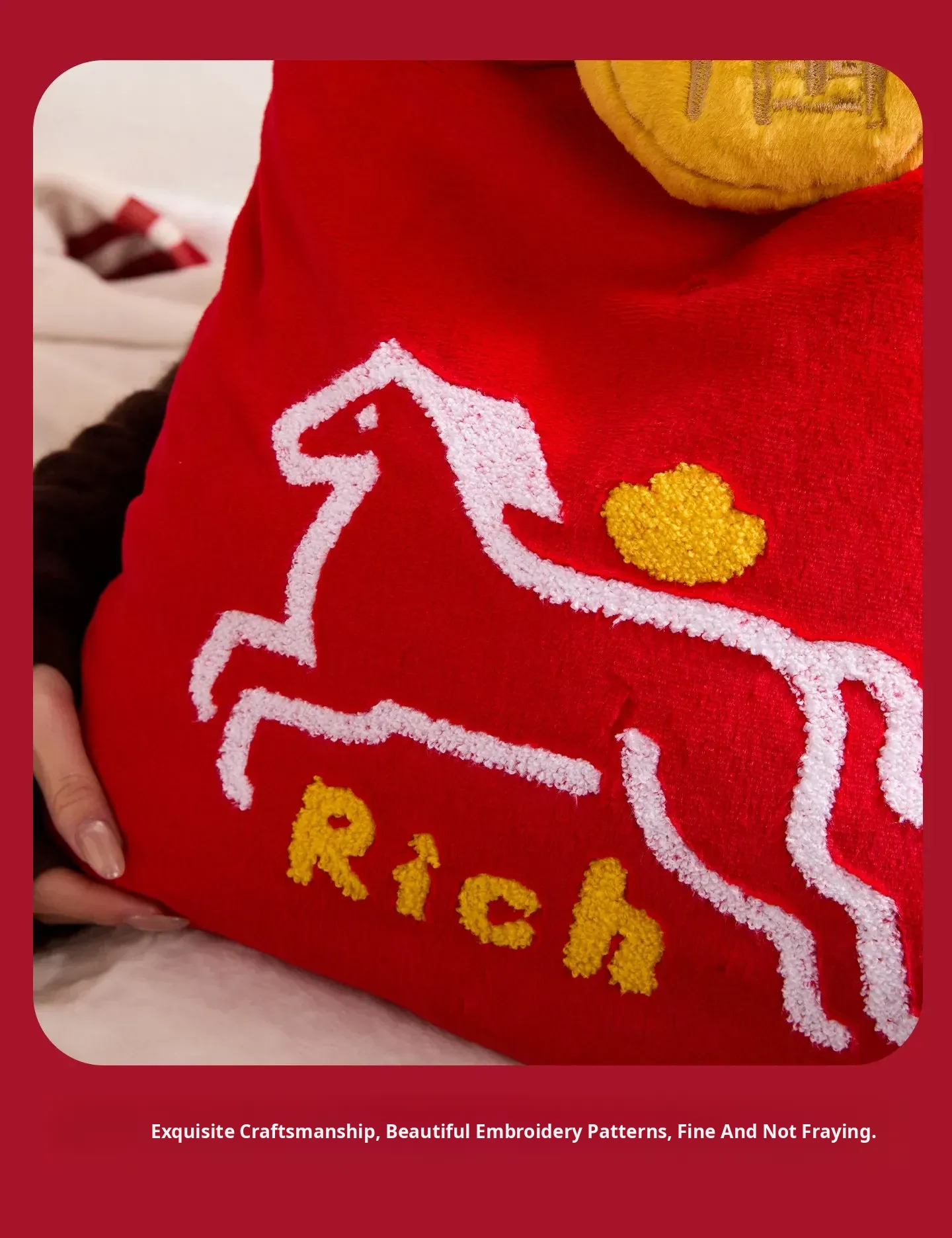 Creative New Year Embroidered "Fu" Pillow Blanket – Festive Red Home Decor, Cute and Quirky Design for Photos and Comfort