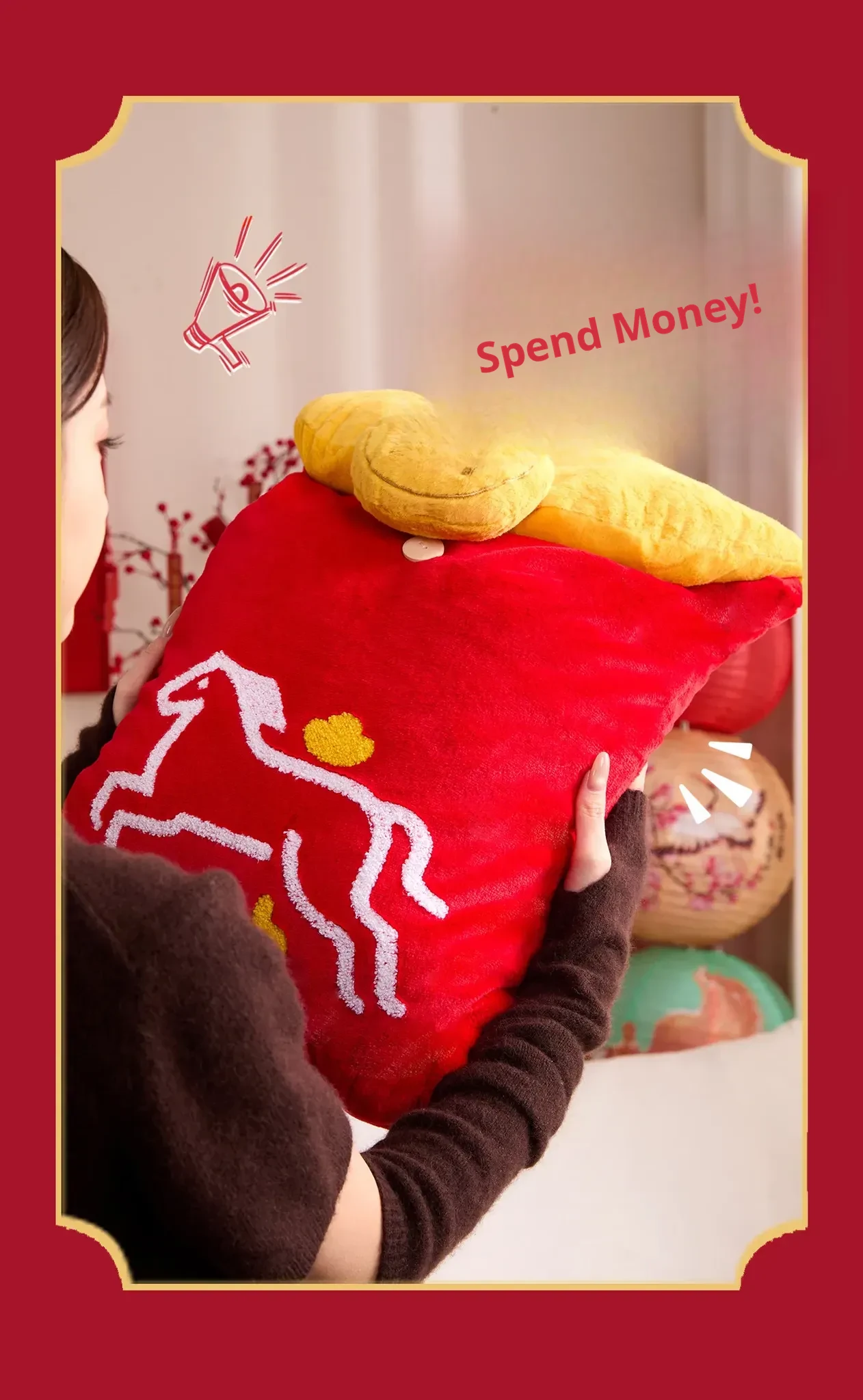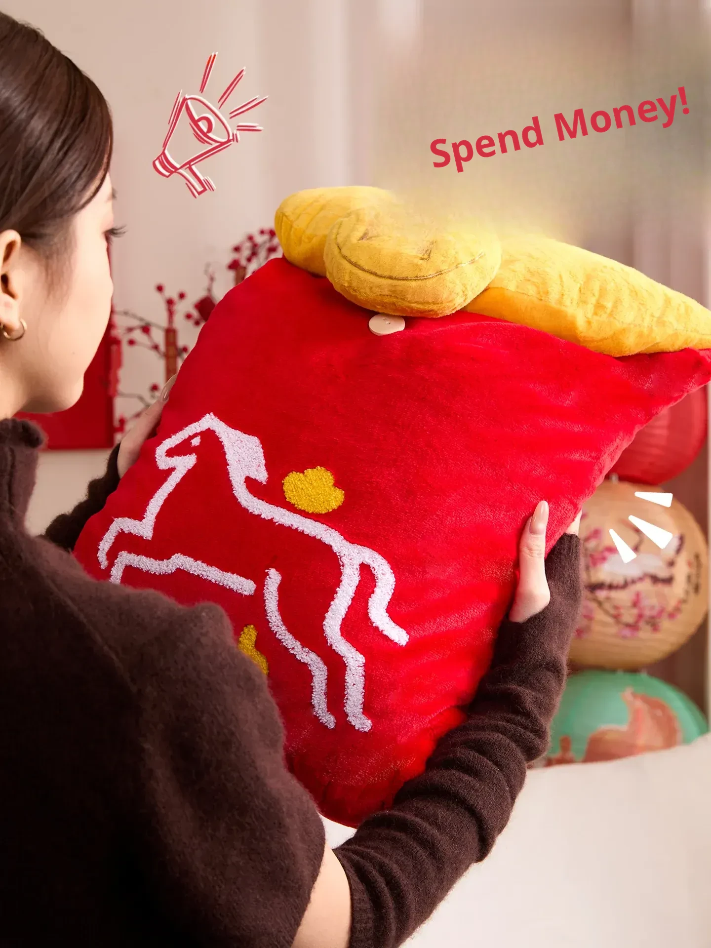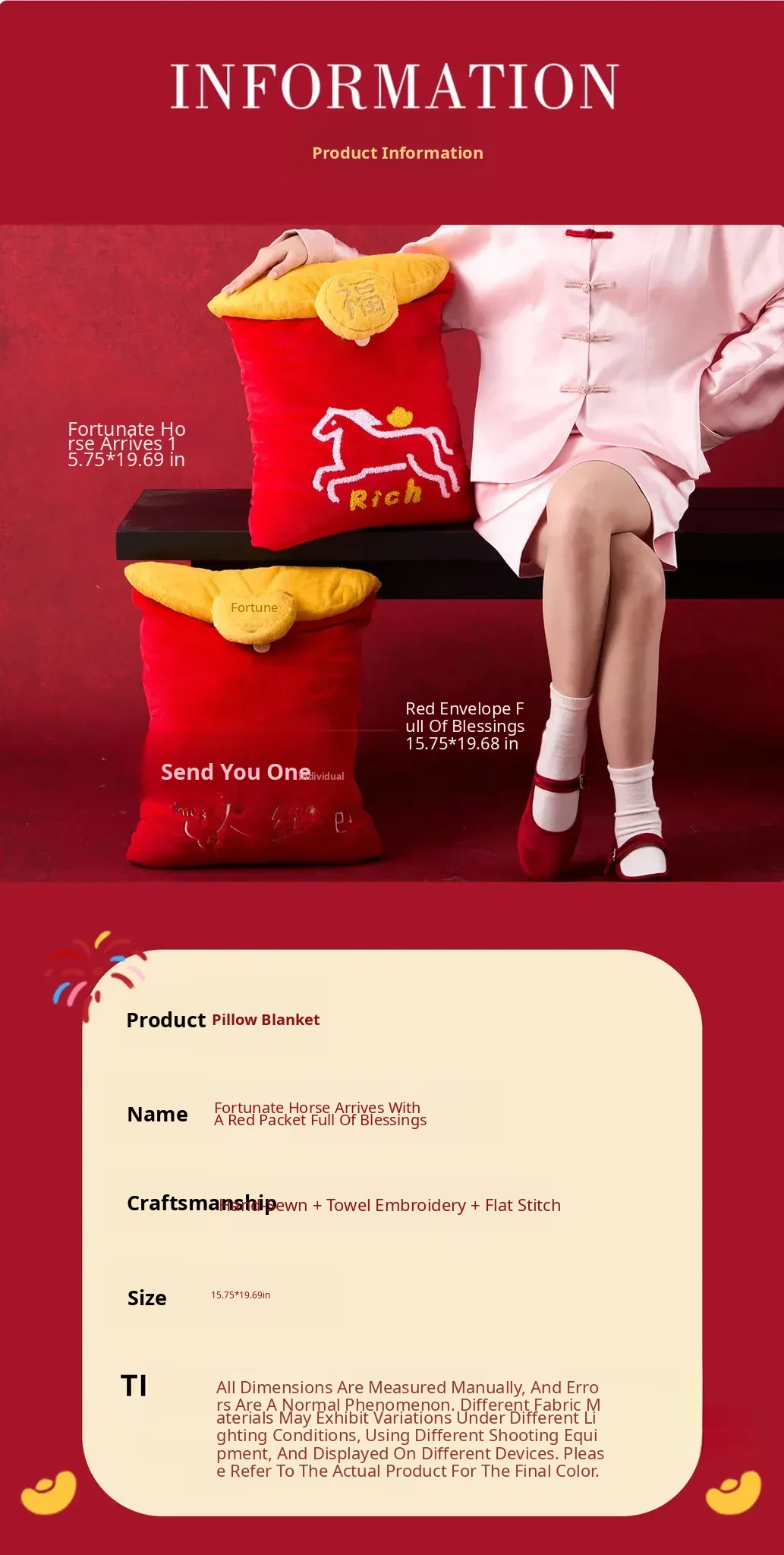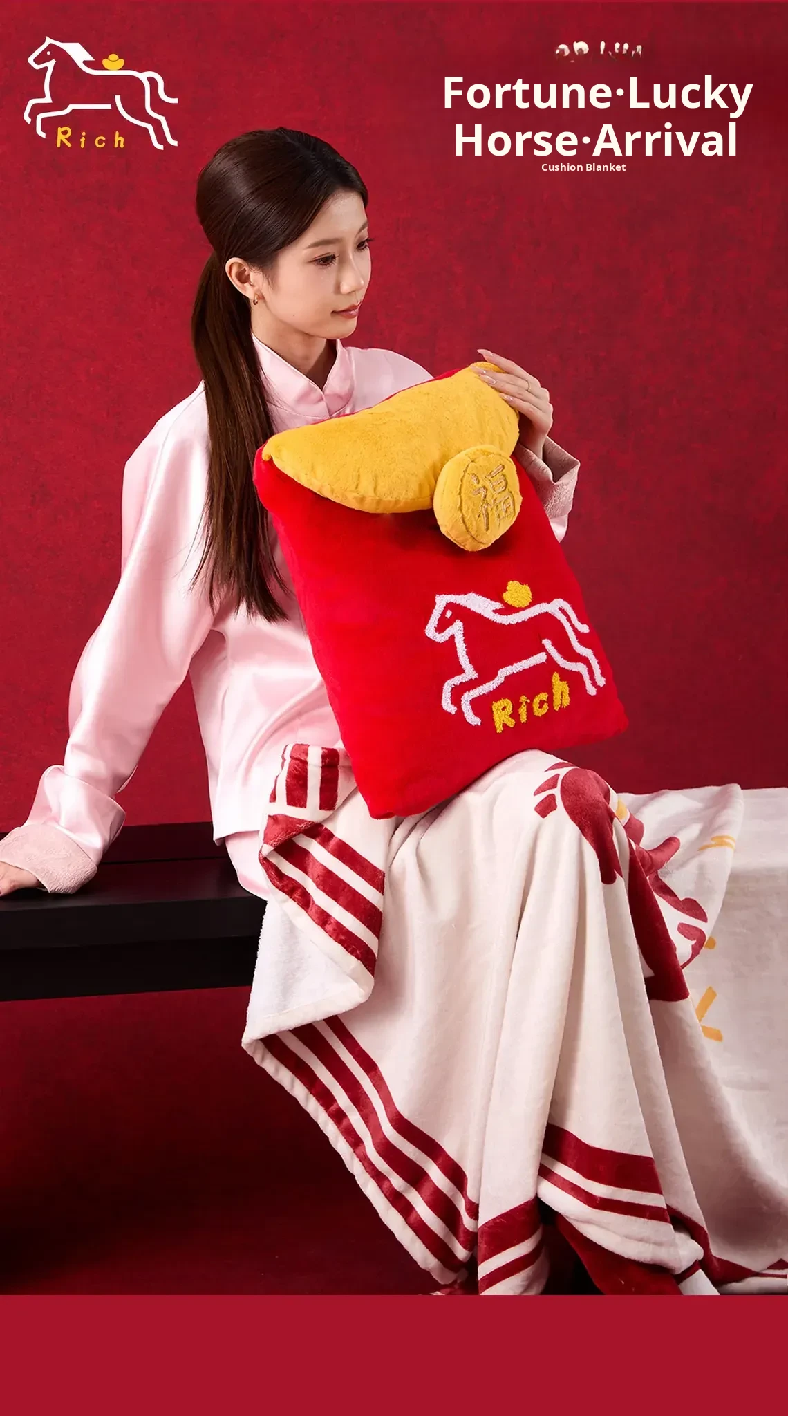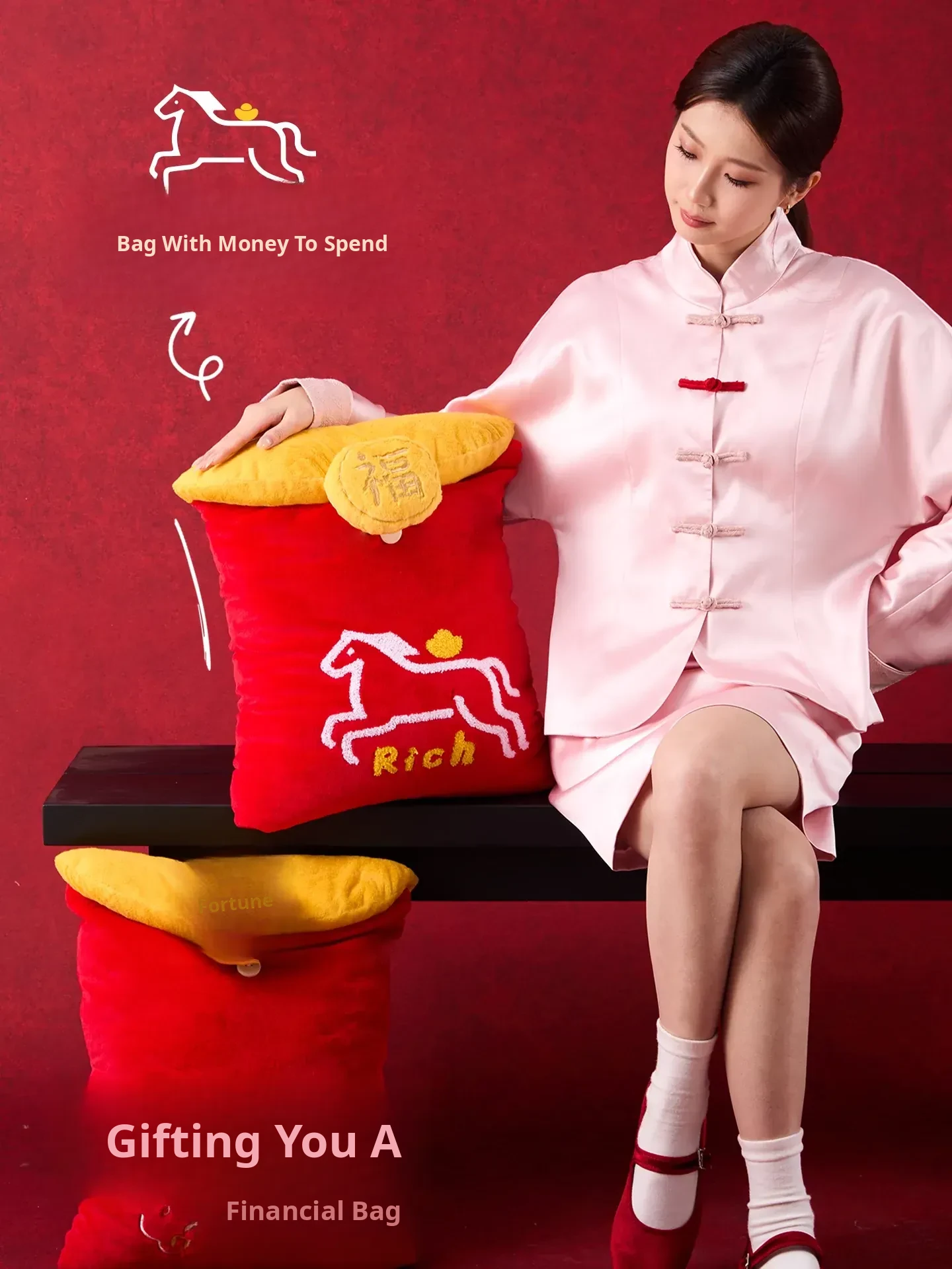 Creative New Year Embroidered "Fu" Pillow Blanket – Festive Red Home Decor, Cute and Quirky Design for Photos and Comfort