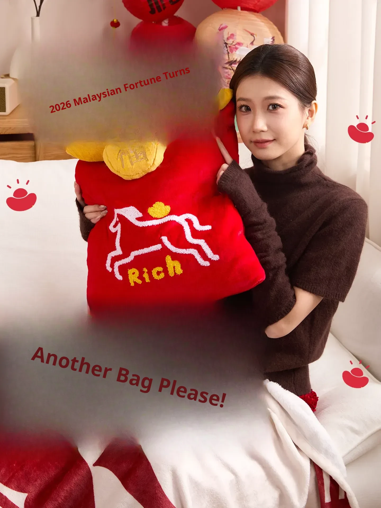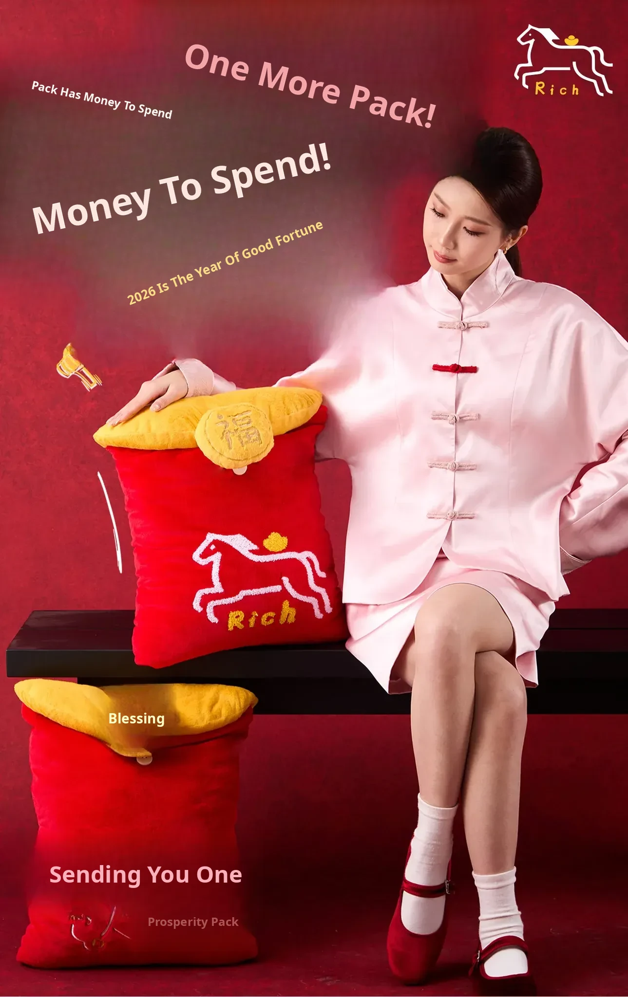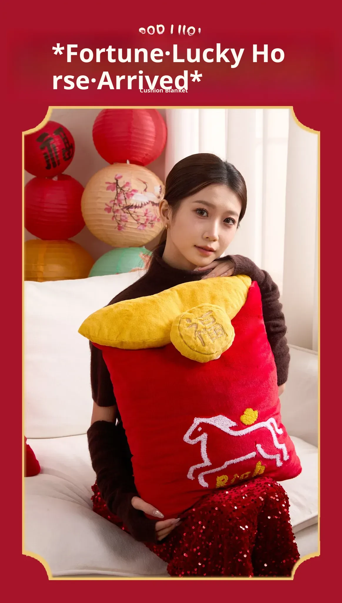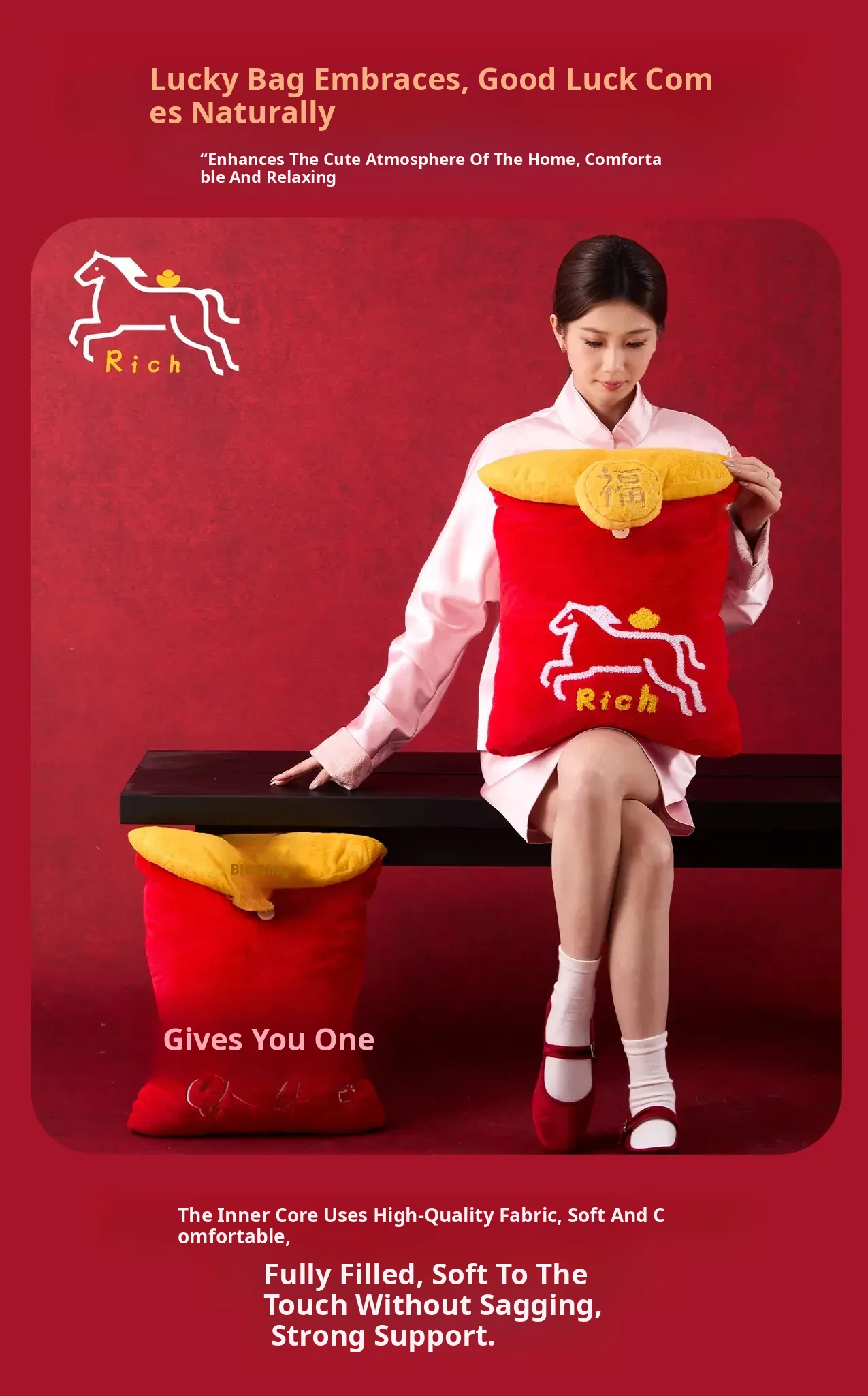 Creative New Year Embroidered "Fu" Pillow Blanket – Festive Red Home Decor, Cute and Quirky Design for Photos and Comfort