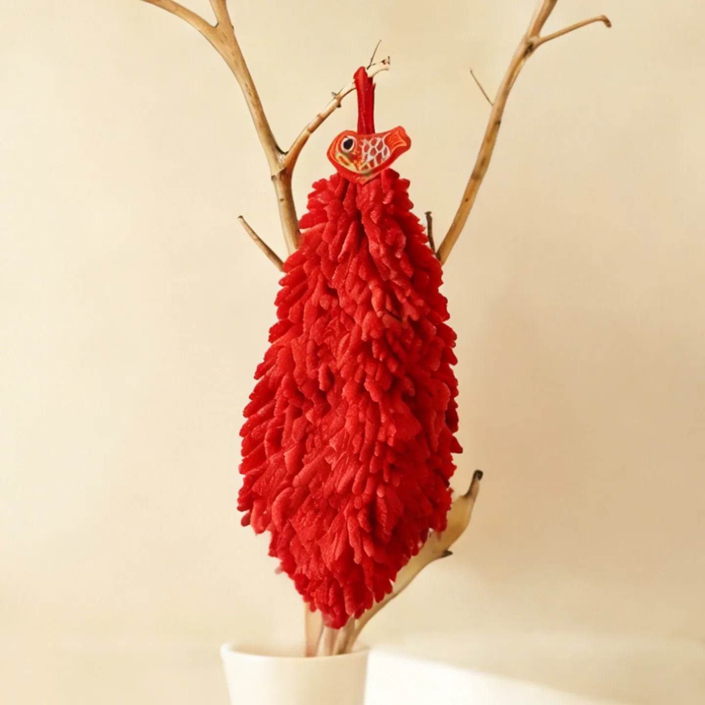 Red Carp Lucky Coral Velvet Embroidered Hand Towel(26.5 X 10.83 in)