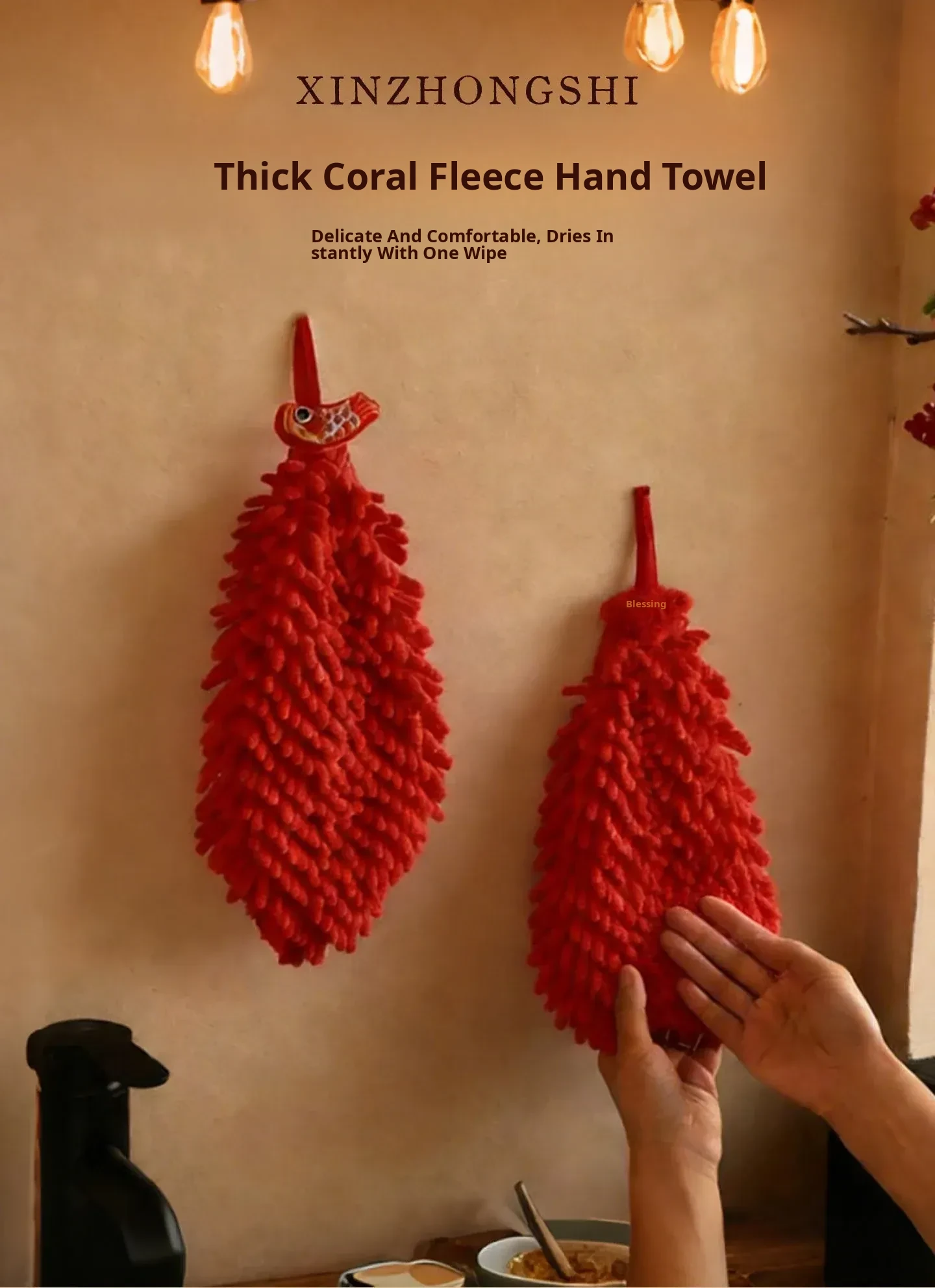 Cute & Stylish Year of the Horse Hanging Hand Towels - Super Absorbent, Thick, Quick-Dry Chenille Kitchen & Bathroom Towels