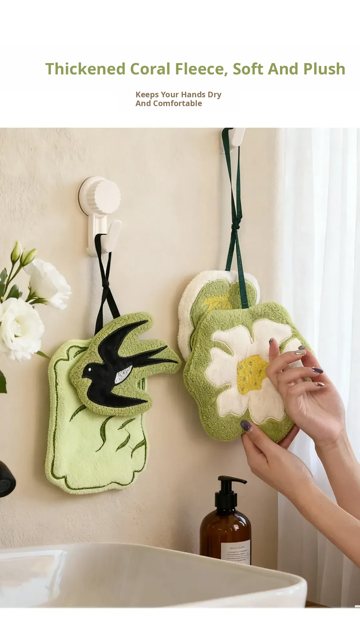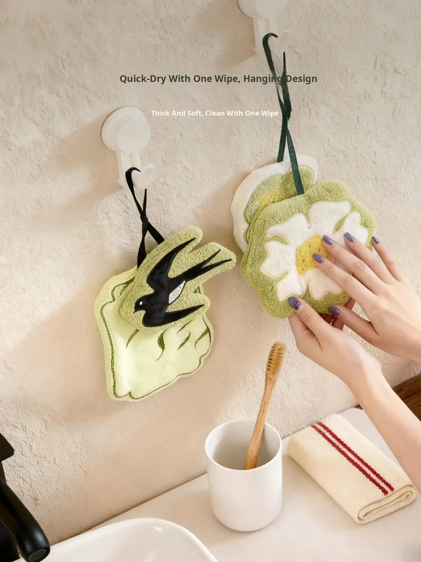 Cute and Super Absorbent Hanging Hand Towel - Thickened Soft Cloth for Kitchen, Bathroom, and Toilet Use - Perfect for Quick Drying and Hygiene
