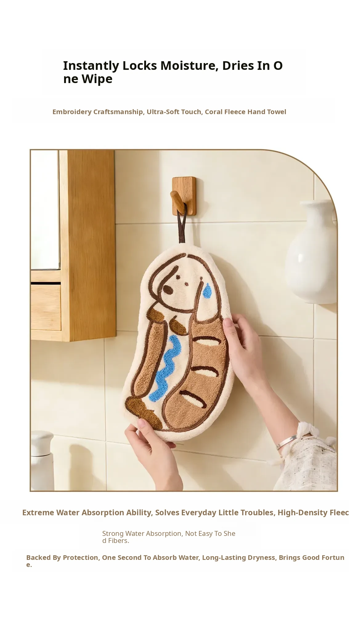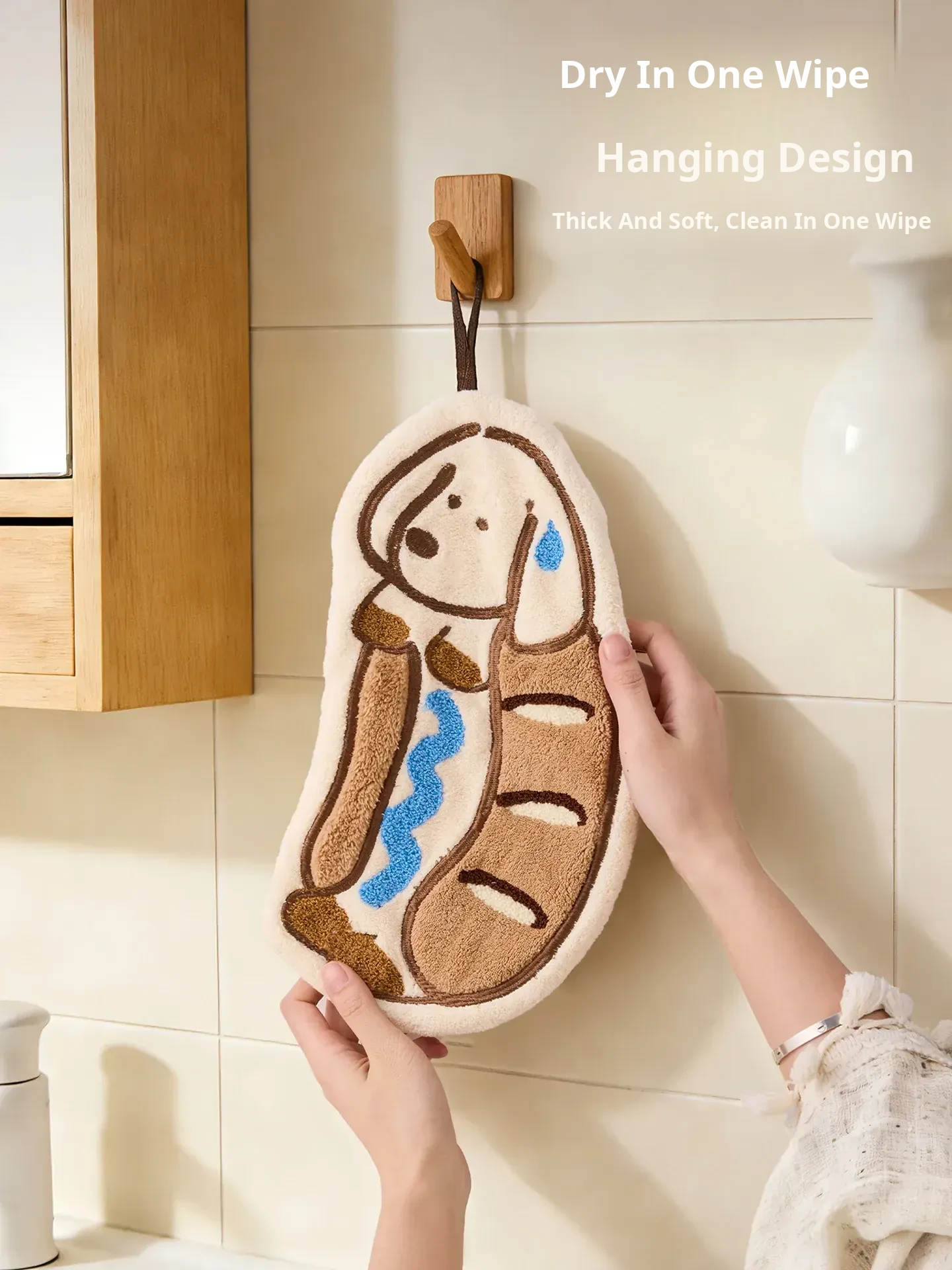 Cute Cartoon Kitchen Hand Towels - Thick, Super Absorbent, Hanging Bathroom Towels with Embroidery - Perfect for Quick Drying and Stylish Decor!