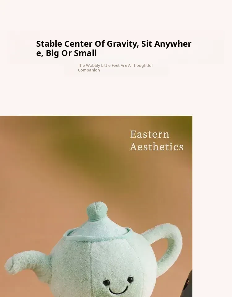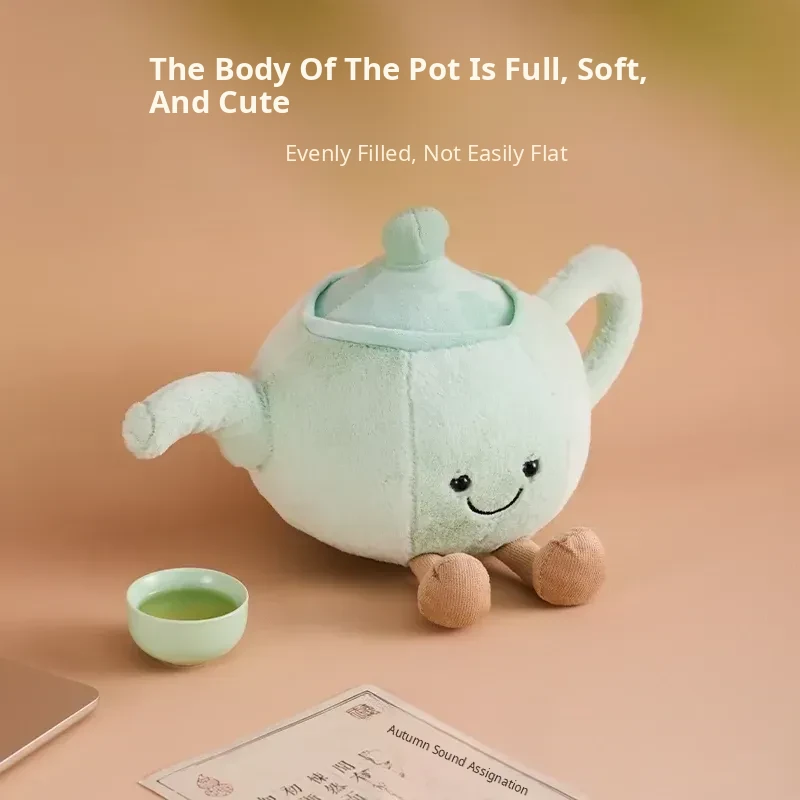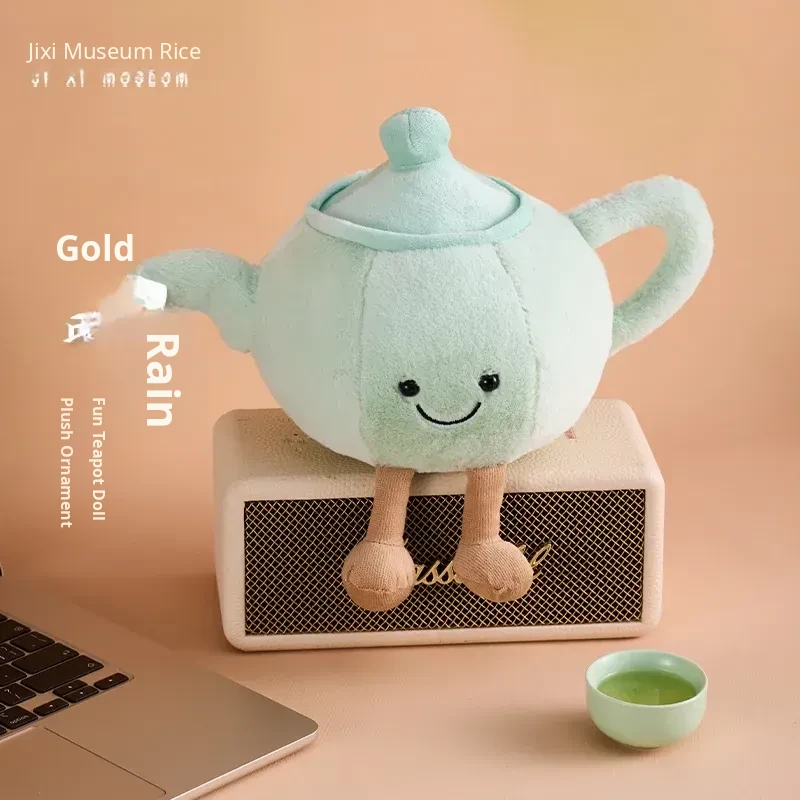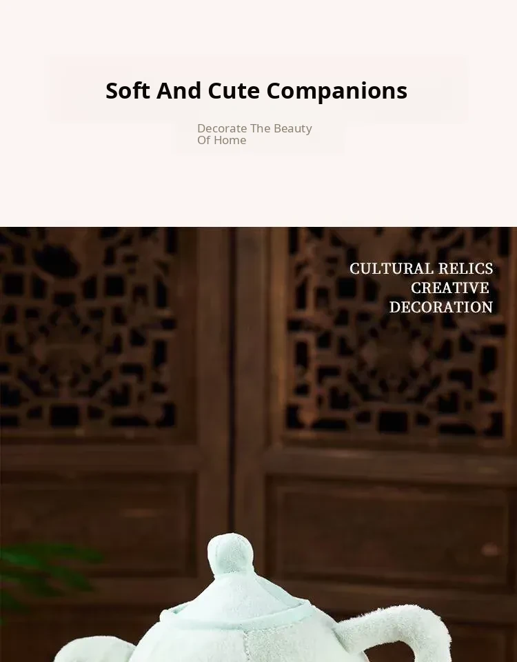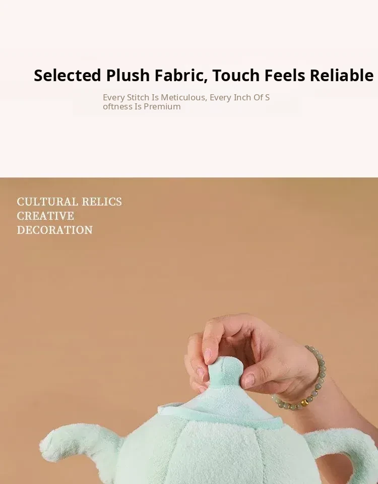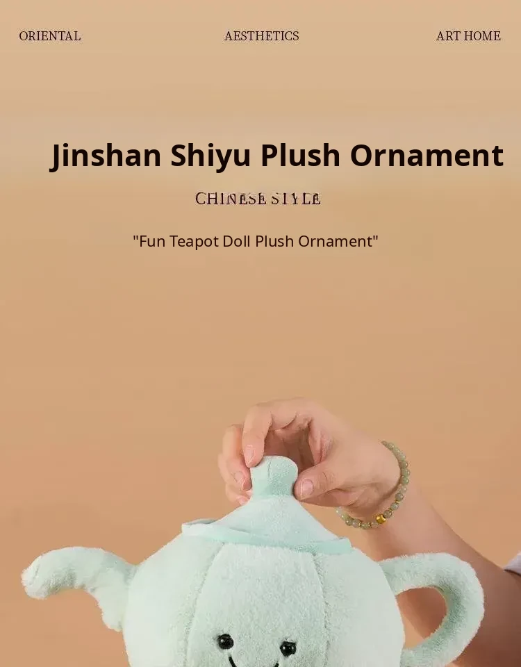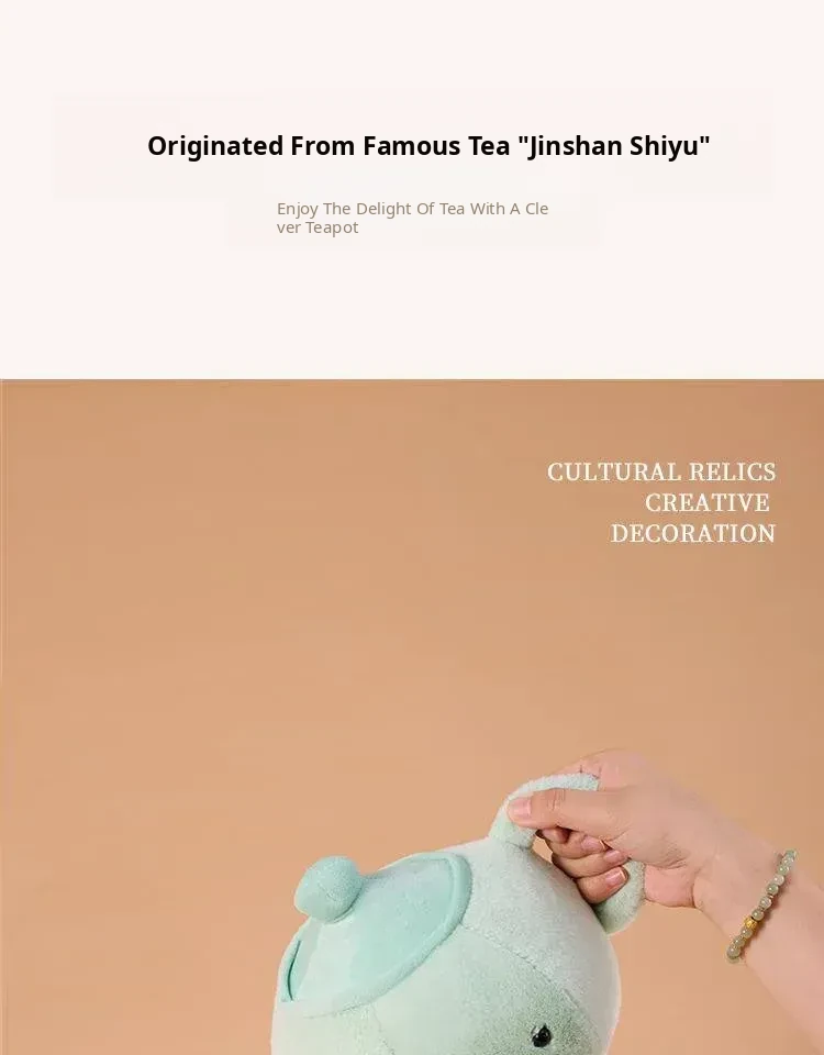 Cute Plush Pillow and Cartoon Figurine Gift Set: New Chinese Style Jingshan Shiyu Teapot, Perfect for Friends and Special Occasions