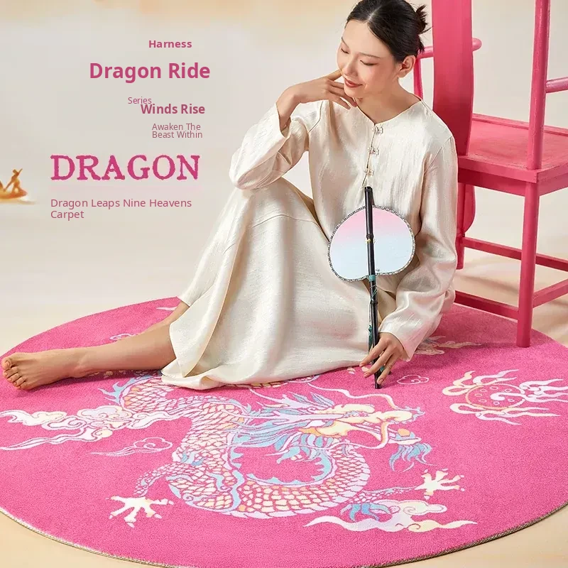 Elegant Chinese Style Pink Round Rug - Luxurious Thick Carpet for Home Use, Perfect for Living Room, Bedroom, and Bedside - Soft and Stylish Sofa Mat