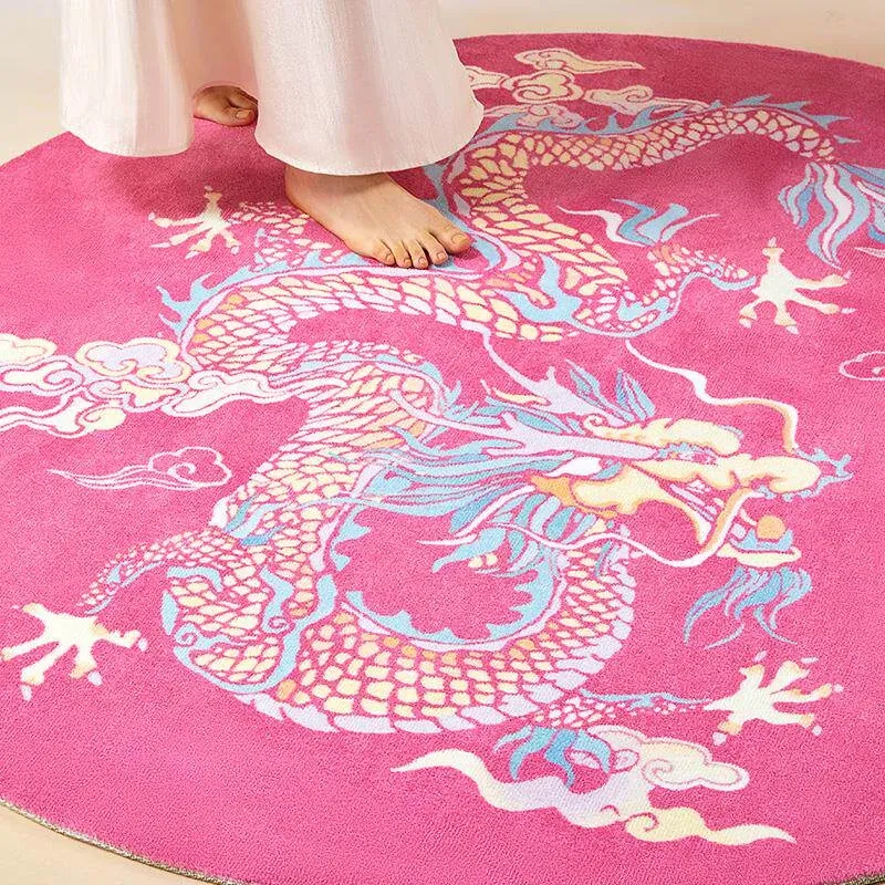 Dragon Soaring Pink Nylon Rug - Round