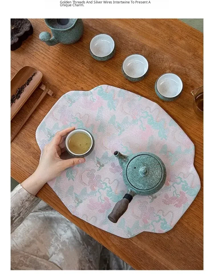 Elegant Chinese Zen Style Waterproof Tea Table Mat - Premium Textured Tea Cloth for a Serene Tea Experience - Perfect for Your Tea Ceremony Setup