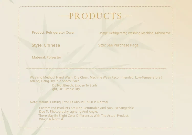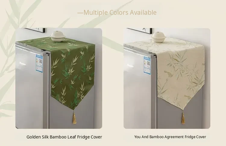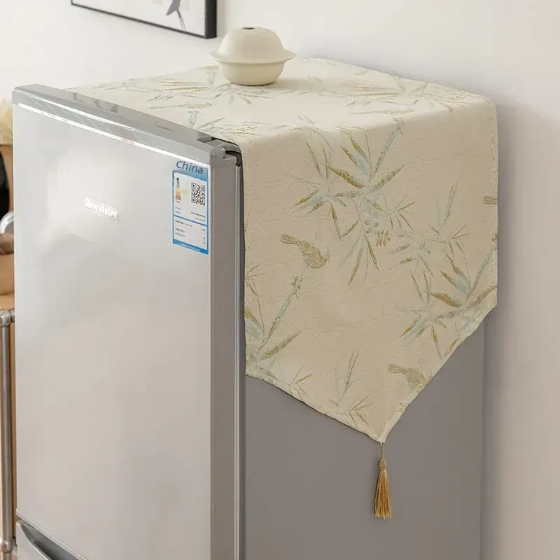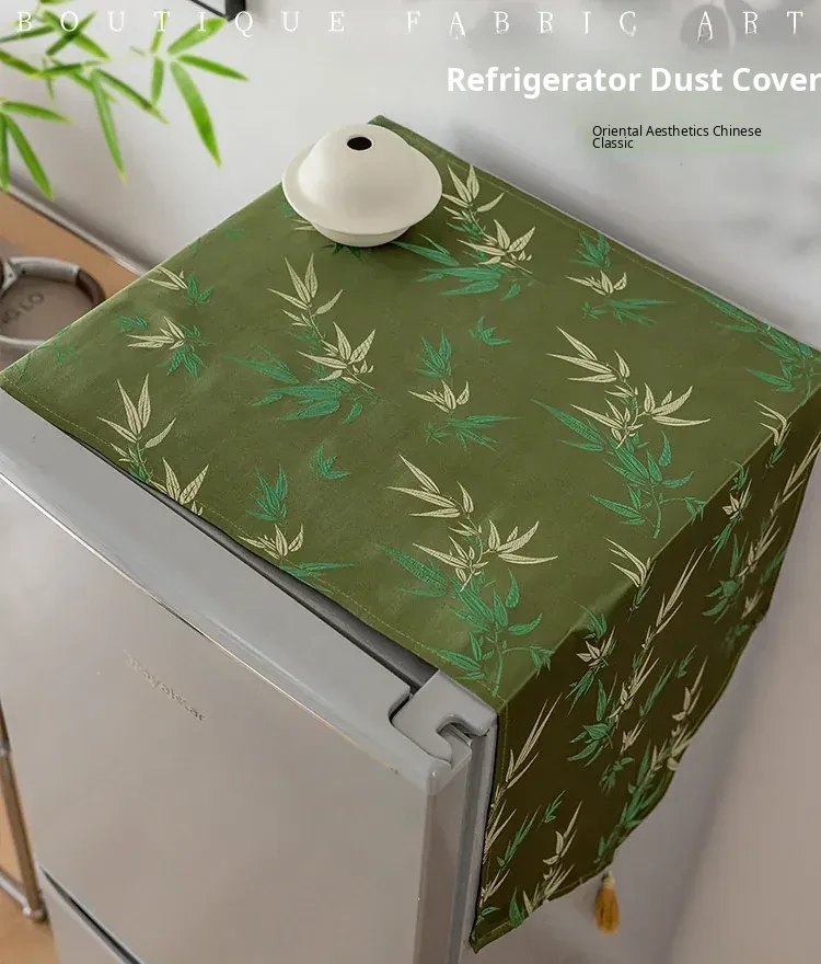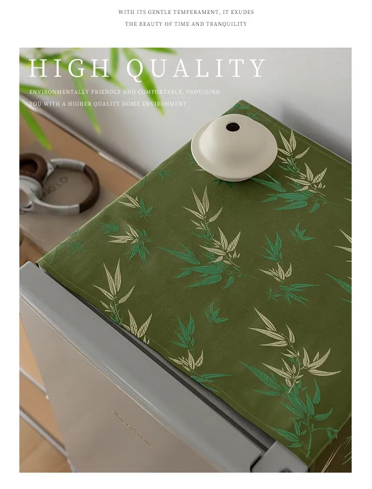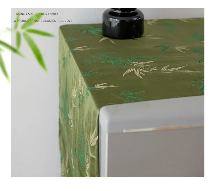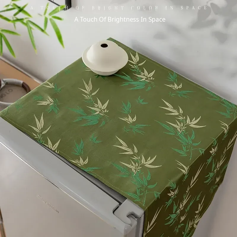 Elegant Chinese-Style Dust Cover for Refrigerators - Green Bamboo Design, Perfect Fit for Cross-Door Freezers, Rectangular Shape, Enhances Home Décor and Protects Your Appliance!