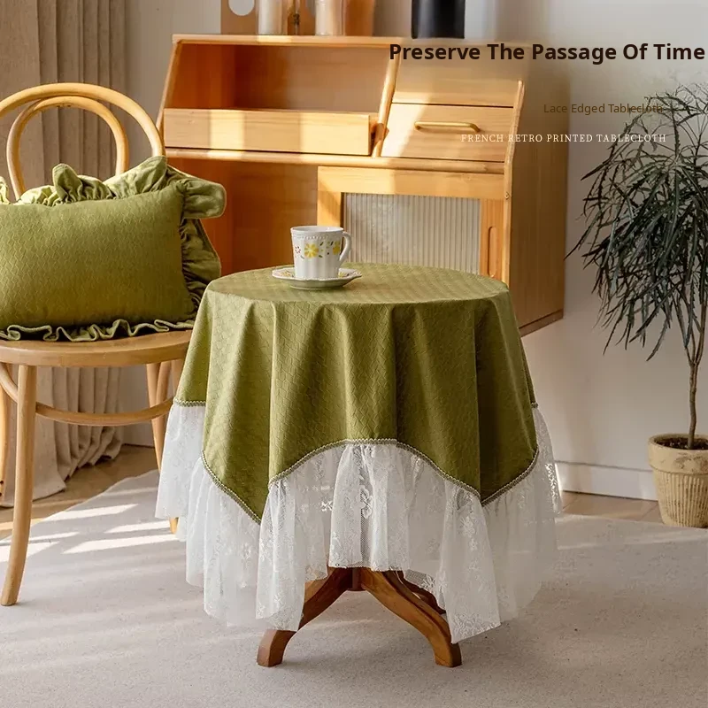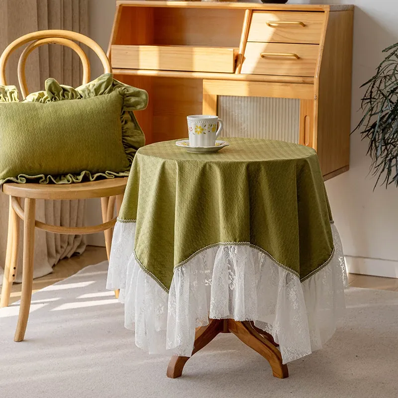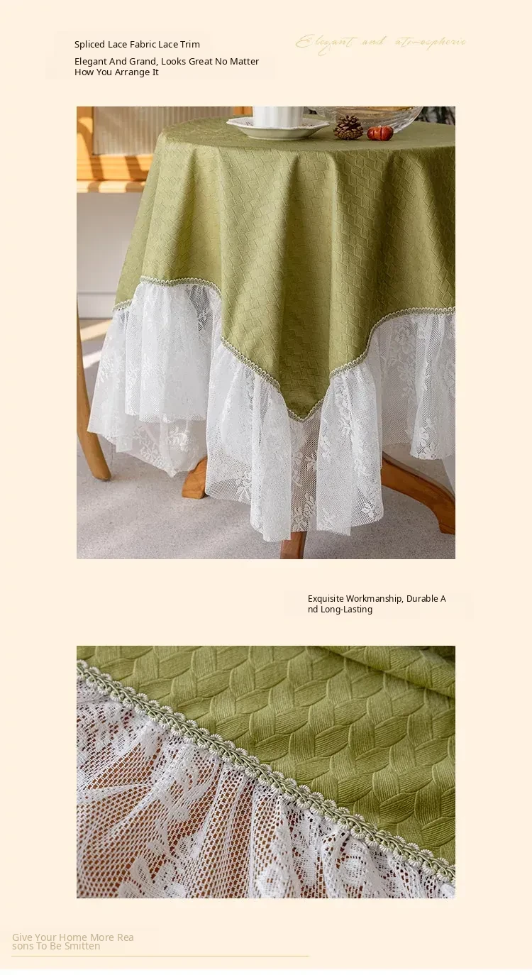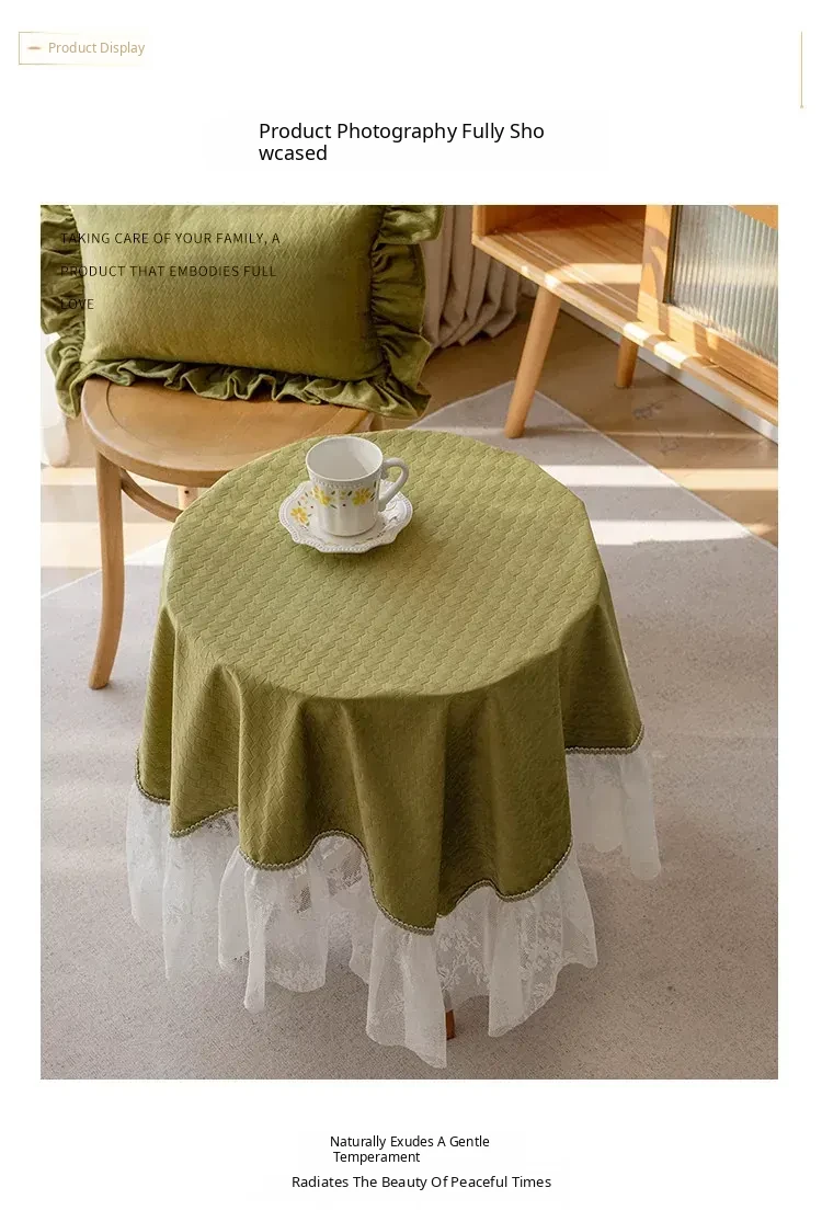 Elegant European Lace Round Tablecloth in Cream - Luxurious Cotton-Linen Cover for Coffee Tables and Dining Tables, Perfect for a Chic Home Décor Upgrade.