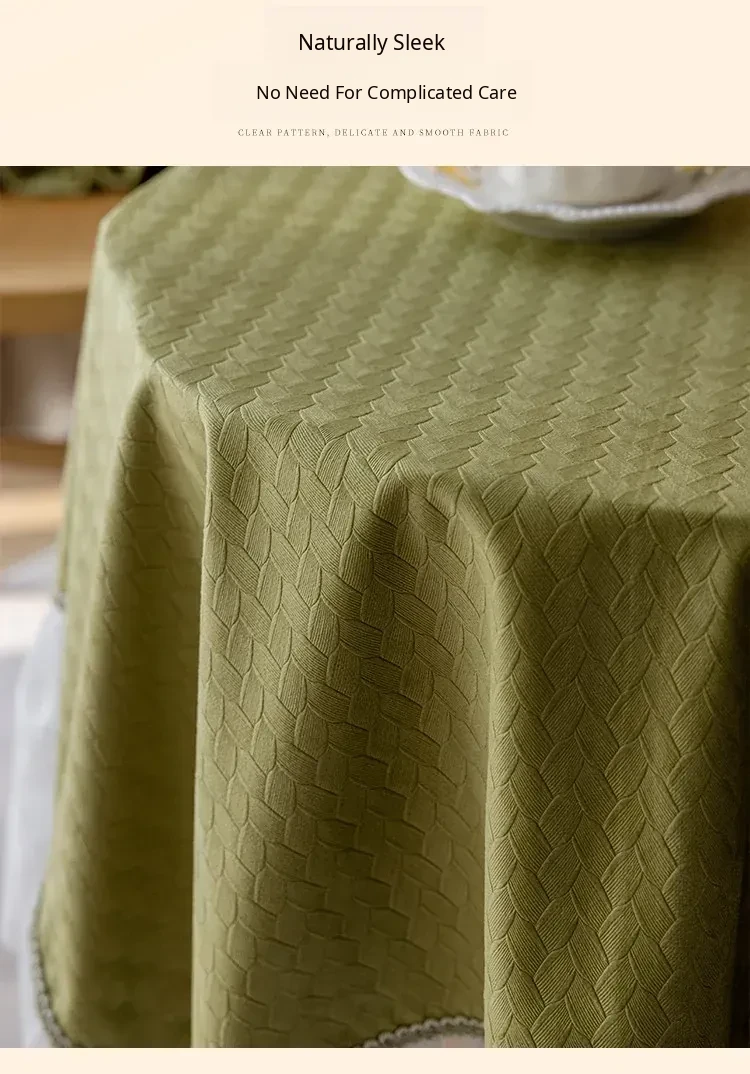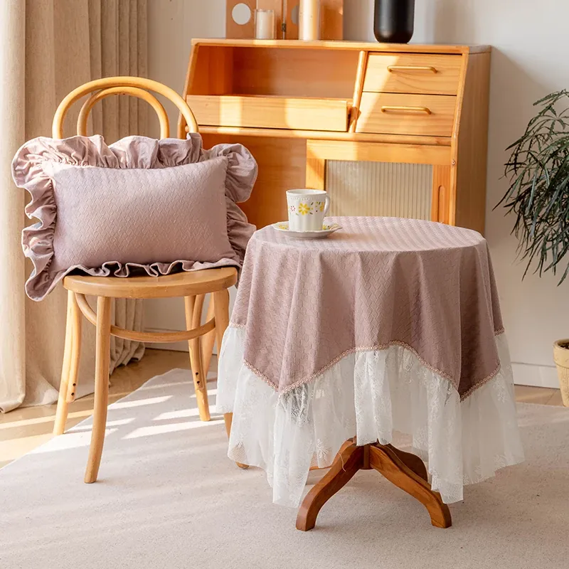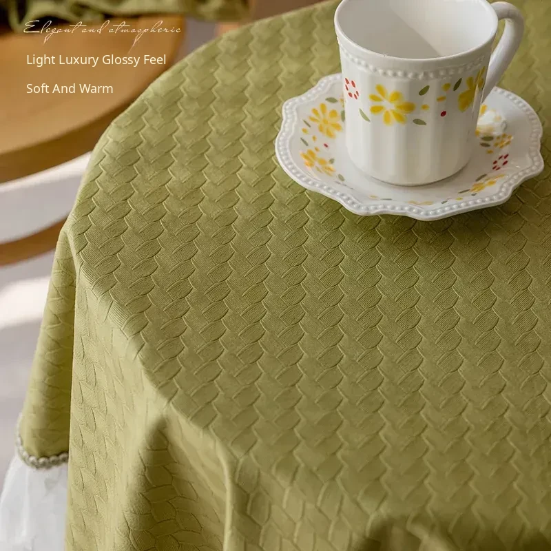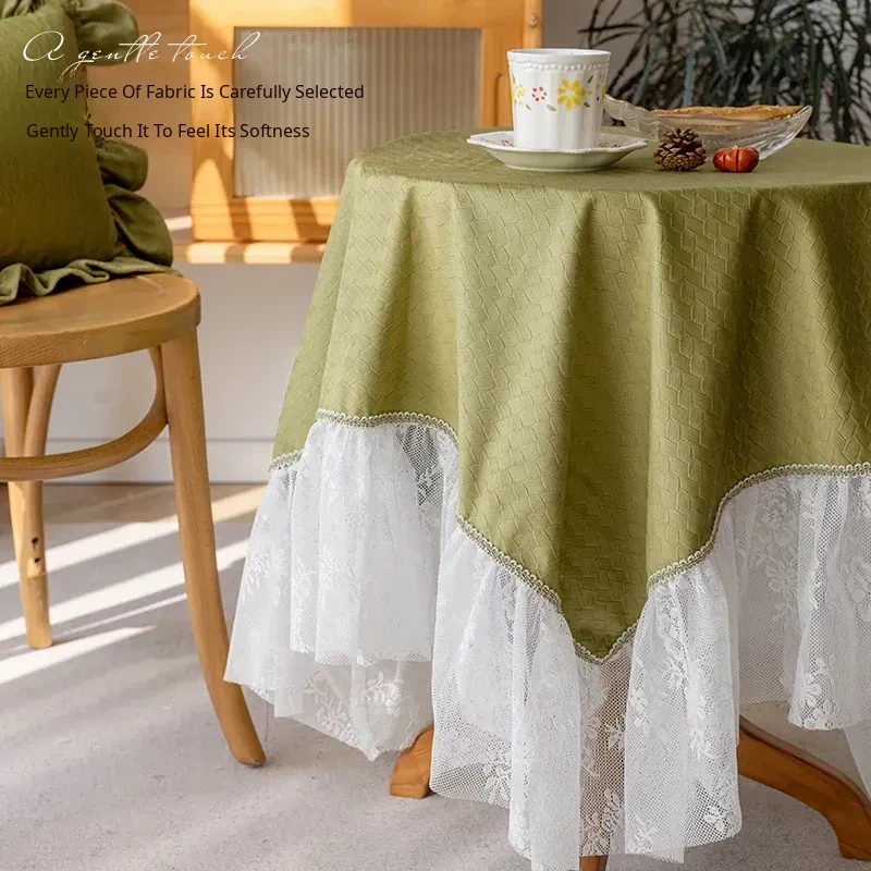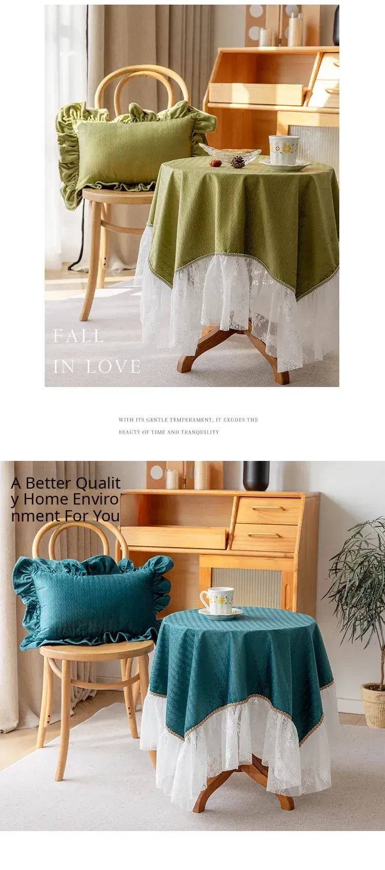 Elegant European Lace Round Tablecloth in Cream - Luxurious Cotton-Linen Cover for Coffee Tables and Dining Tables, Perfect for a Chic Home Décor Upgrade.