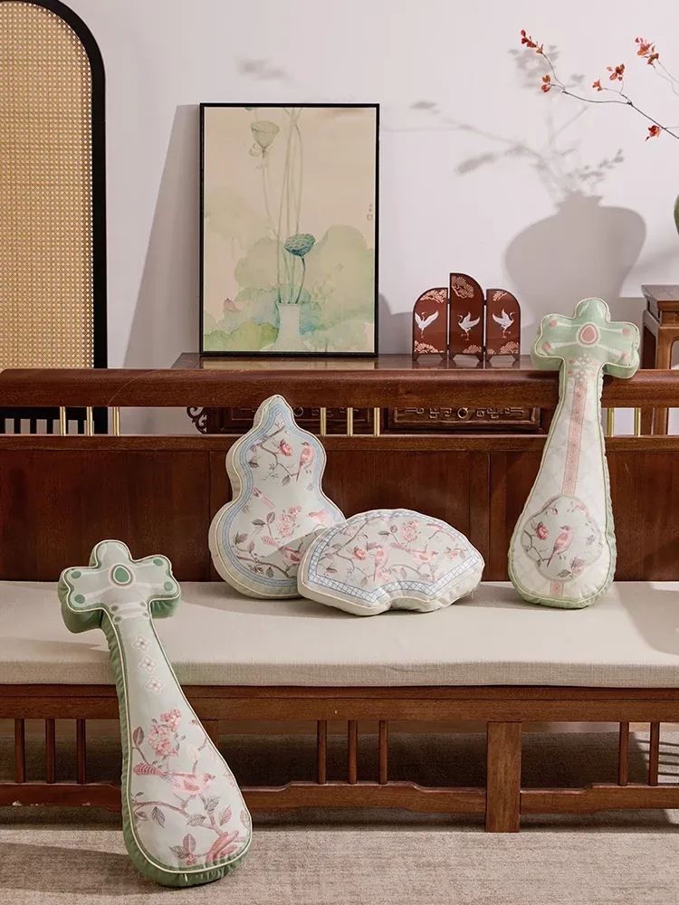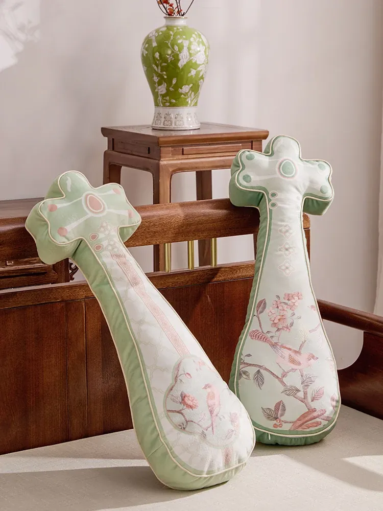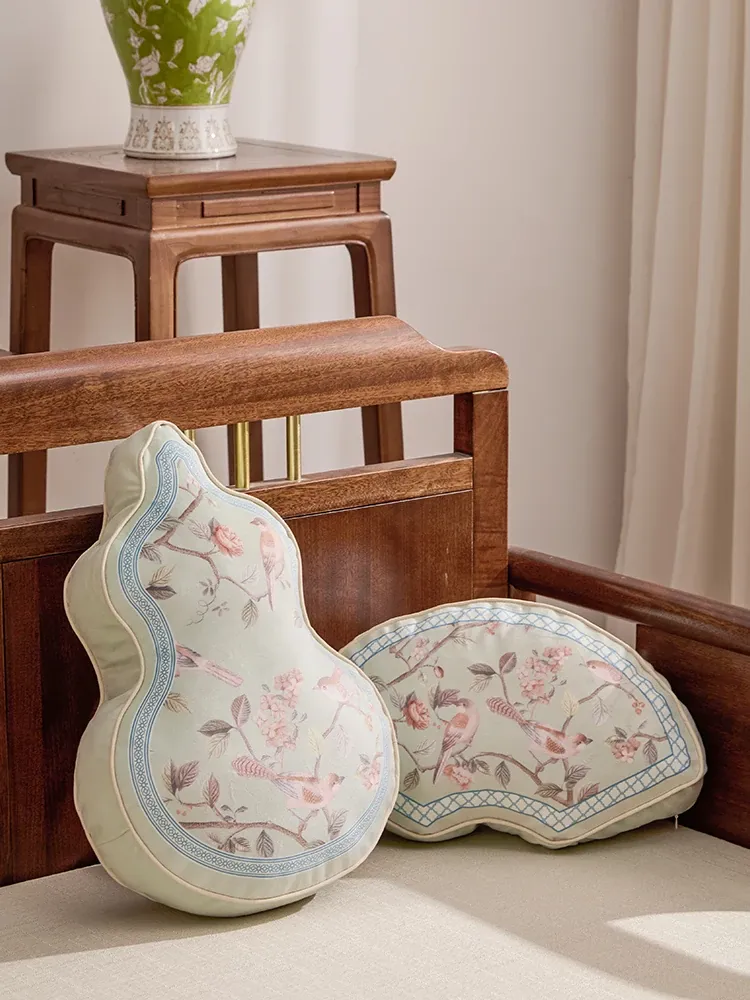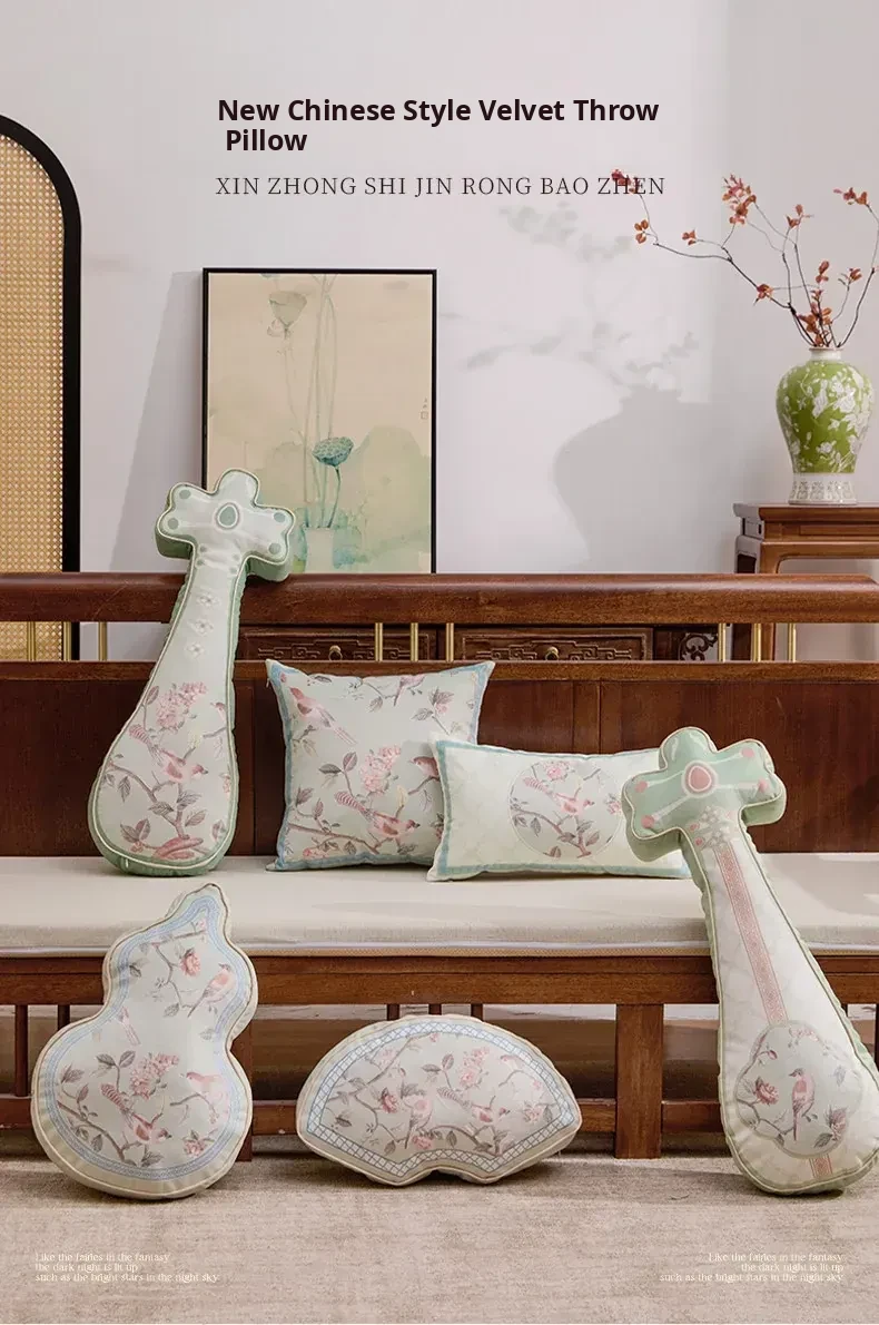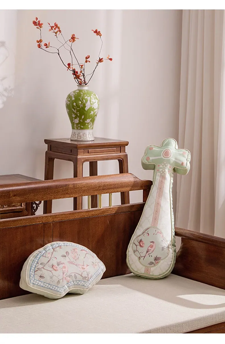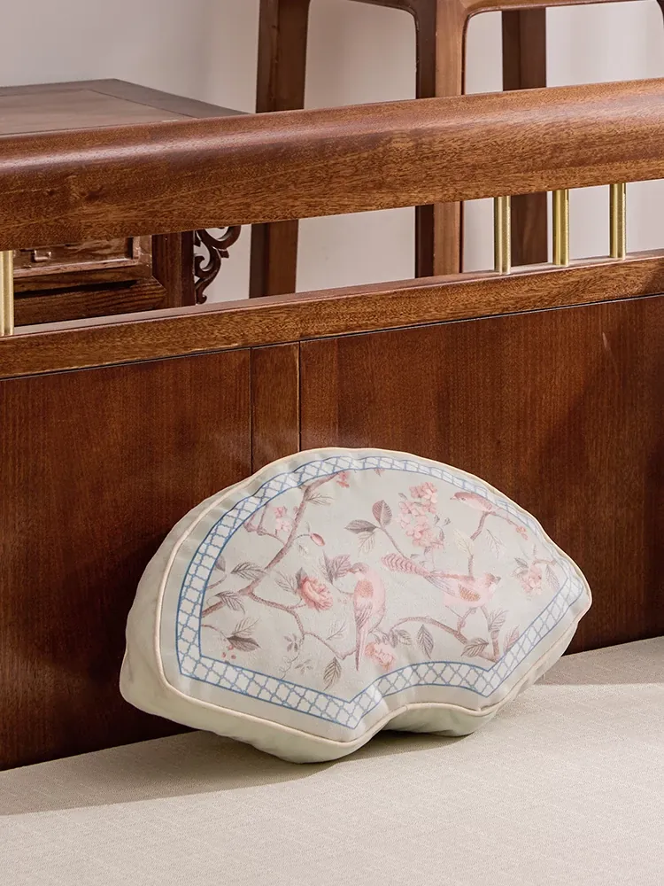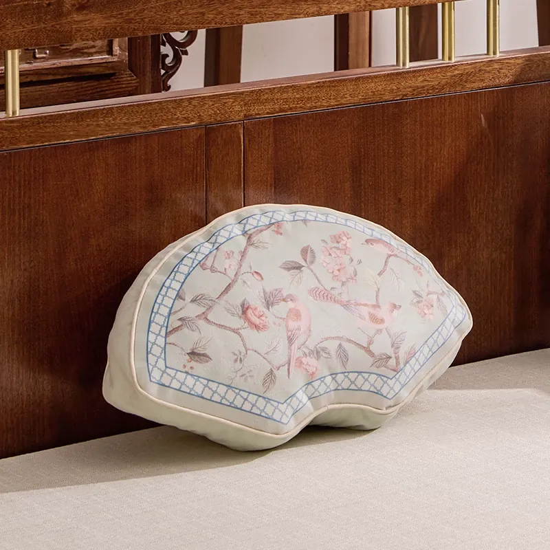 Elegant New Chinese Style Fan-Shaped Throw Pillow for Living Room Sofa - Premium Quality Decorative Waist Cushion for Bedroom and Bay Window Accents