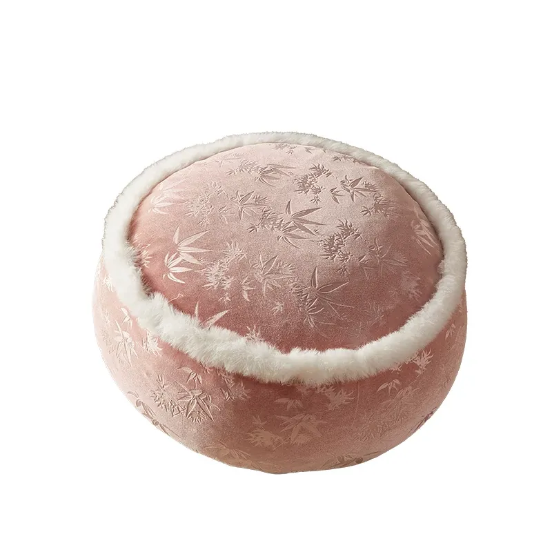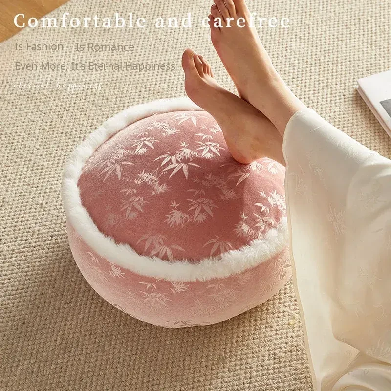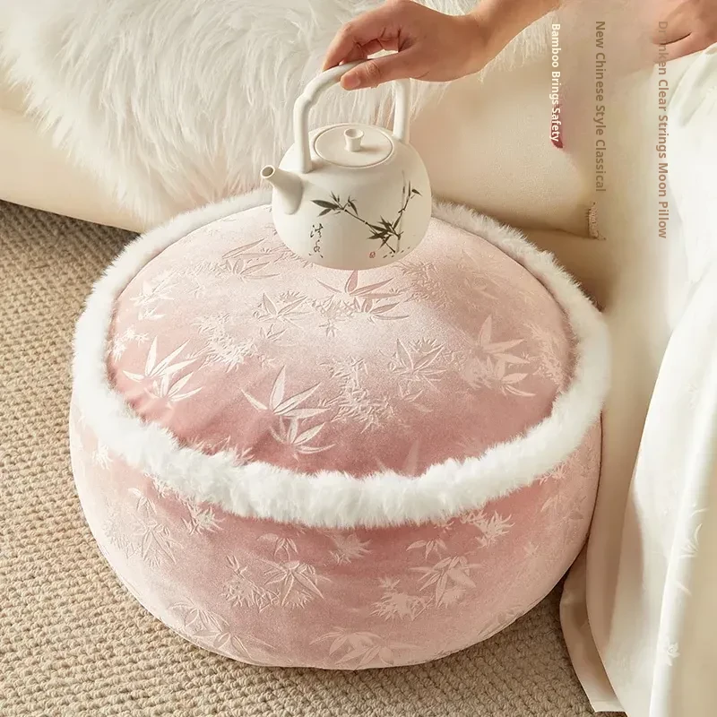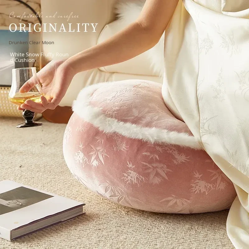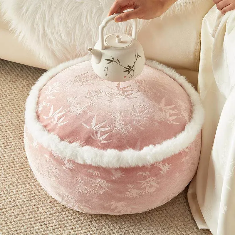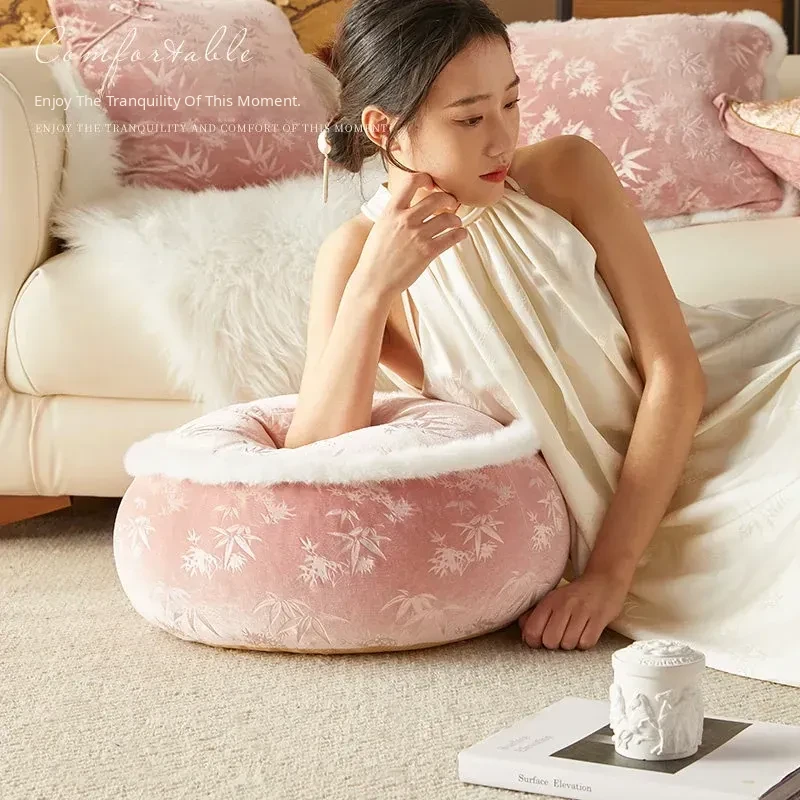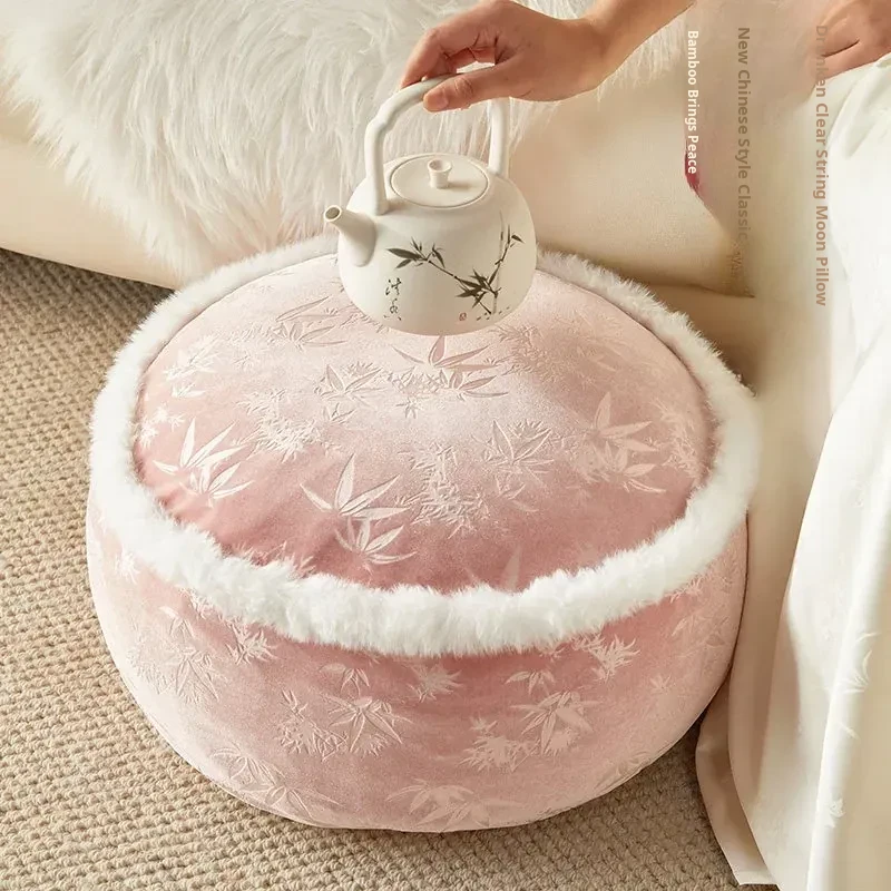 Elegant New Chinese Style Floor Cushion - French-Inspired Plush Meditation Stool for Living Room and Balcony - Premium Pink Low Seat for Winter Comfort and Relaxation