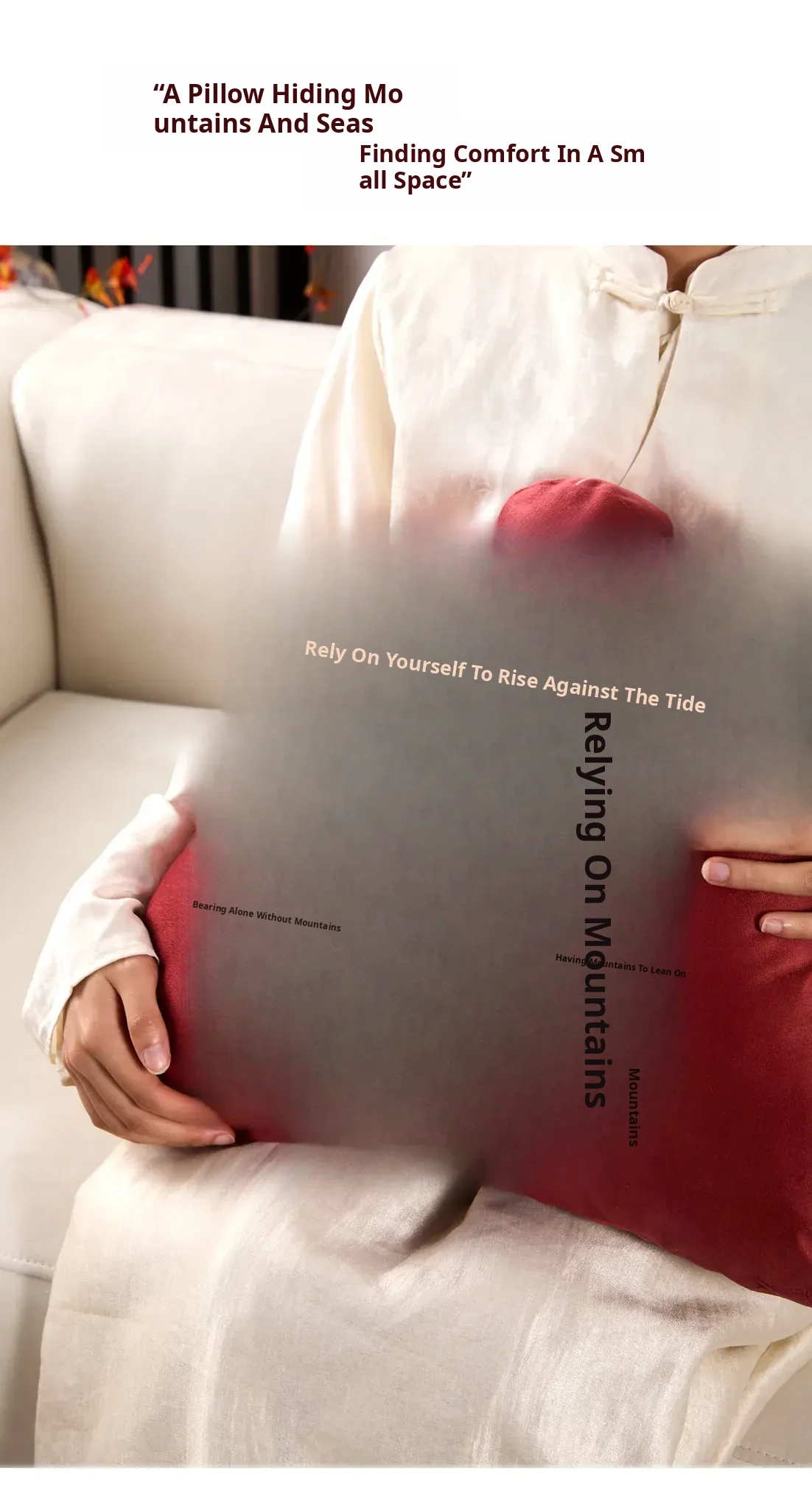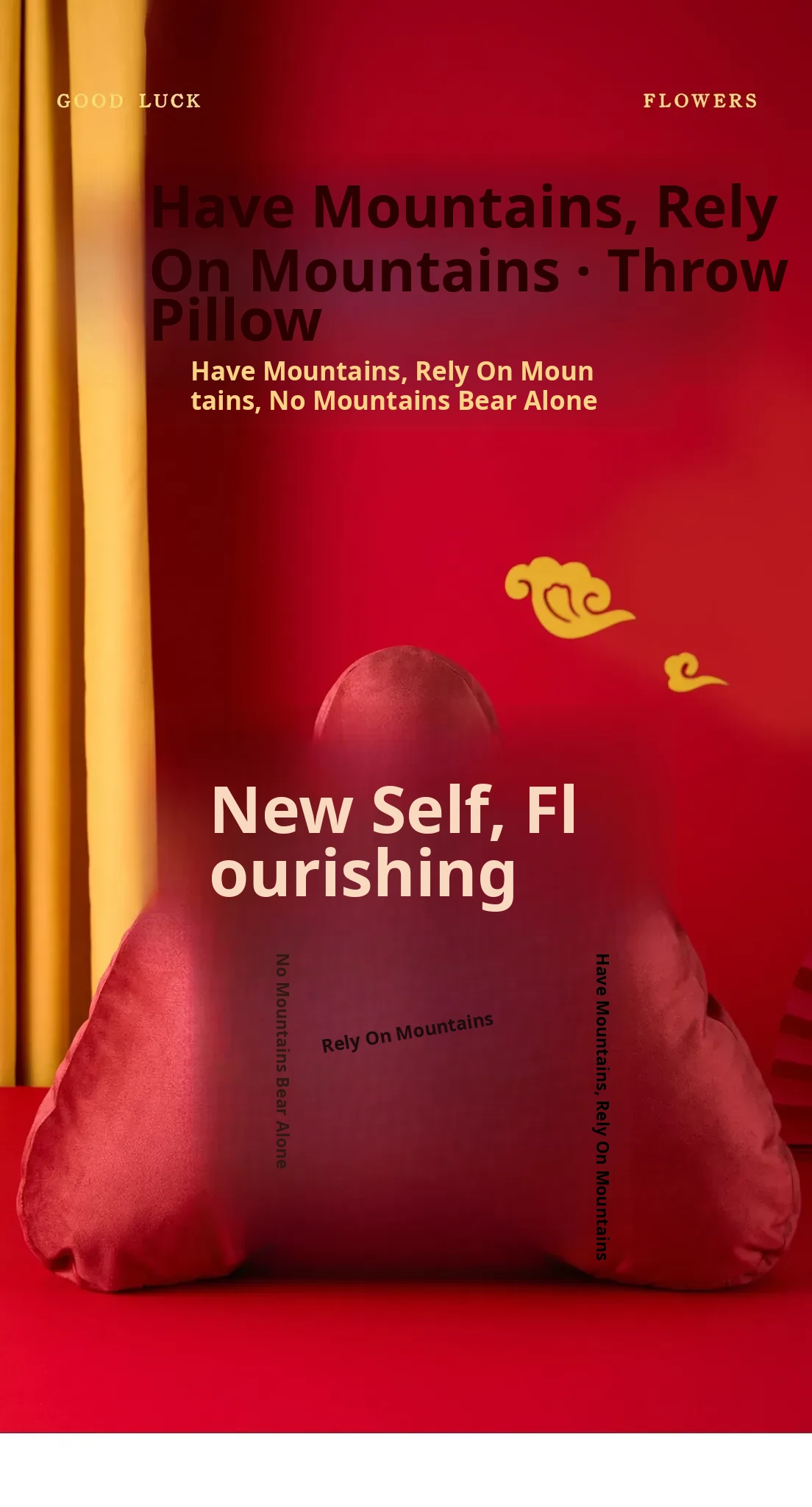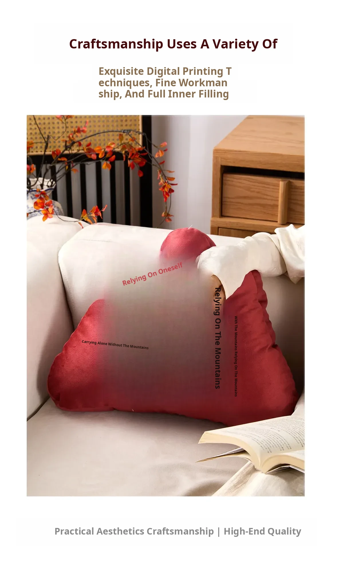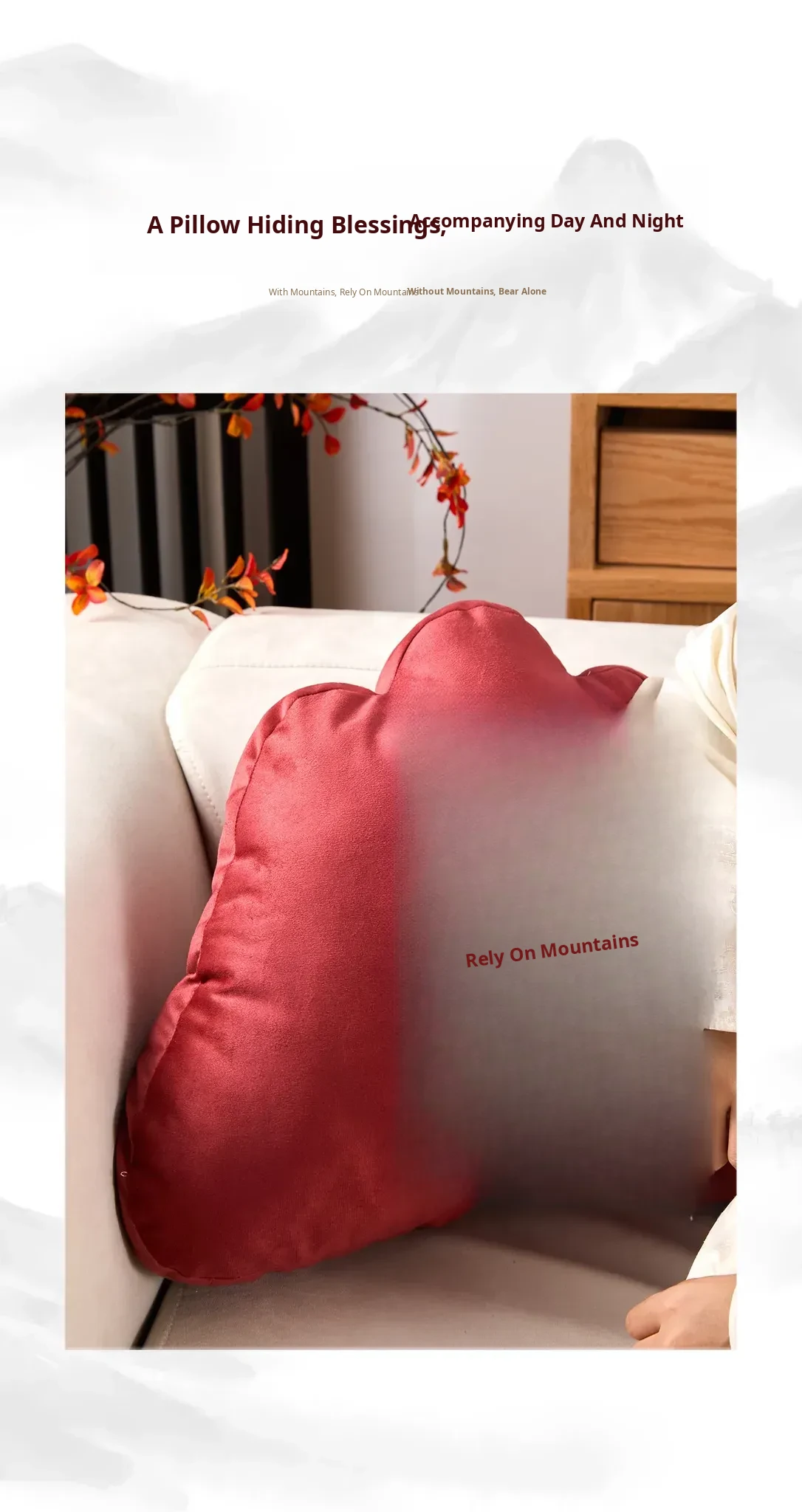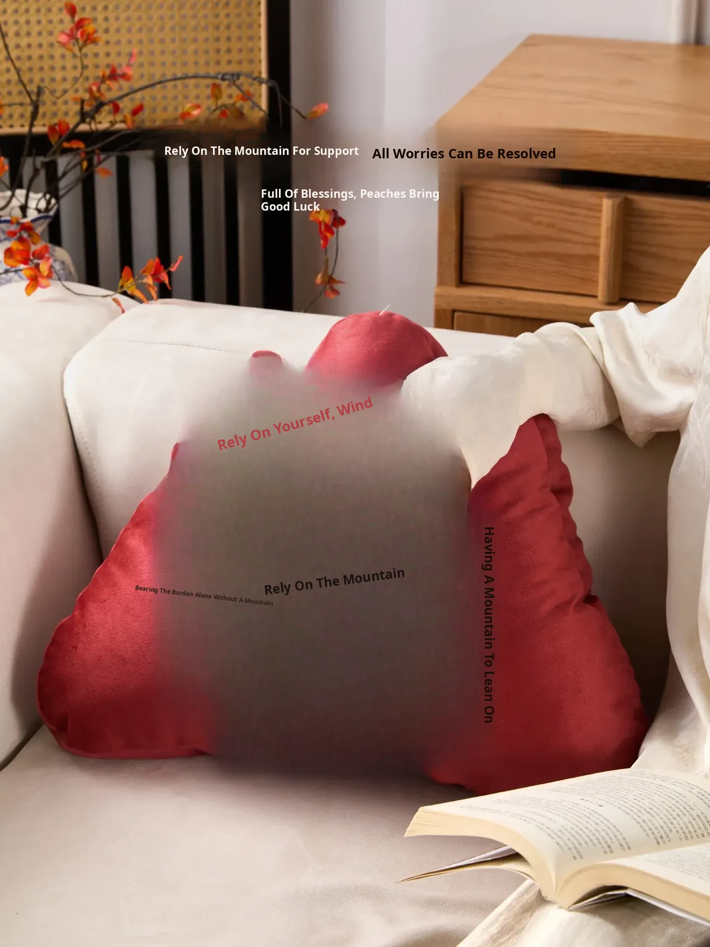Elegant New Chinese Style Red Mountain-Shape Throw Pillow for Sofa, Living Room, and Office - Unique Backrest Cushion for Chairs and Supportive Lumbar Pillow