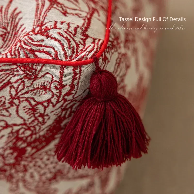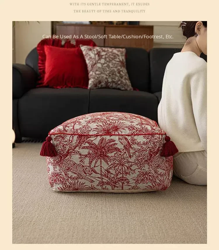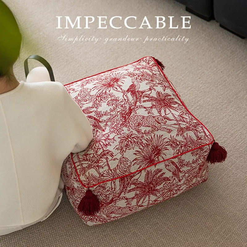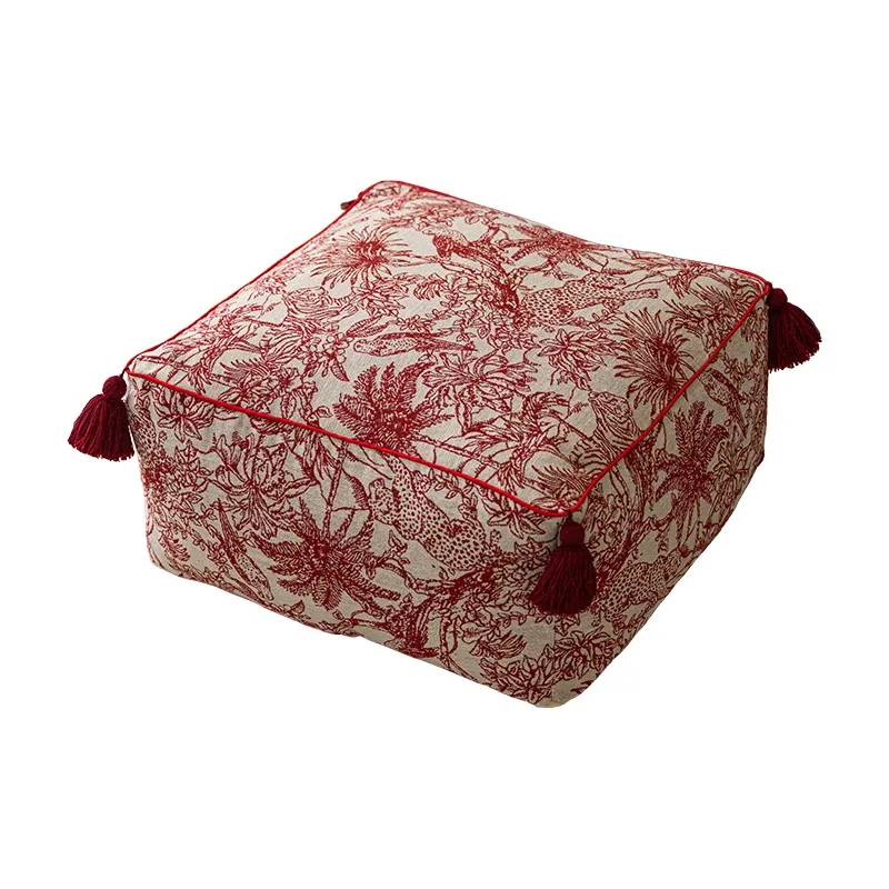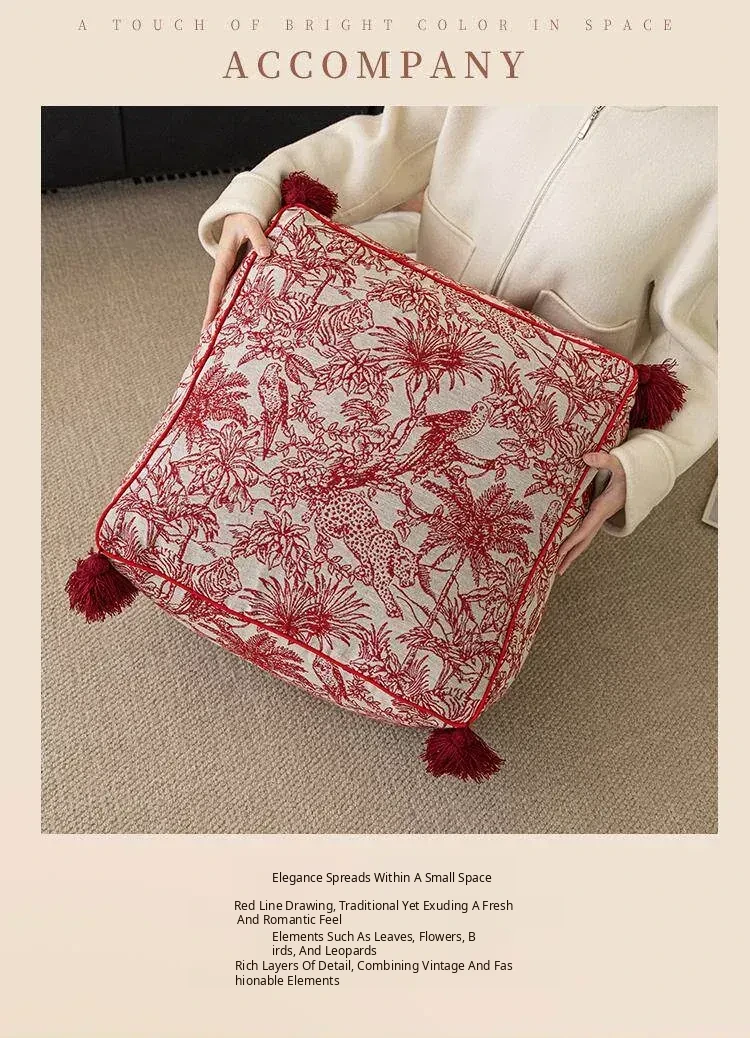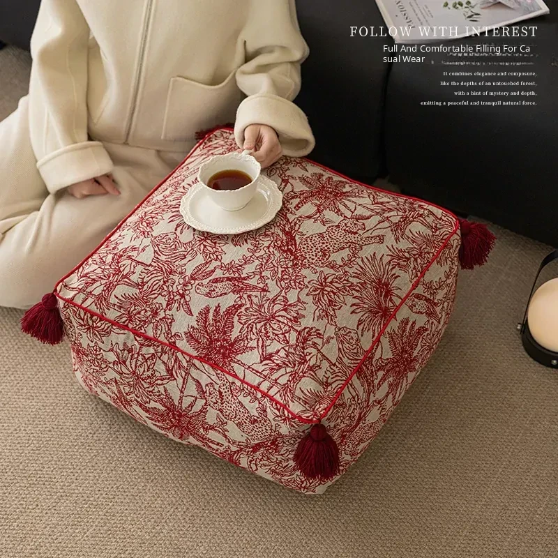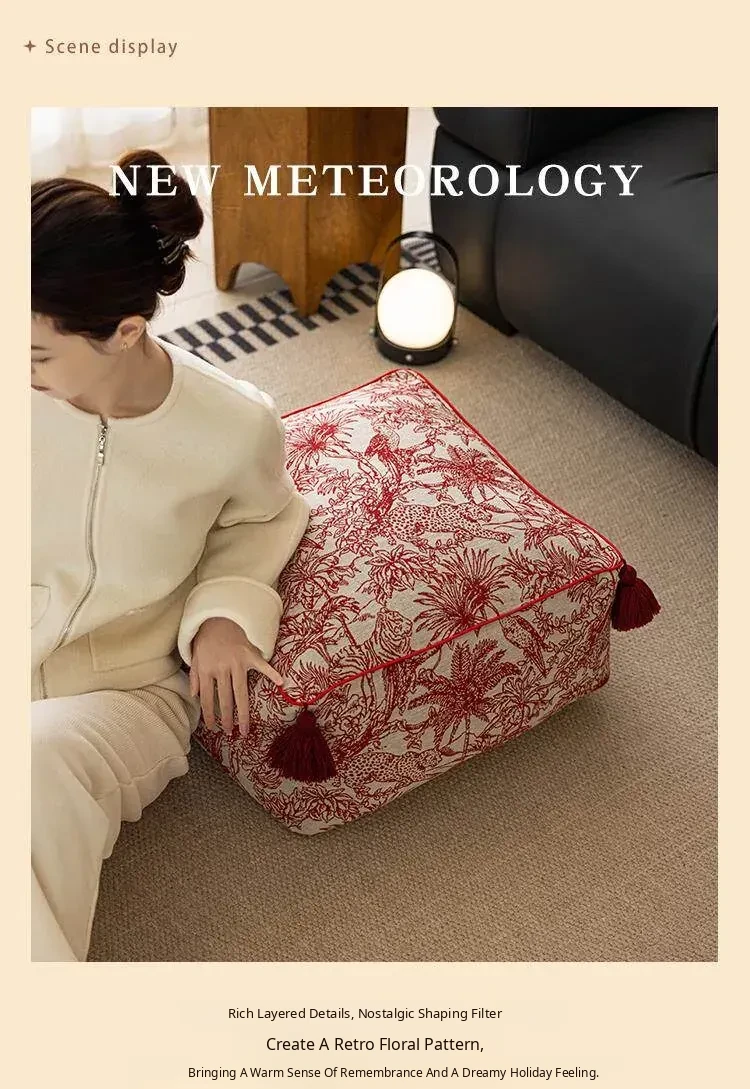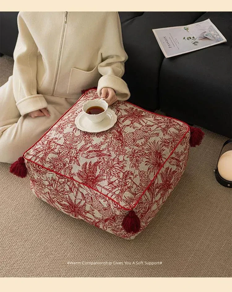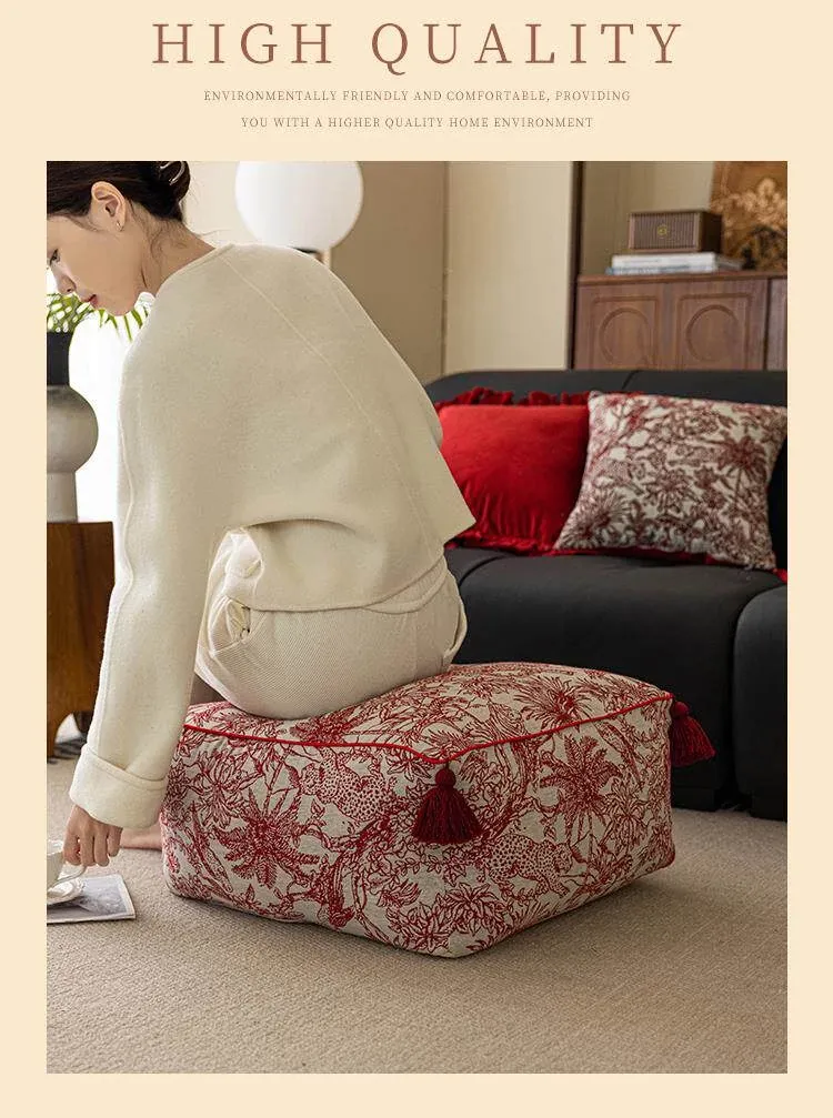 Festive Red New Chinese-Style Floor Cushion - French Lazy Sofa Tatami Pouf for the Year of the Dragon, Square New Year Seat Pad