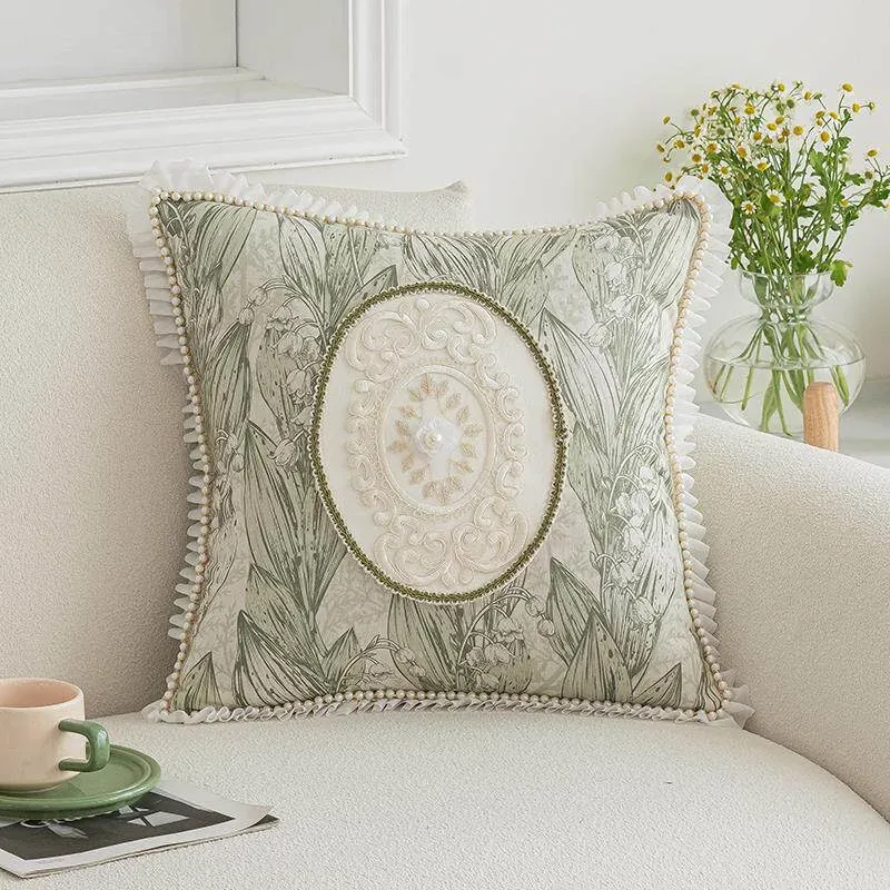 French Style Throw Pillow Cover for Sofa - Chic European Luxury Cushion Case, No Insert Included, Perfect for Living Room and Bedroom Decor, INS Aesthetic, American-Style Back Support Pillow.