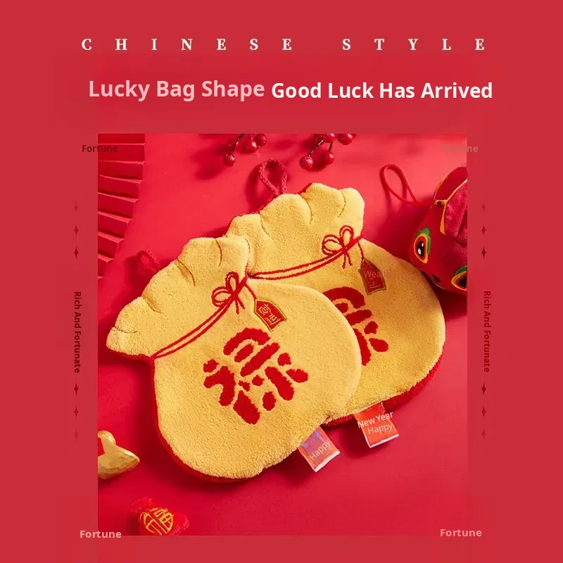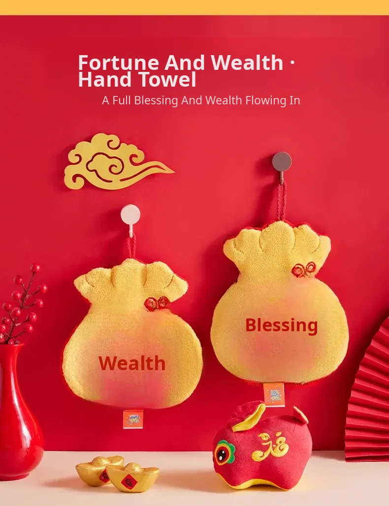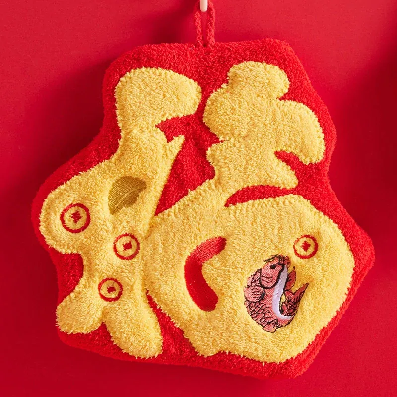 Fulu Absorbent Hand Towels - Super Absorbent and Quick-Drying Wall-Mounted Kitchen and Bathroom Cloths for New Year and Spring Festival Celebrations