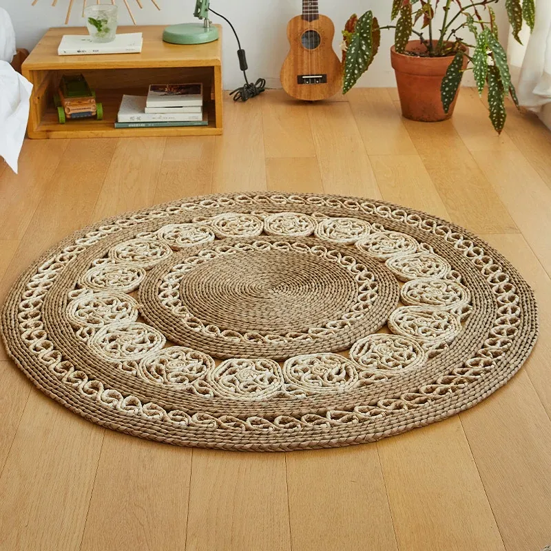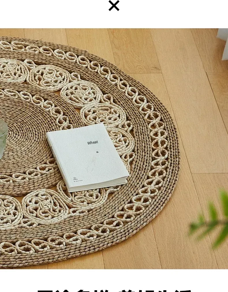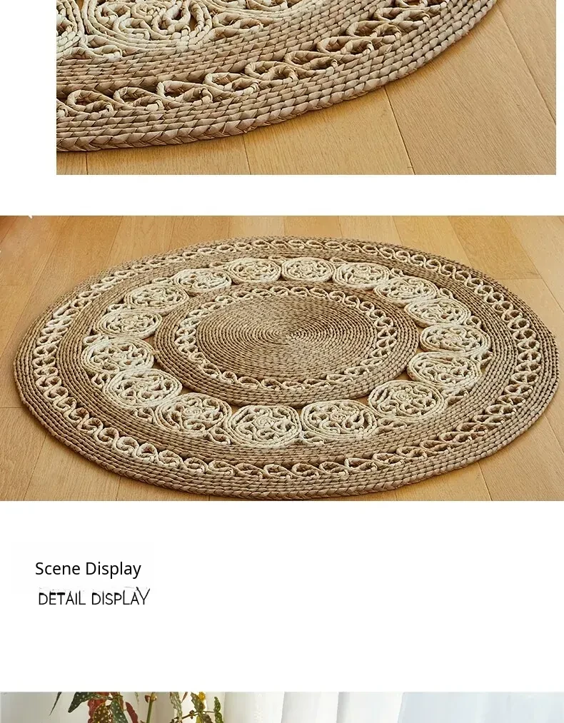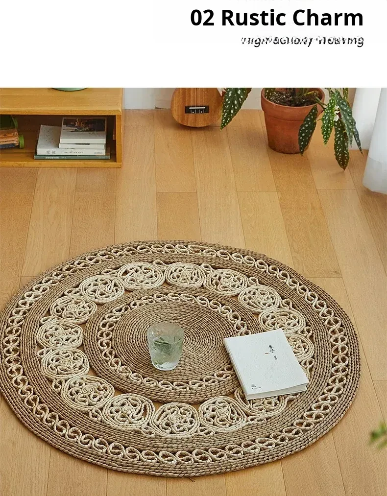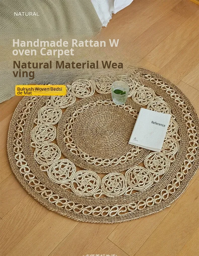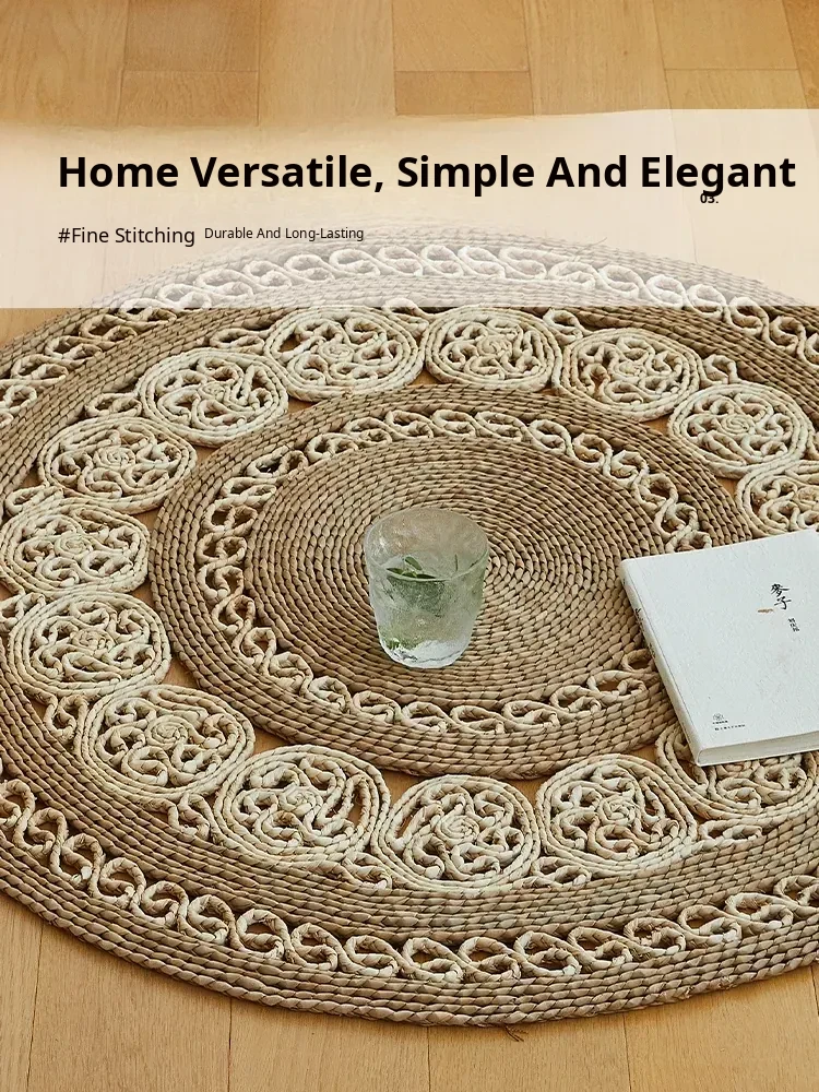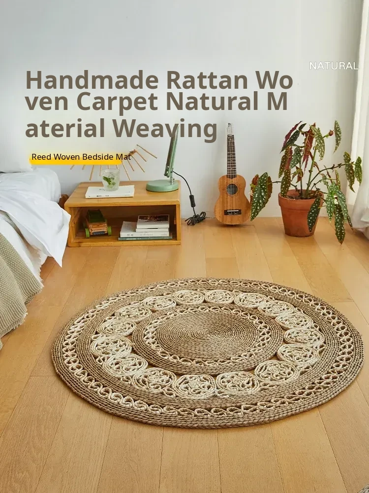 Handcrafted Round Area Rug for Bedroom and Closet - 2026 New Style Woven Grass Mat for Bedside and Living Room Decor