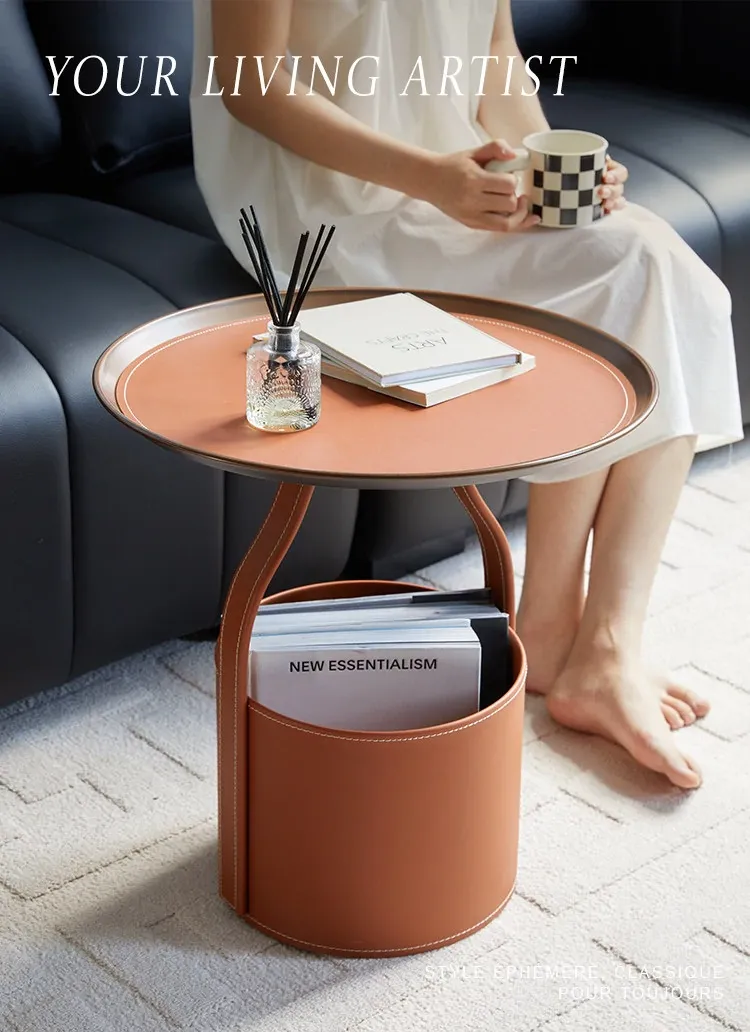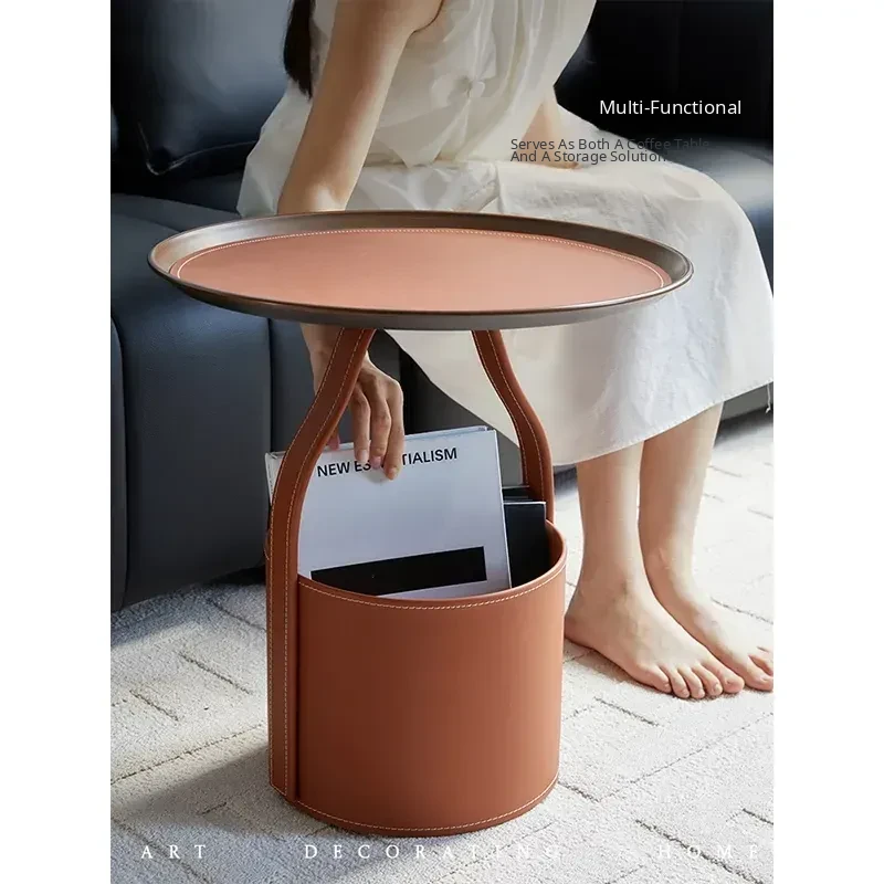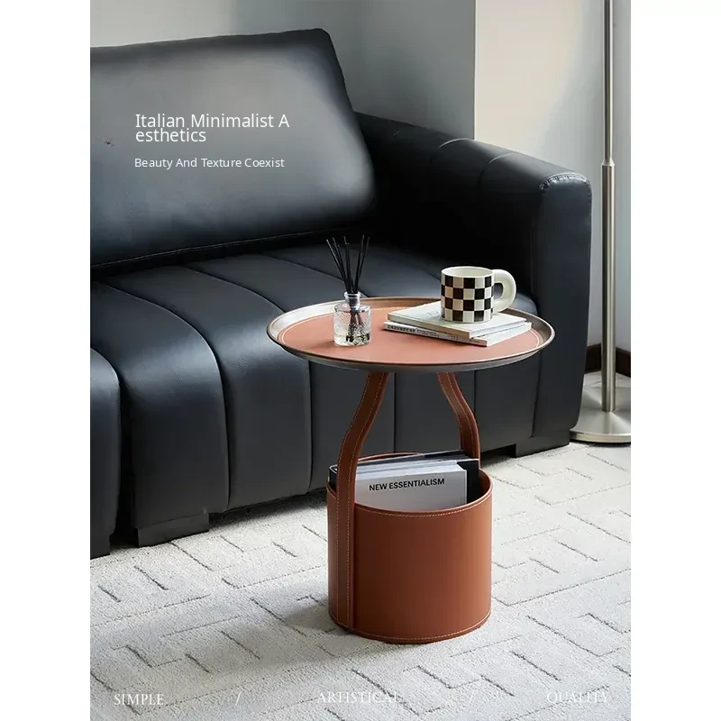 Italian Luxury Portable Side Table - Chic Round Coffee Table for Balcony with Creative Design and Premium Feel, Perfect for Modern Living Spaces and Stylish Storage Solutions.