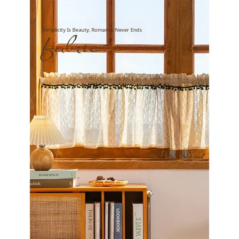 Kitchen Door Curtain and Window Shade - Bedroom Blackout Curtains with No-Drill Adjustable Rods, Half-Length Sheer Curtains for Bay Windows, Sunshade Drapes