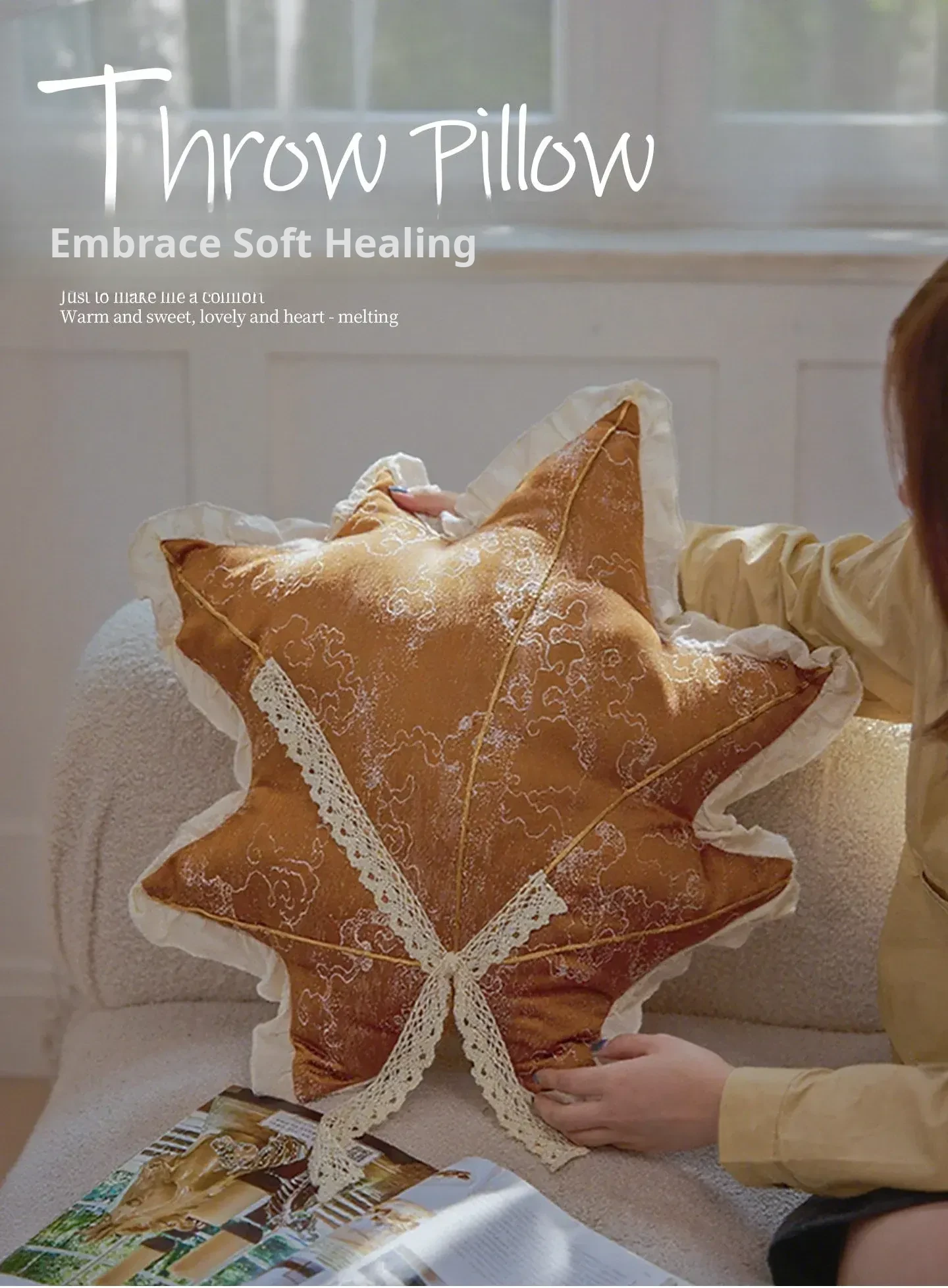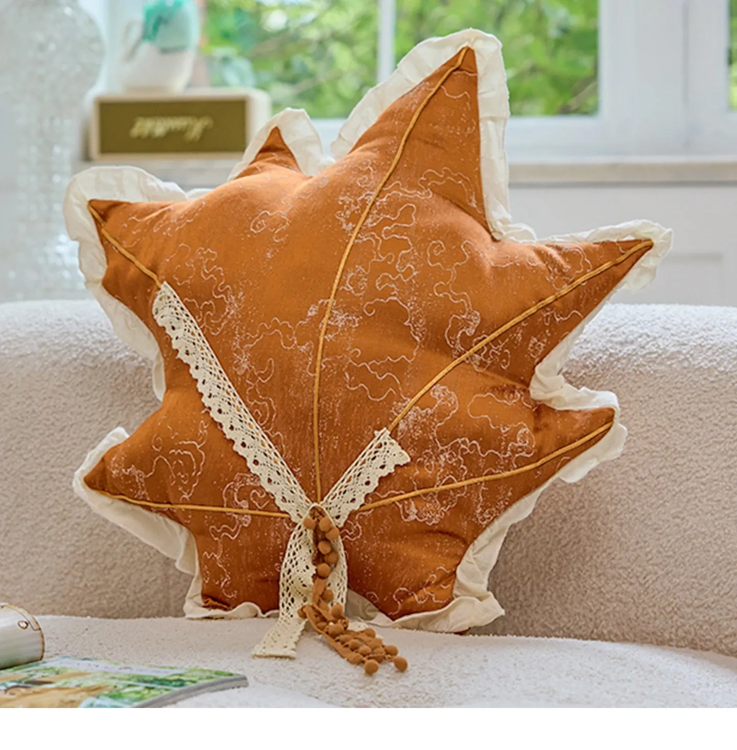 Luxurious American Brown Maple Leaf Shaped Pillow - Elegant Soft Fabric Cushions for Living Room Sofa Back Support and Bedroom Window Seat腰枕