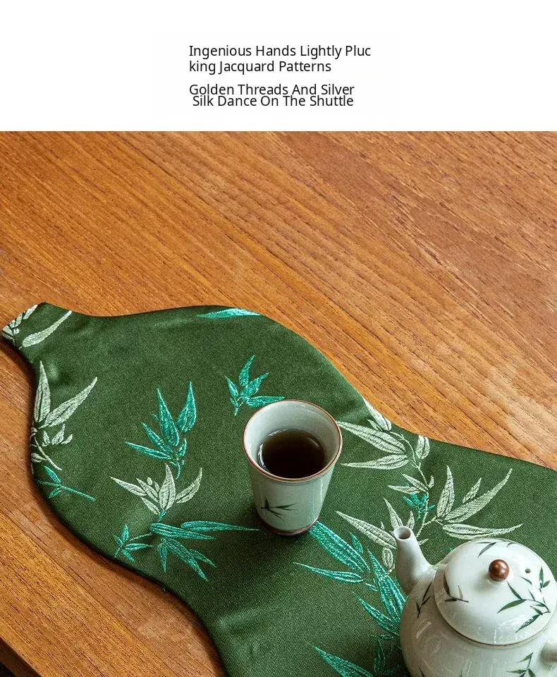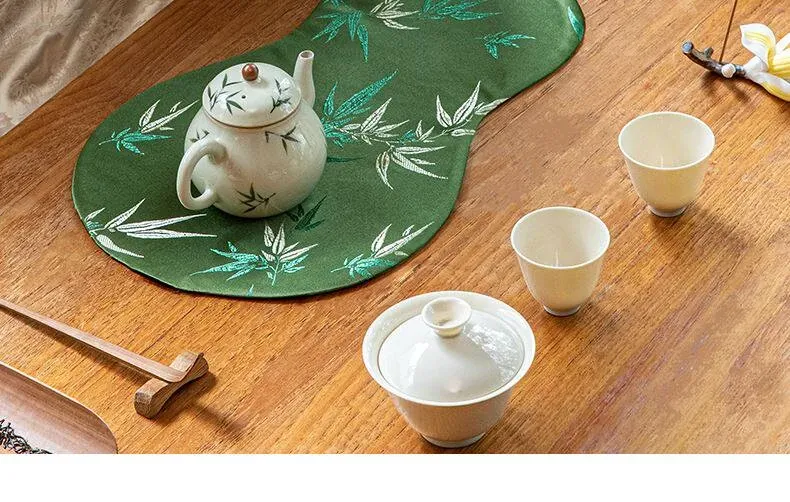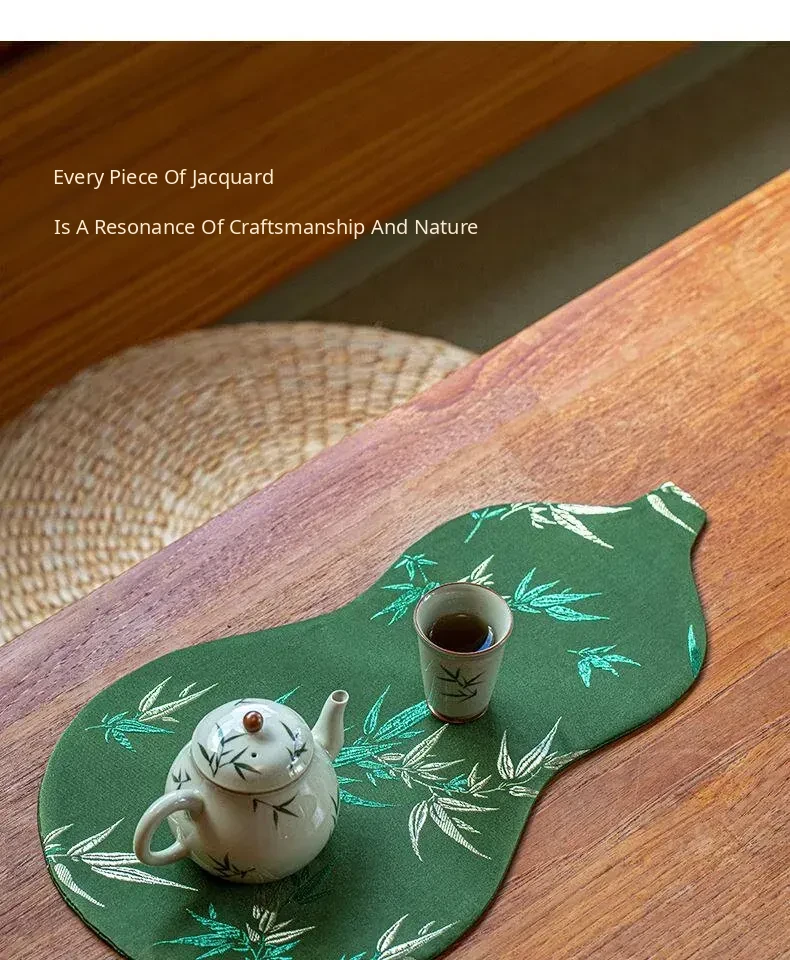 Luxury New Chinese Style Gourd Tea Mat - Waterproof Jacquard Table Runner for Tea Ceremony, Small Size, Zen Aesthetic, Perfect for Tea Tables and Tea Sets