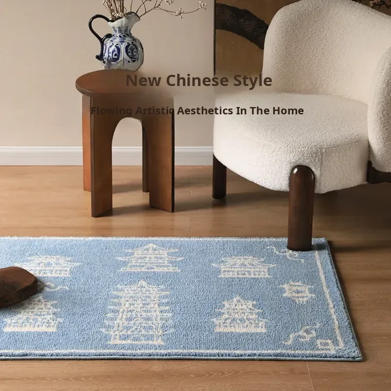 Luxury New Chinese Style Milk Silk Carpet for Living Room - Thickened Runner Rug for Sofa, Coffee Table, and Bedroom - Perfect for Closet and Bedside Decor