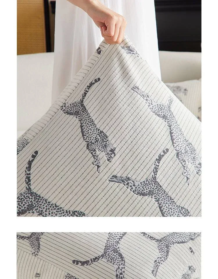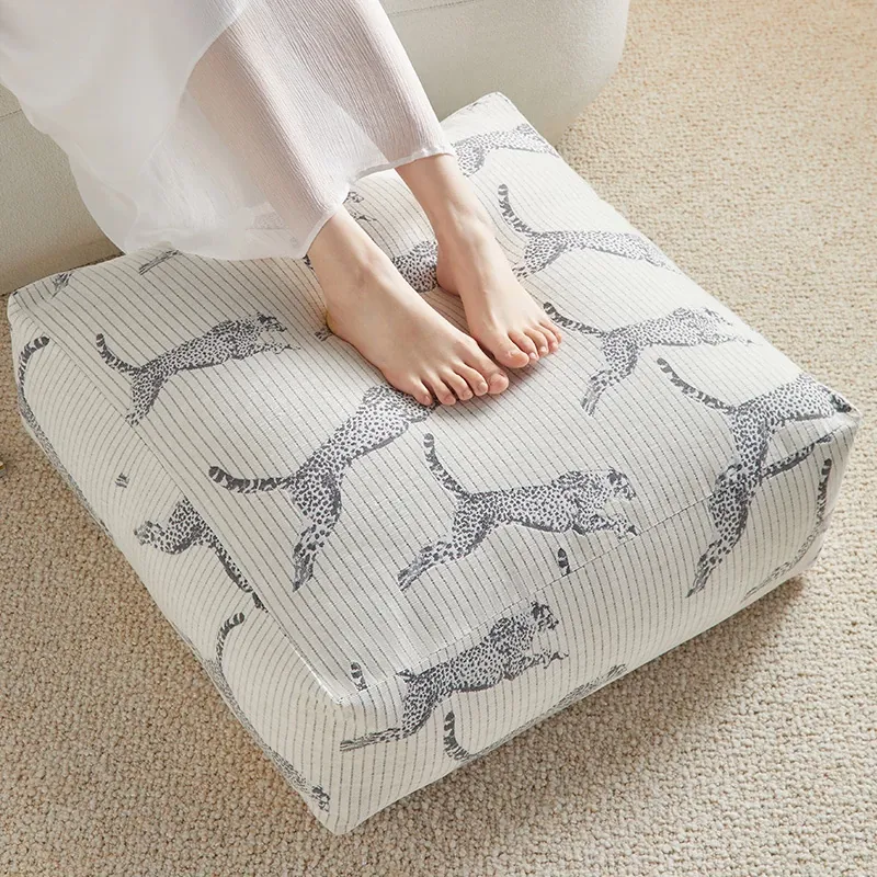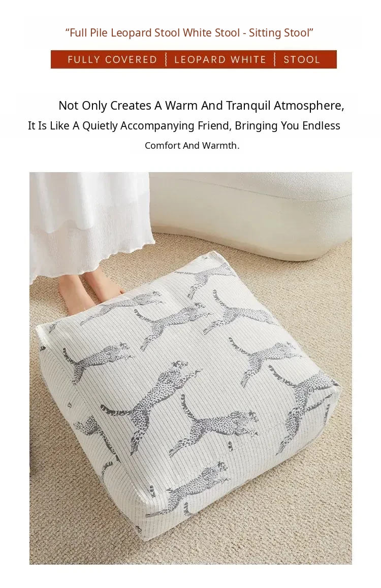 Full Leopard Print Pouf with White Seat Cushion