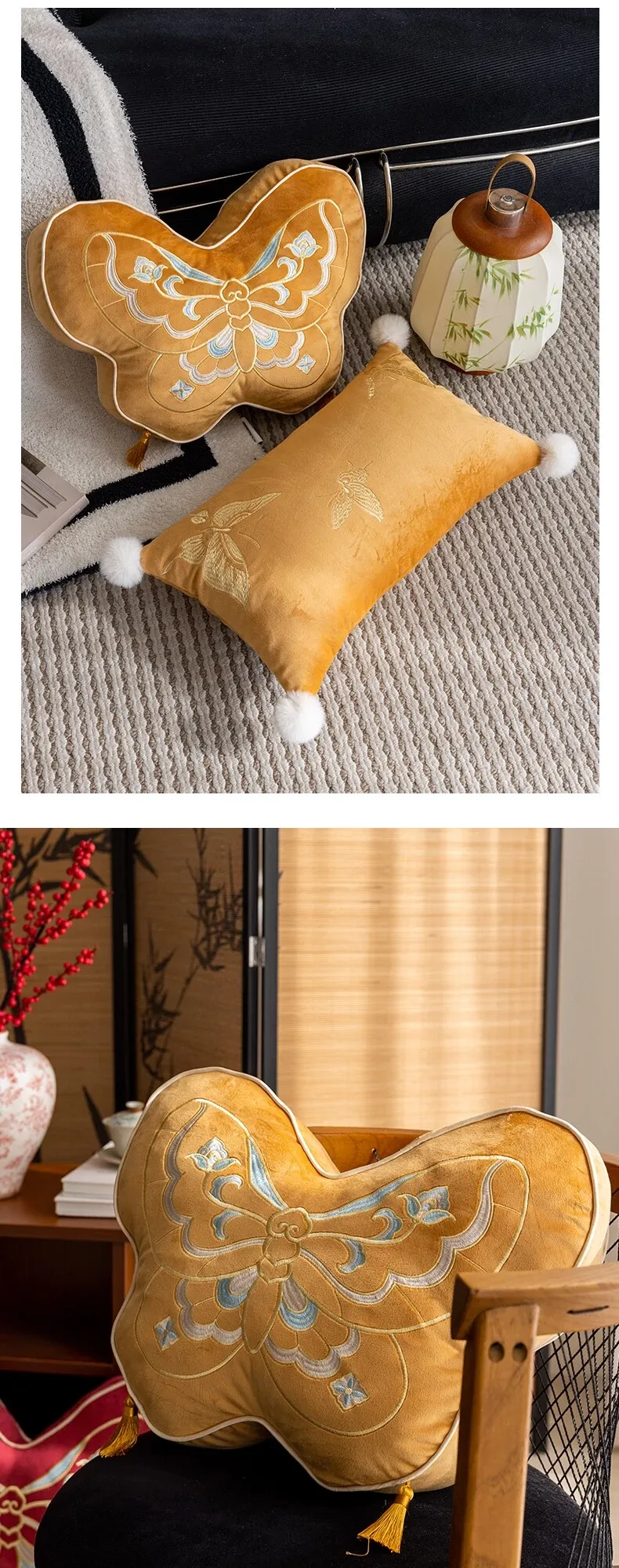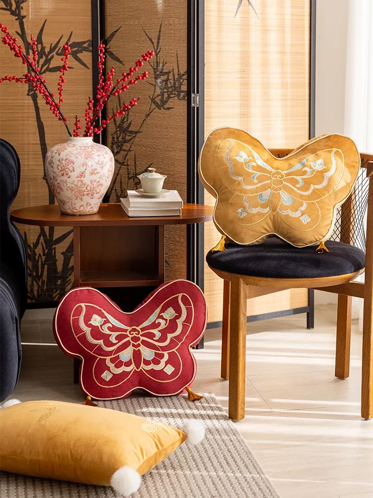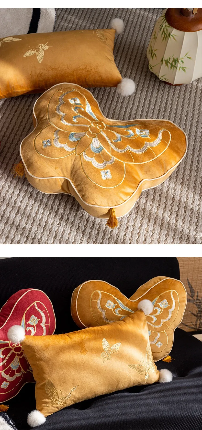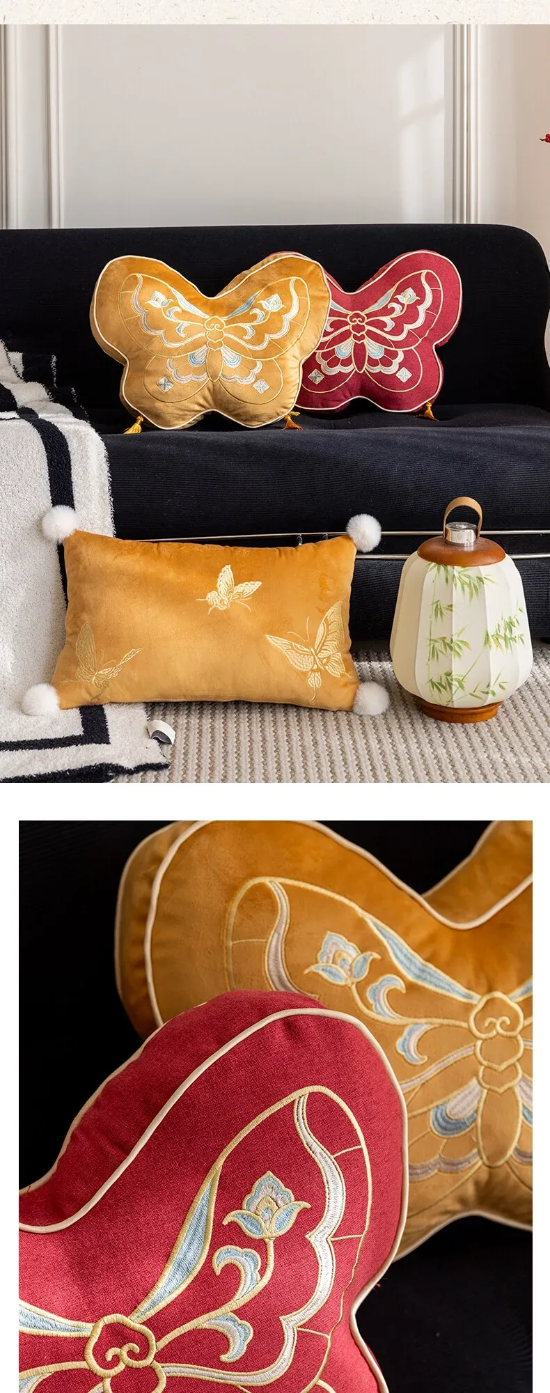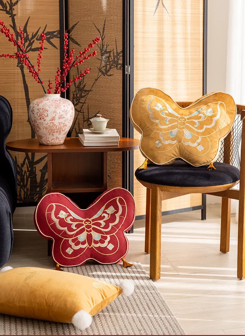 New Chinese Style Butterfly Embroidery Pillow - Unique Snake Year Cushion for Living Room Sofa, Festive and Adorable Decorative Pillow with Charming Butterfly Design for the New Year