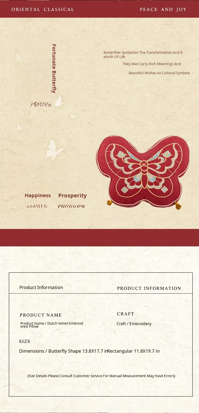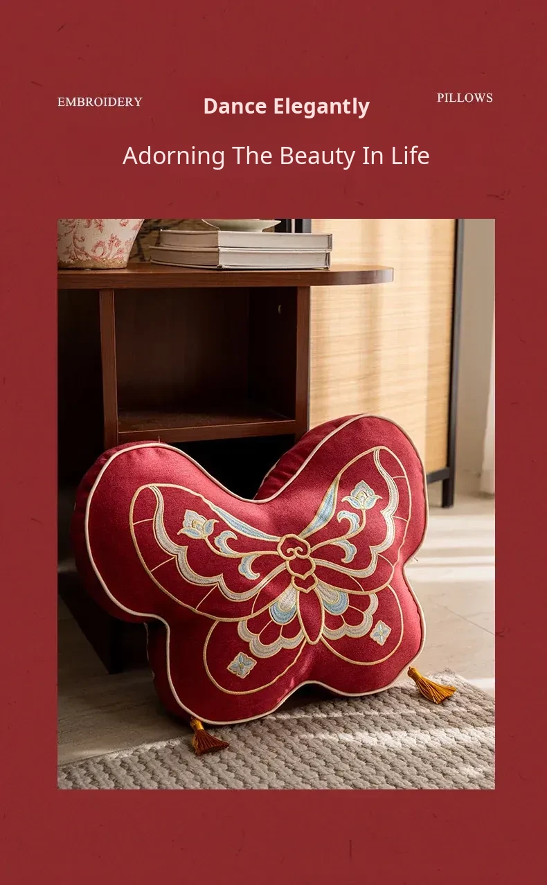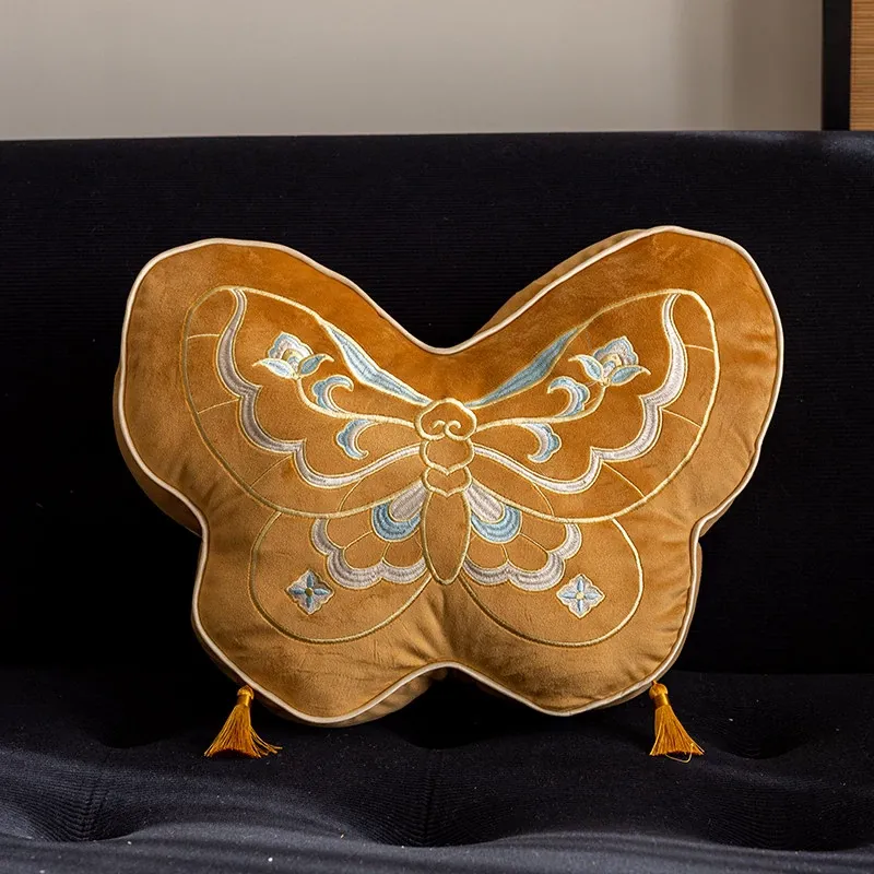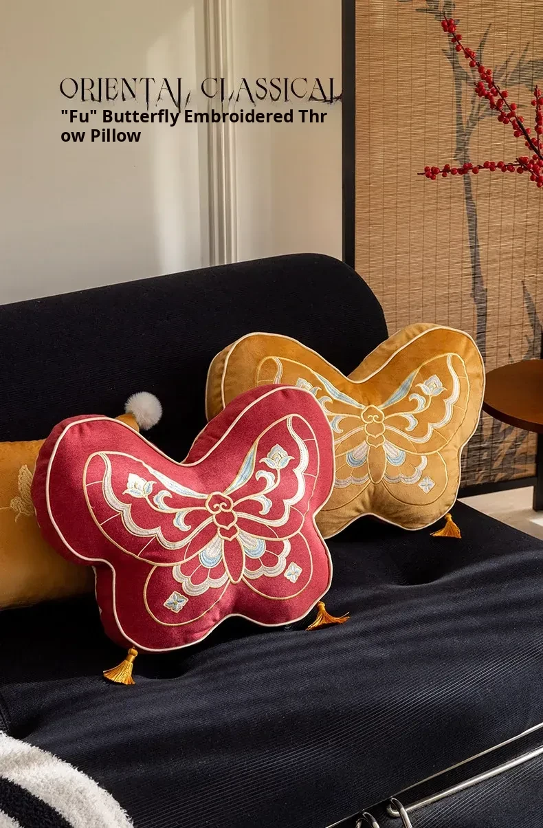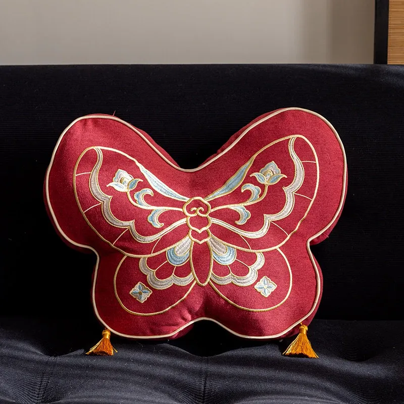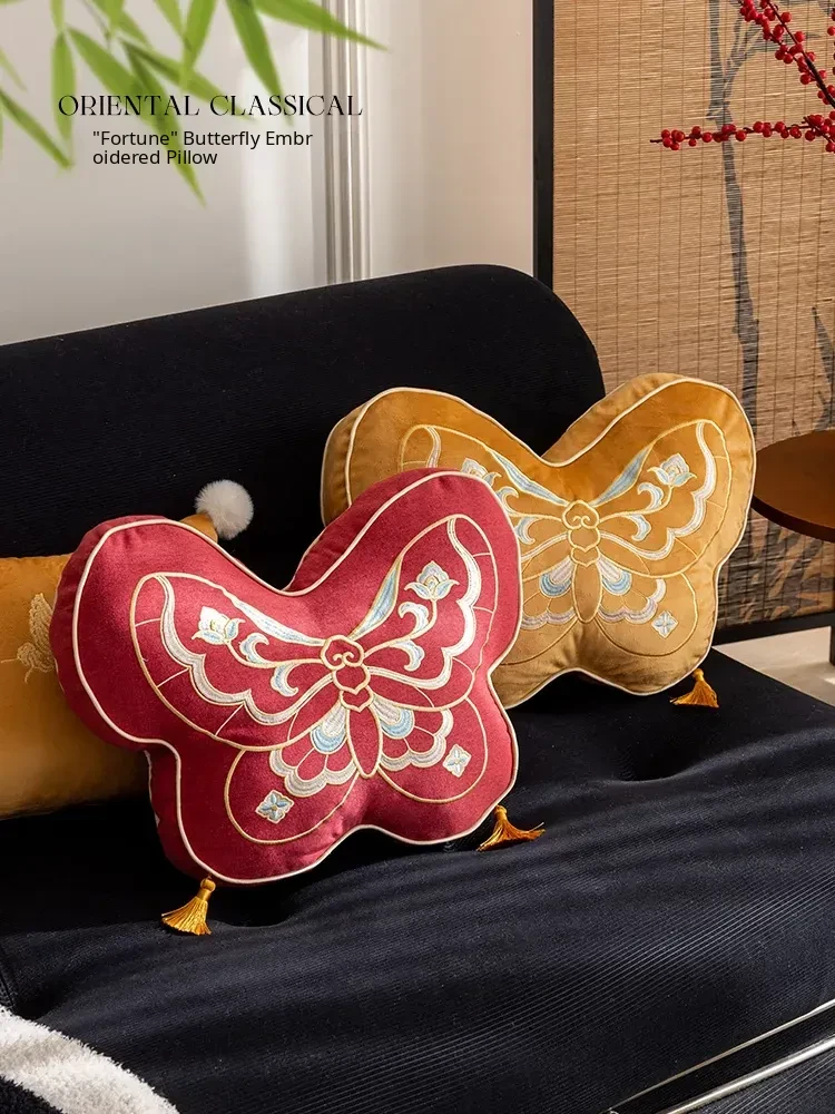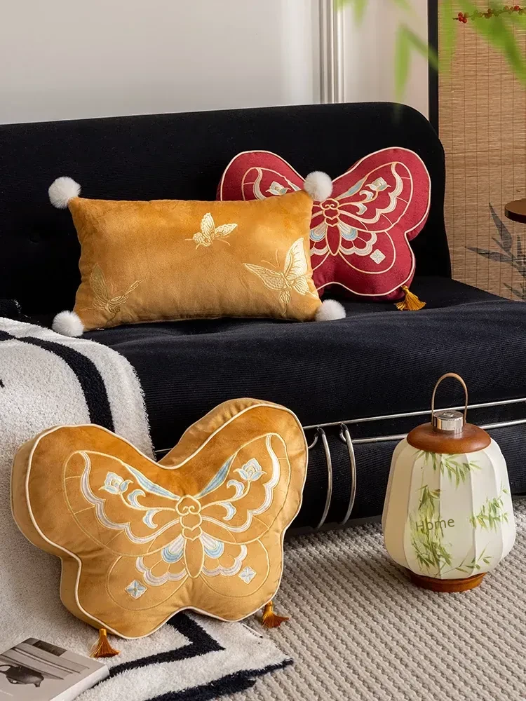 New Chinese Style Butterfly Embroidery Pillow - Unique Snake Year Cushion for Living Room Sofa, Festive and Adorable Decorative Pillow with Charming Butterfly Design for the New Year