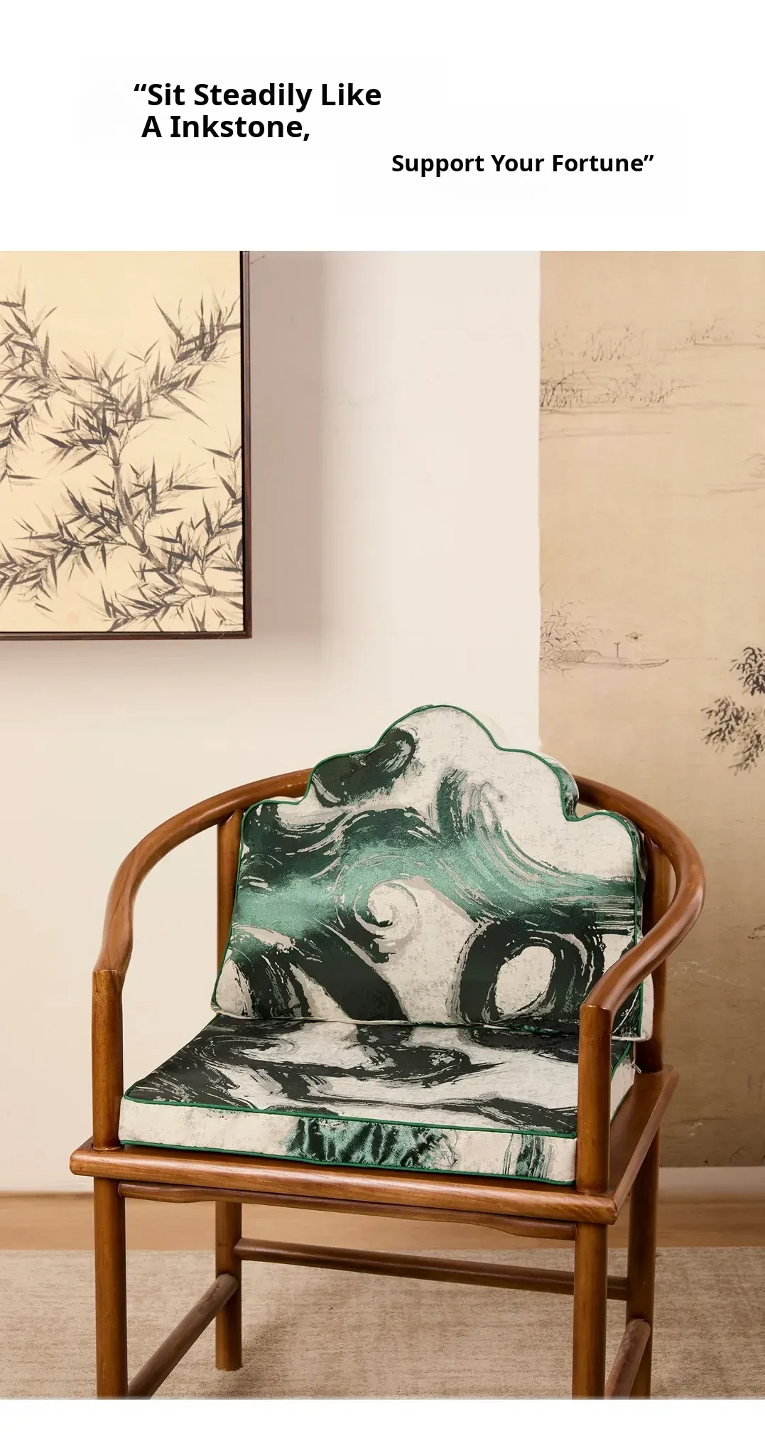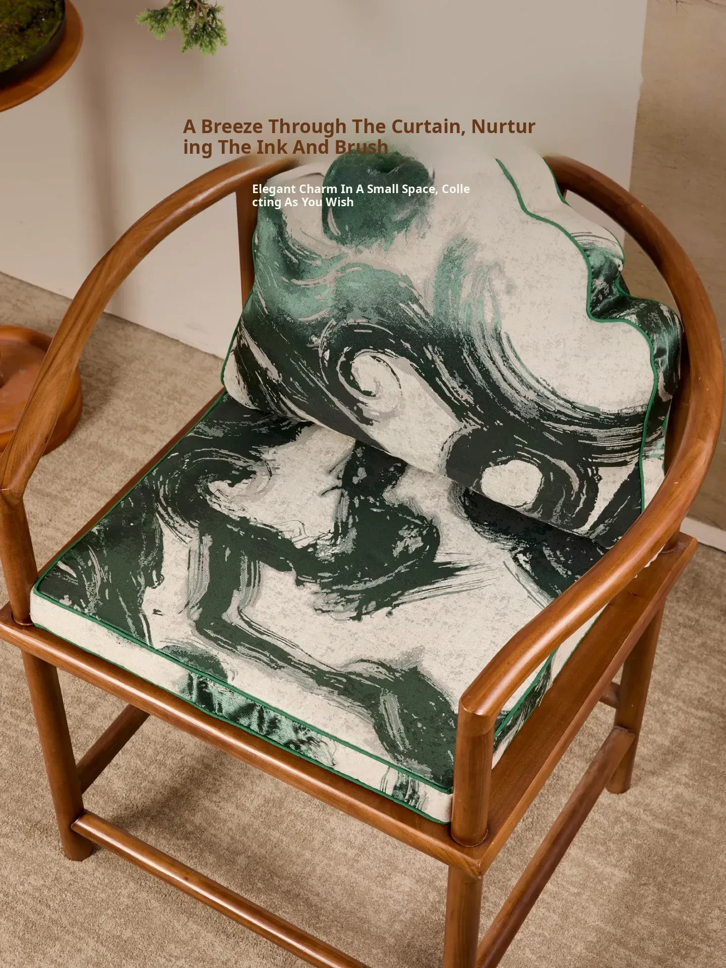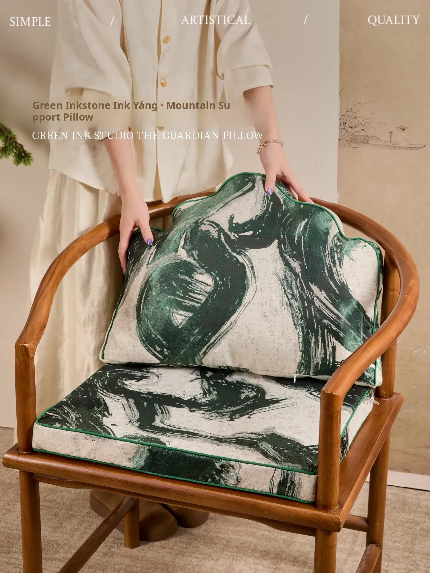 Green Ink Yang Backrest Pillow + Green Ink Yang Cushion (40*53Cm+40*50Cm)