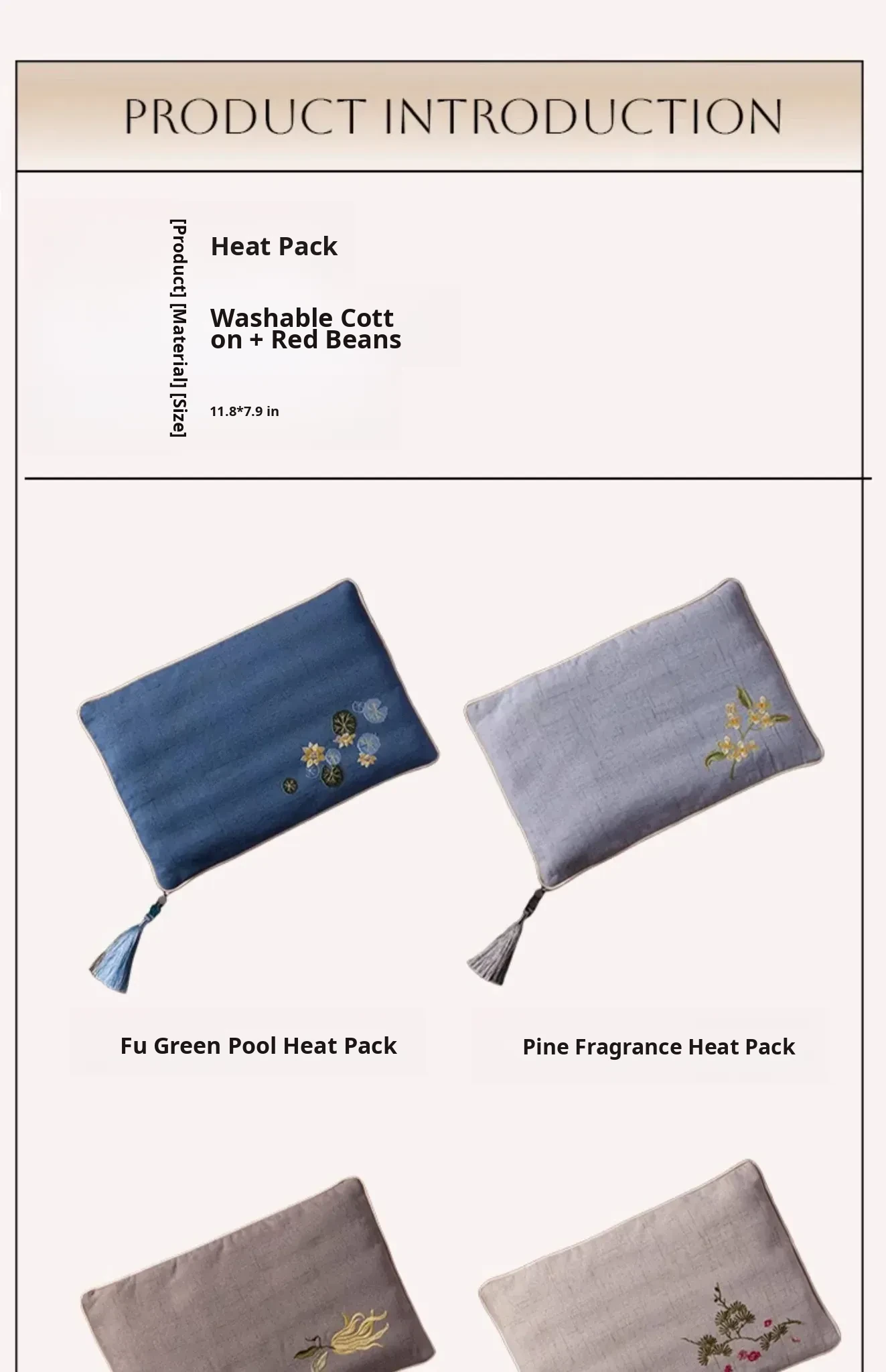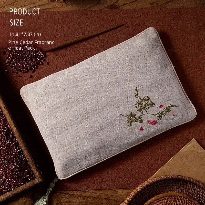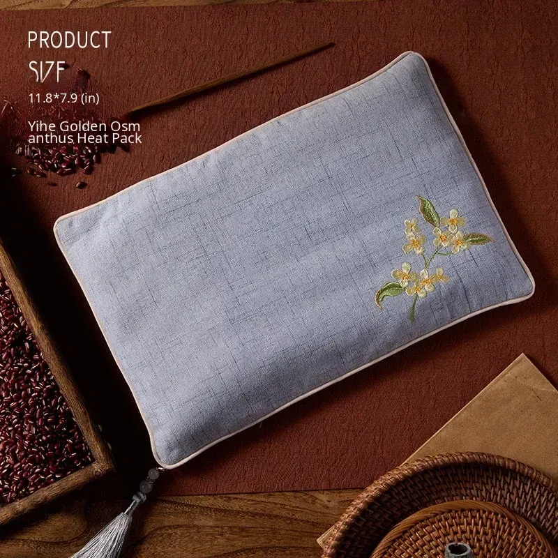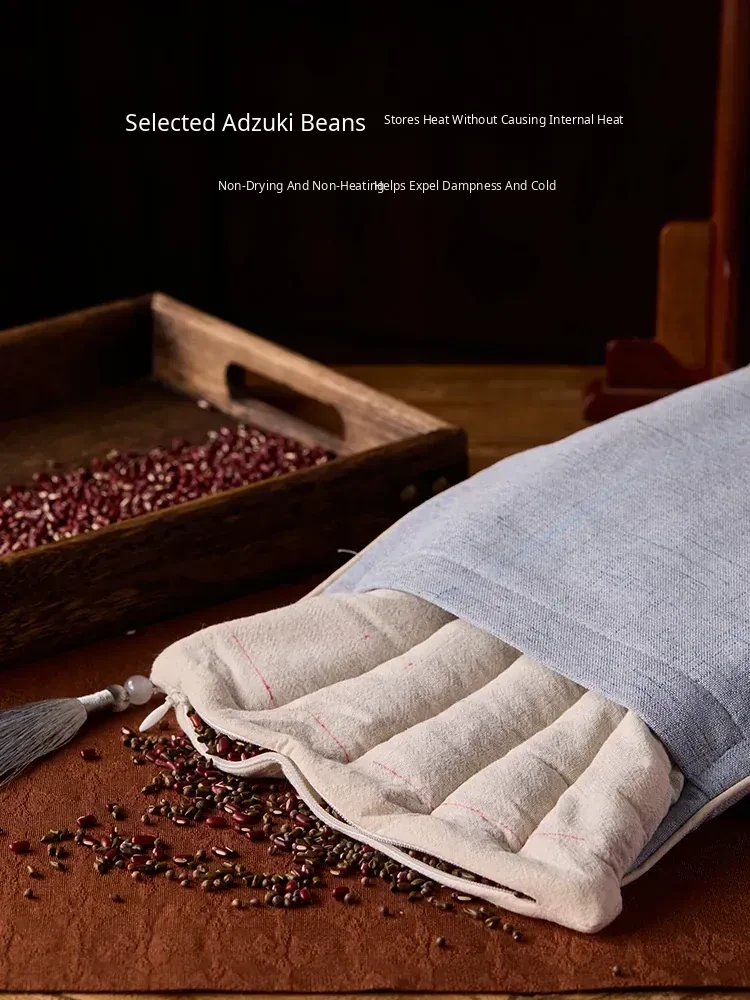 New Chinese Style Red Bean Heating Therapy Bag for Home Use – Herbal Moxibustion Warmth for Waist, Abdomen, Shoulders, and Neck. Embroidered Heating Pack for Relaxation and Beauty Treatments.