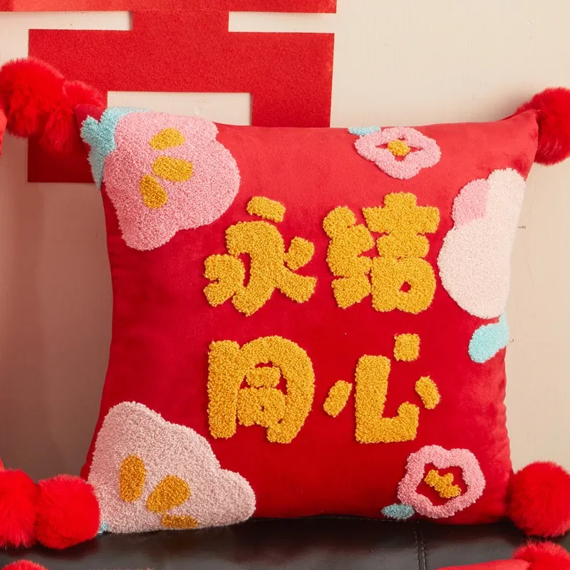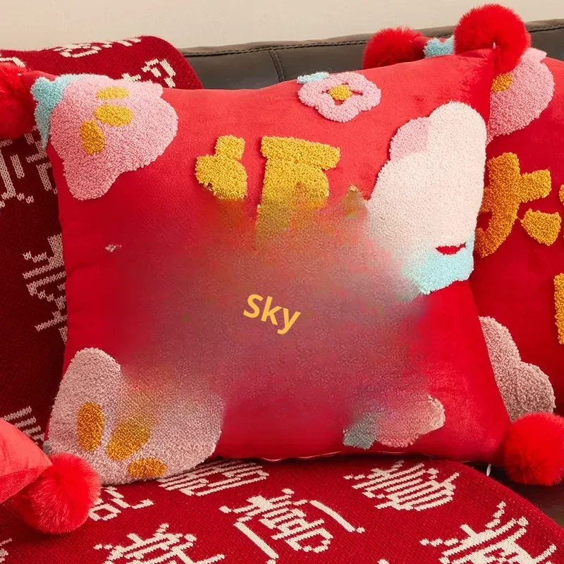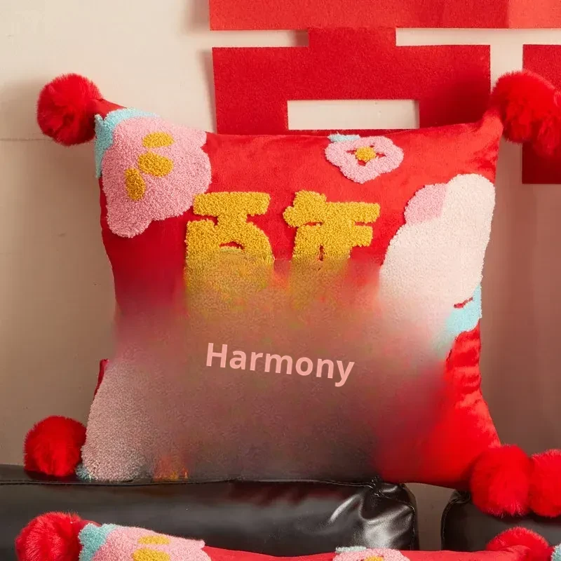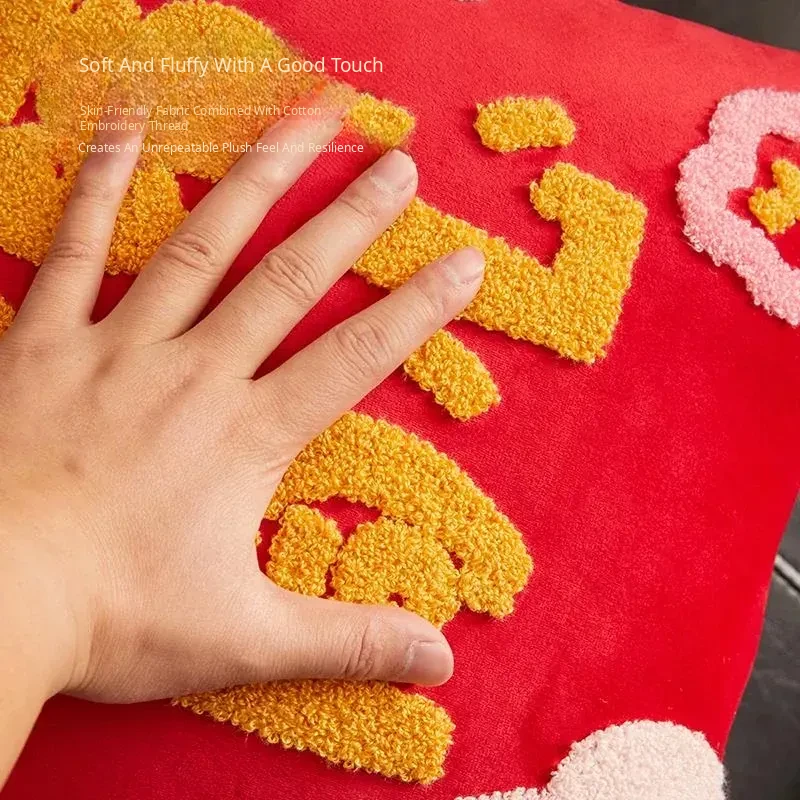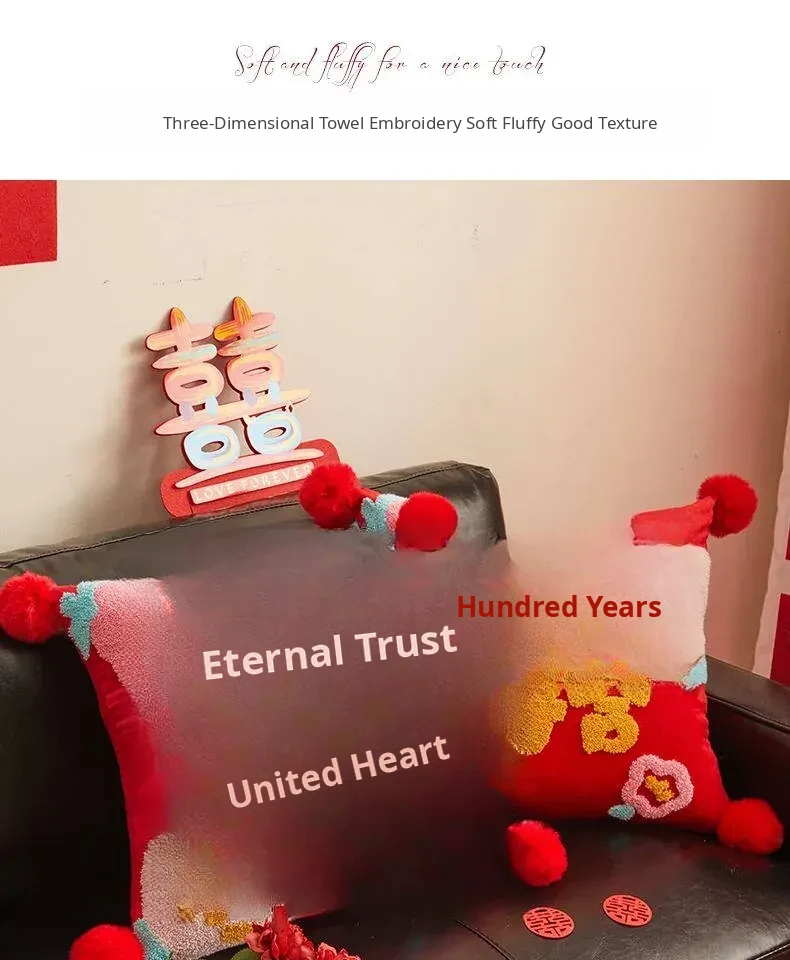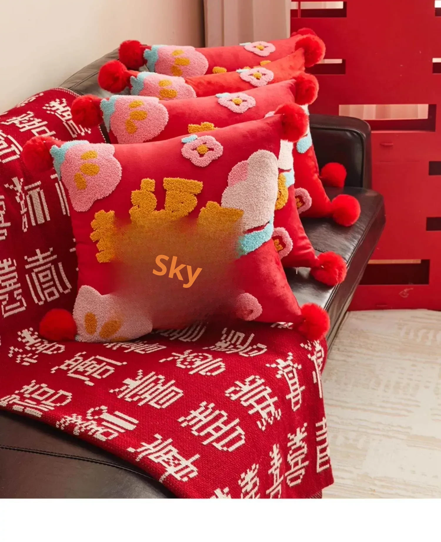 Red Chinese Wedding "Double Happiness" Pillows - Perfect for Marriage Rooms and Living Room Decoration, Ideal Sofa Cushions for Your Special Day