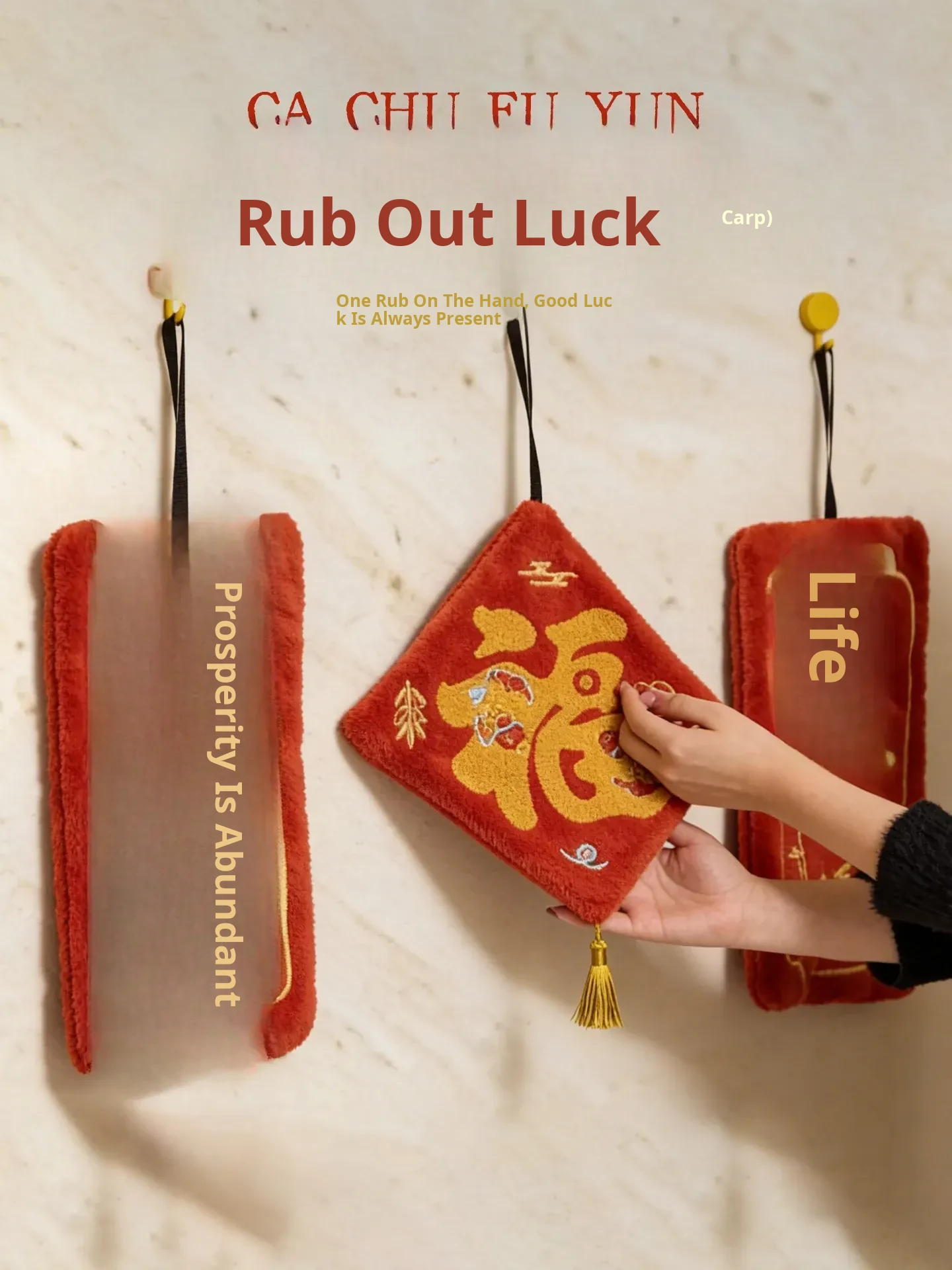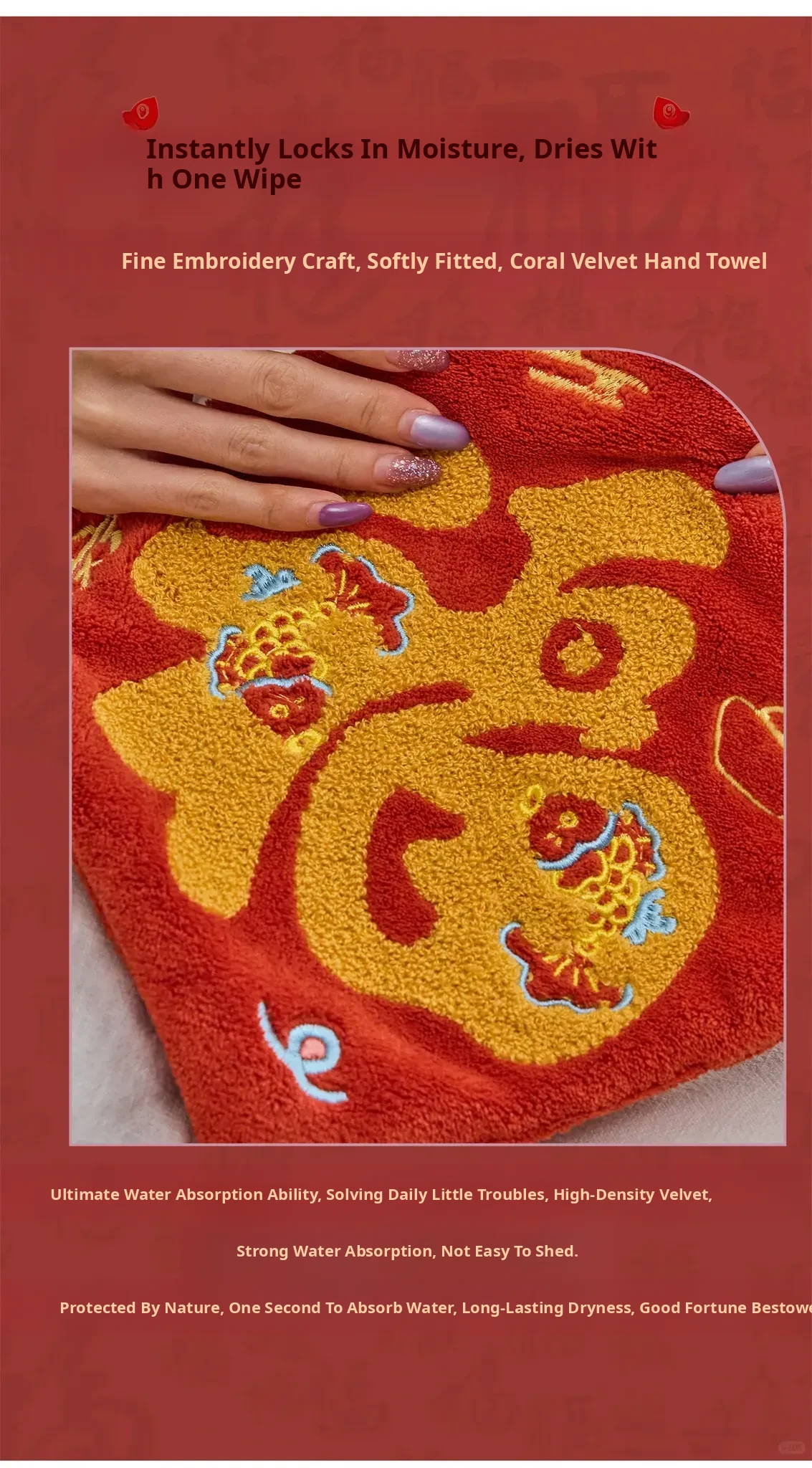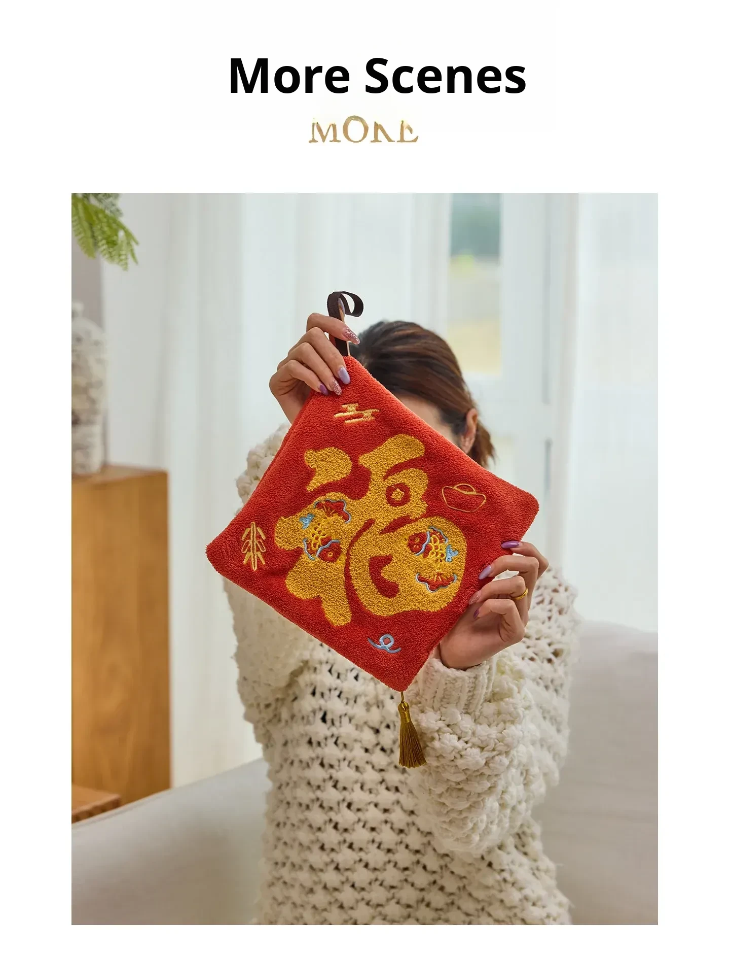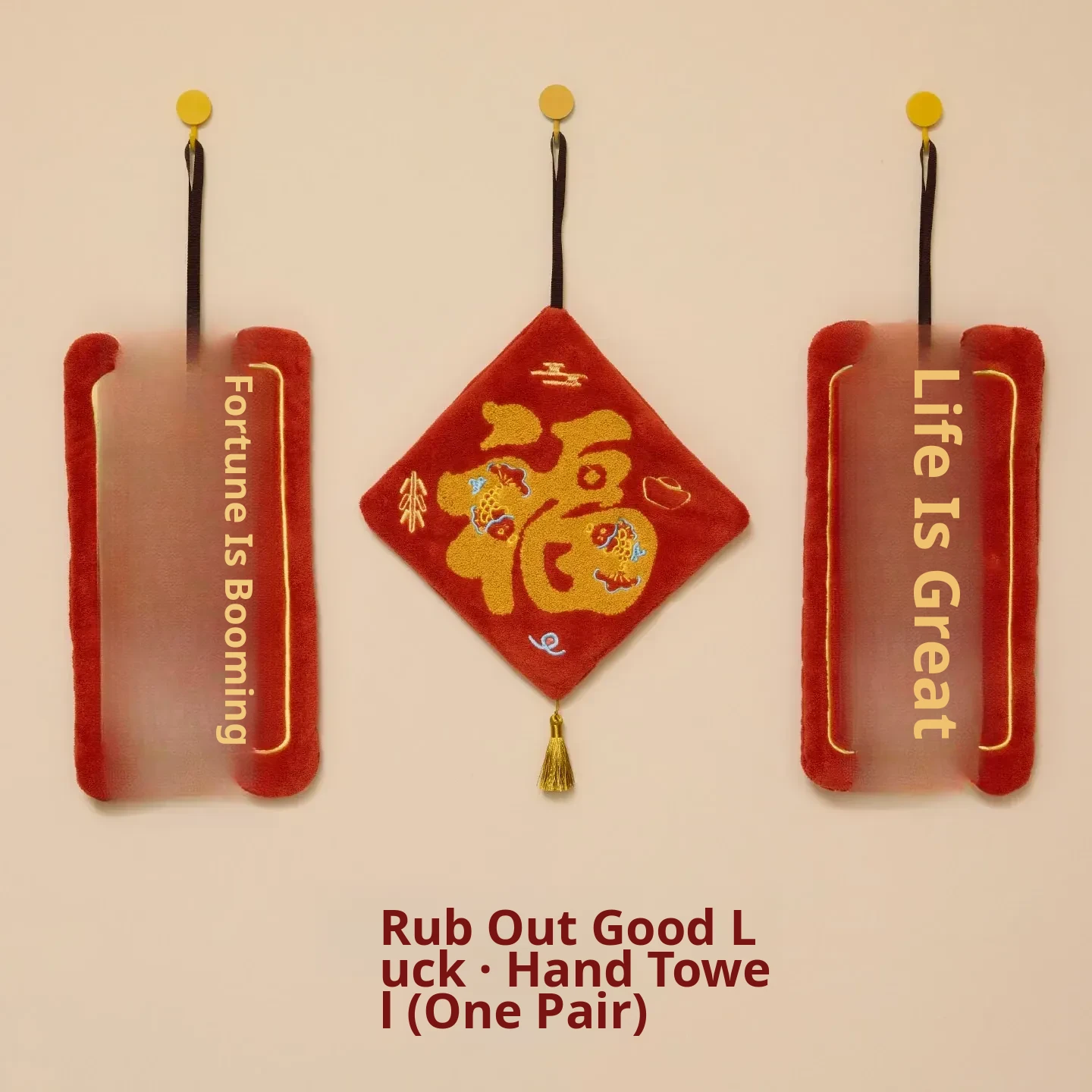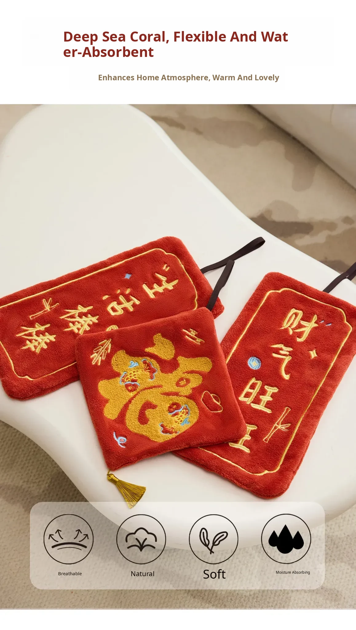 Red Hanging Hand Towel with Blessing Character - Extra Thick, Super Absorbent, Large Size - Perfect for Kids as New Year Gift!