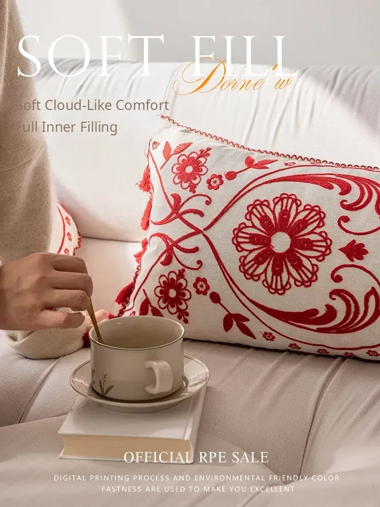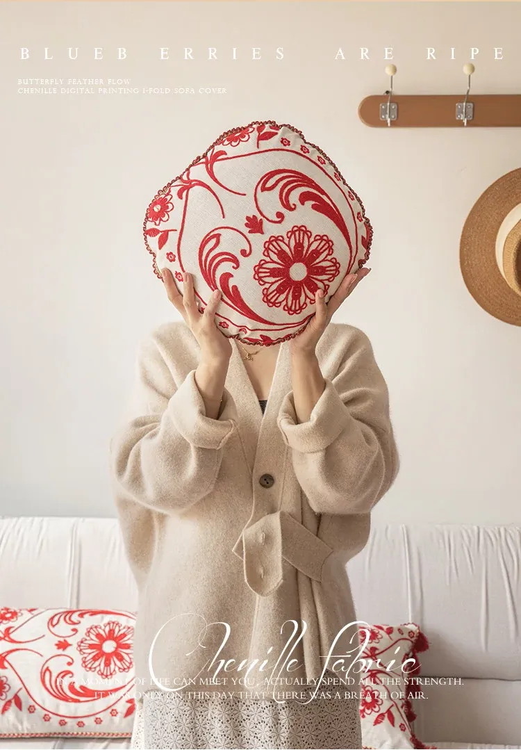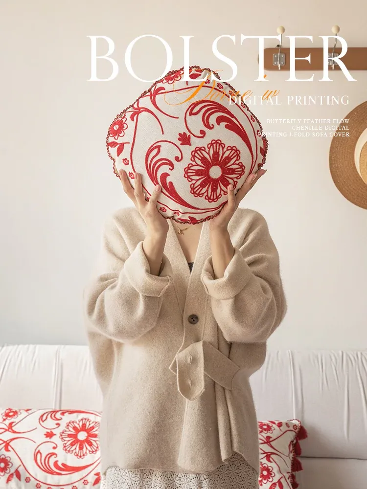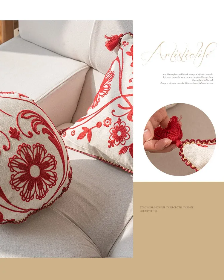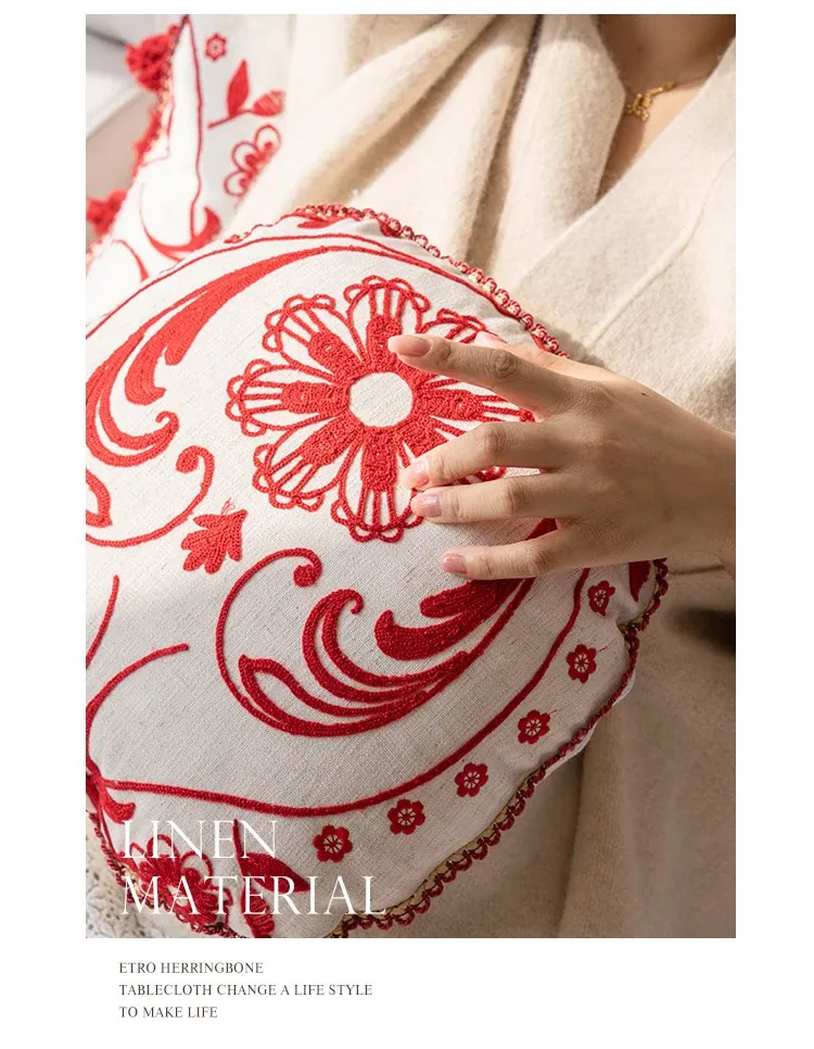 Jiang Yun Red Embroidered Round Pillow Diameter 13.78in Pillowcase + Pillow Core