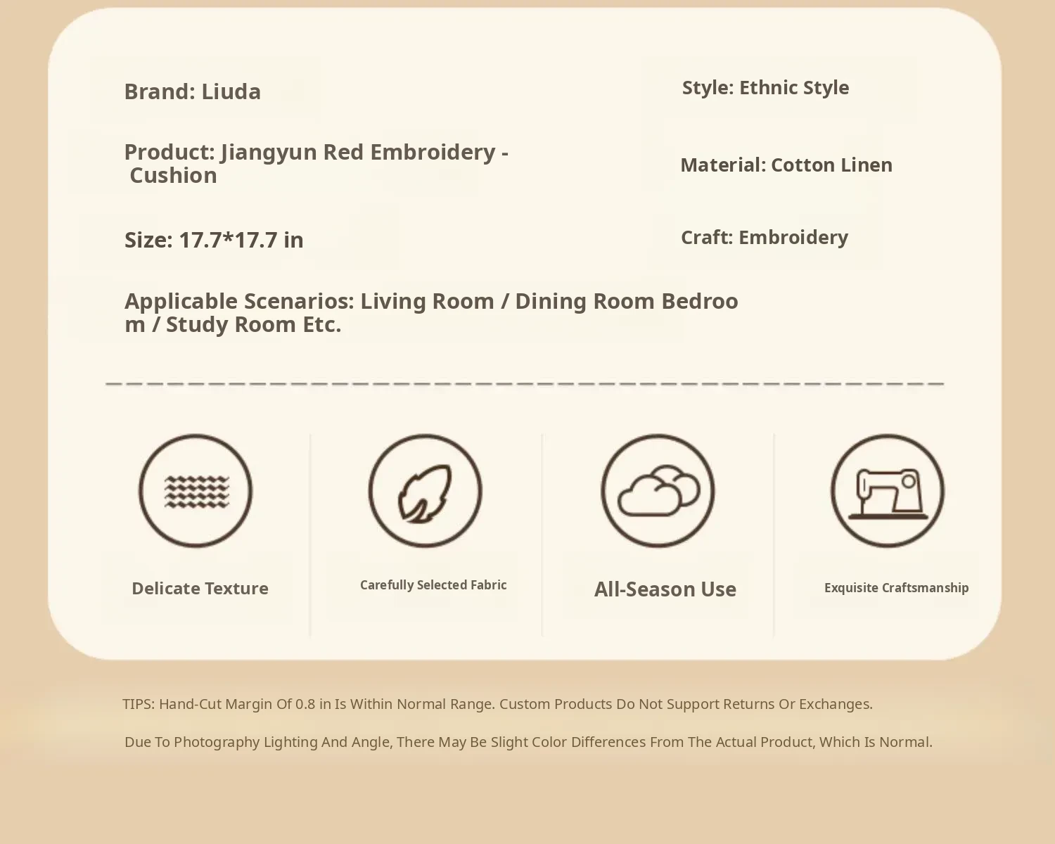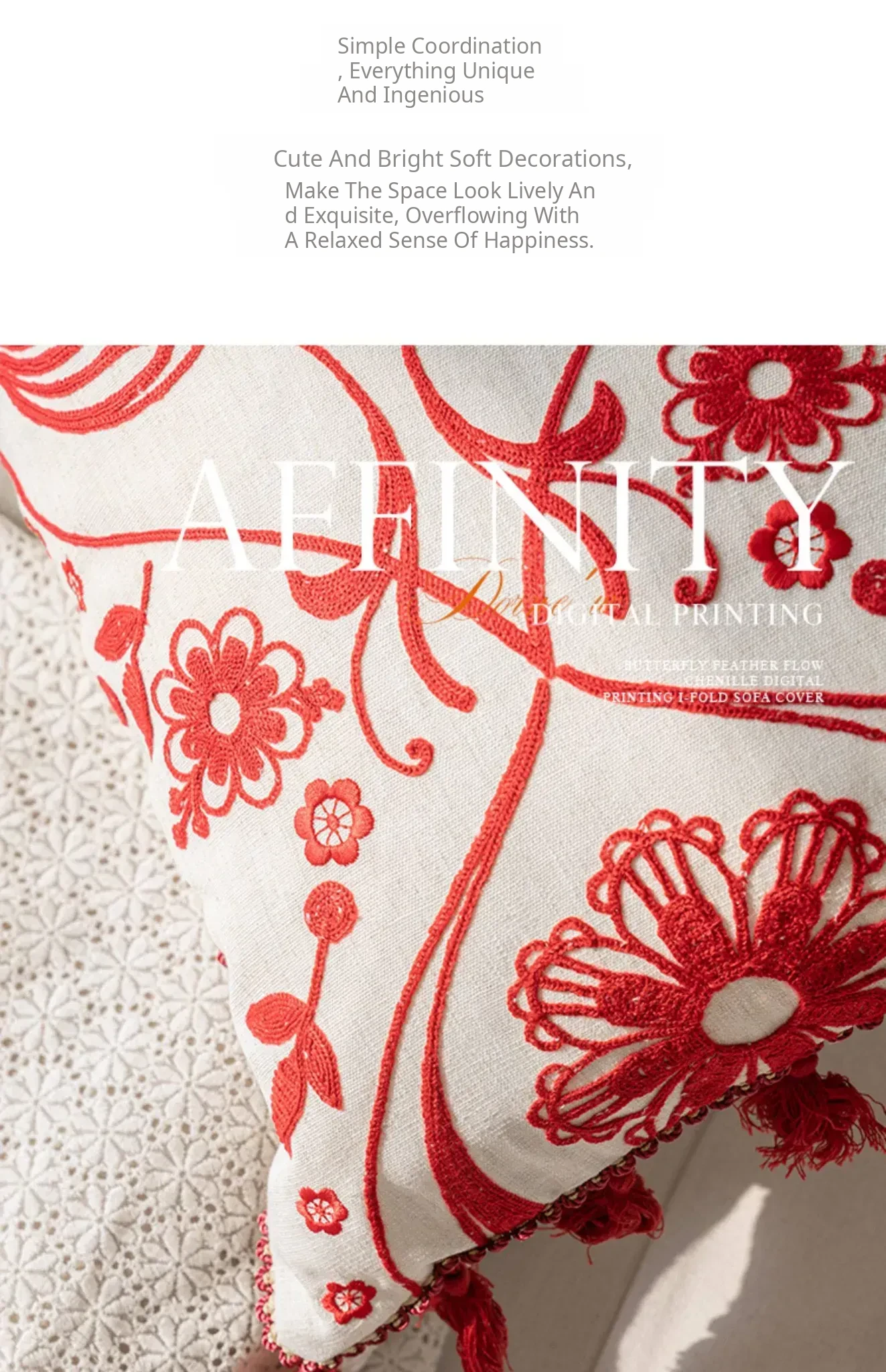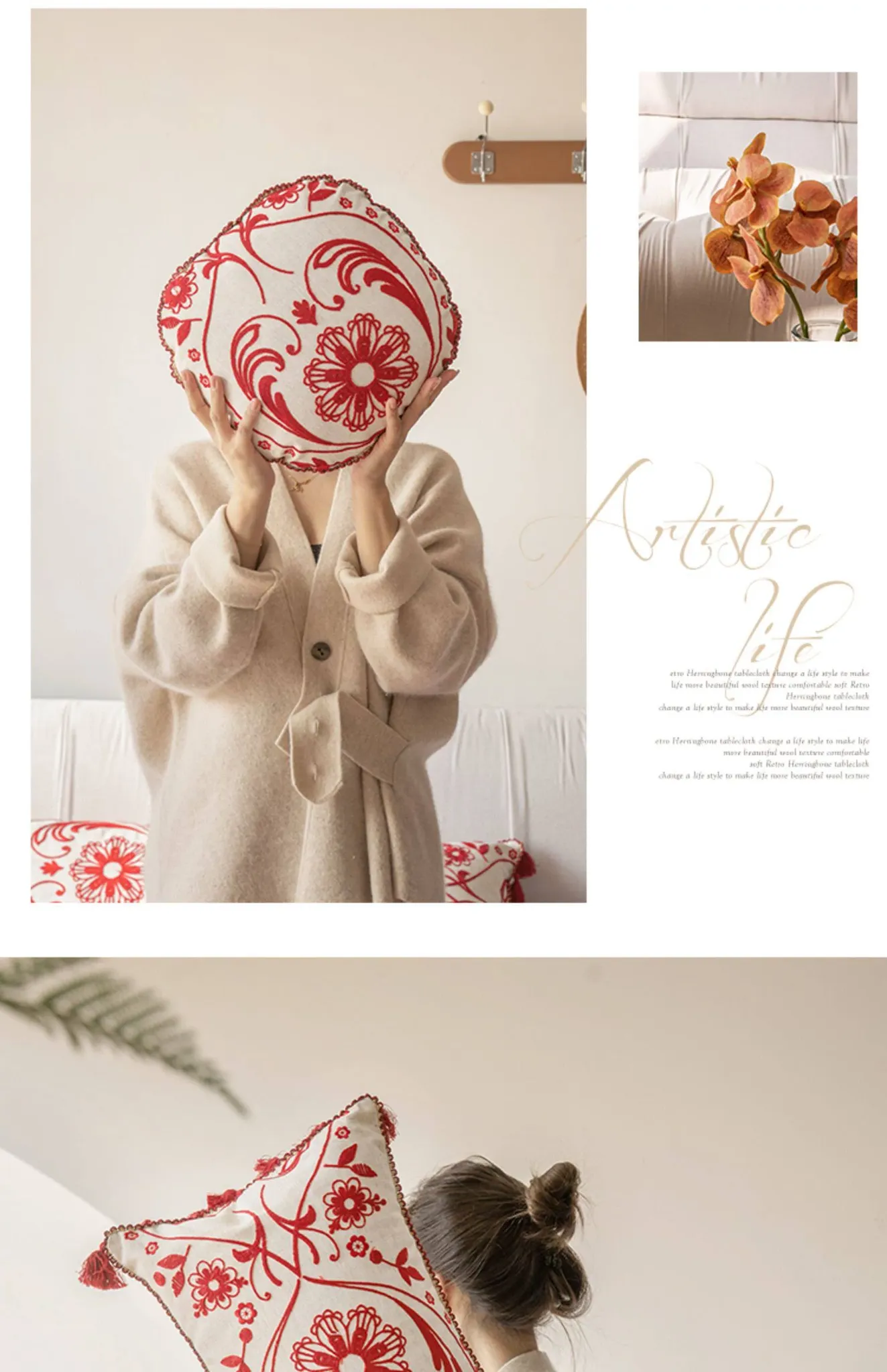 Jiang Yun Red Embroidered Round Pillow Diameter 13.78in Pillowcase + Pillow Core