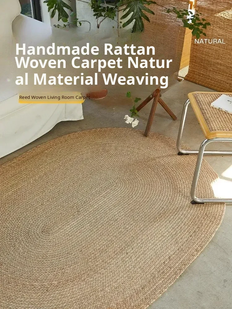 Handcrafted Oval Woven Grass Mat - Natural Straw Floor Rug for Sofa, Entryway, Bedroom, and Living Room - Japanese Style Eco-Friendly Accent Carpet