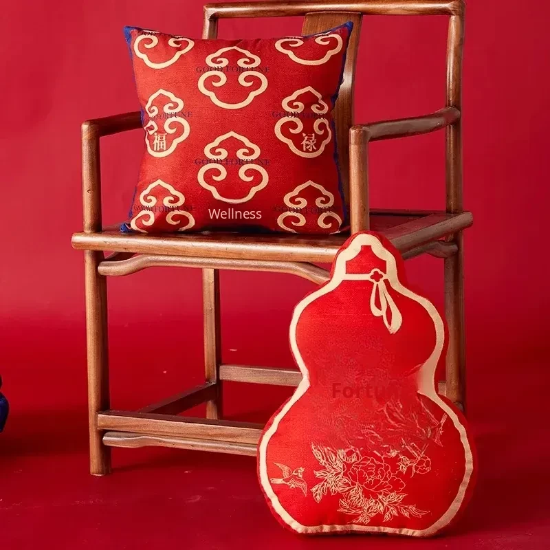 Chinese Blessing Gourd Pillow Cover - Red Festive Cushion for Living Room Sofa, Perfect for Chinese New Year and Spring Festival Decor, Trendy National Style Home Accent