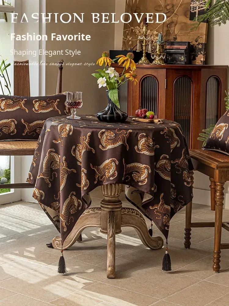 Vintage American Style Round Tablecloth for Balcony – Elegant Retro Design for Small Round Dining Tables and Coffee Tables – Perfect for Home Décor and Entertaining
