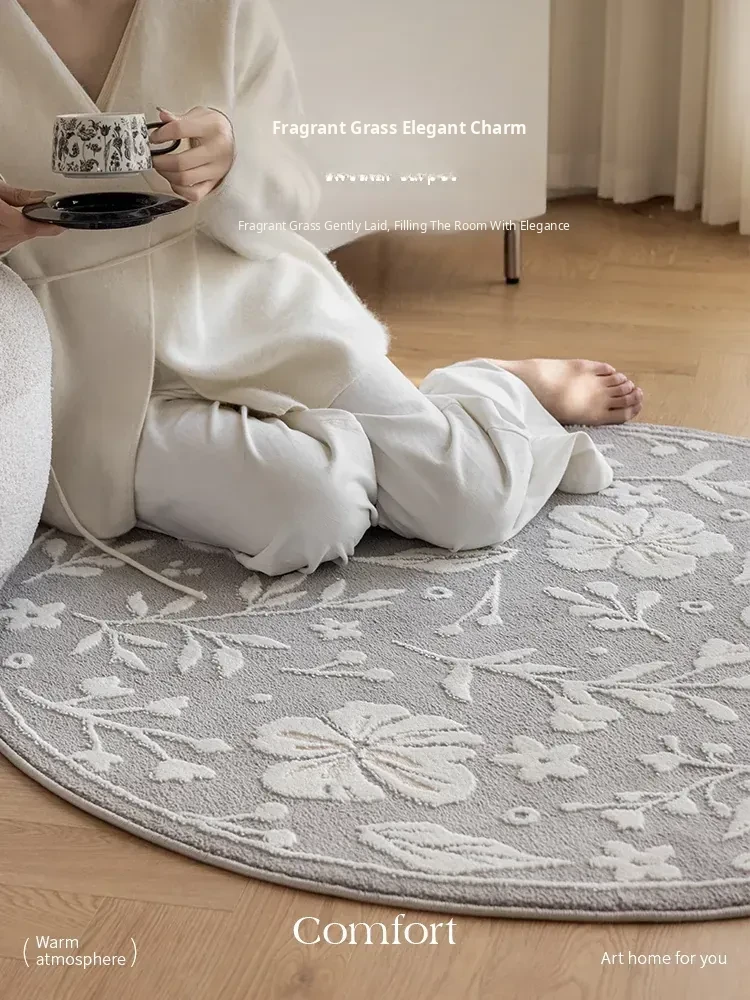 New American Style Round Woven Area Rug for Living Room - Elegant High-End Carpet for Sofa and Coffee Table, Luxurious Bedside Blanket, Perfect for Chic Decor