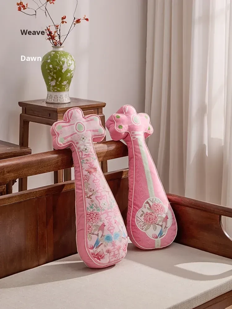 Elegant New Chinese Style Pipa-Shaped Decorative Pillow - Luxurious Sofa Cushion for Living Room, Window Seat Back Support, Perfect for Home Use and Bedside Comfort