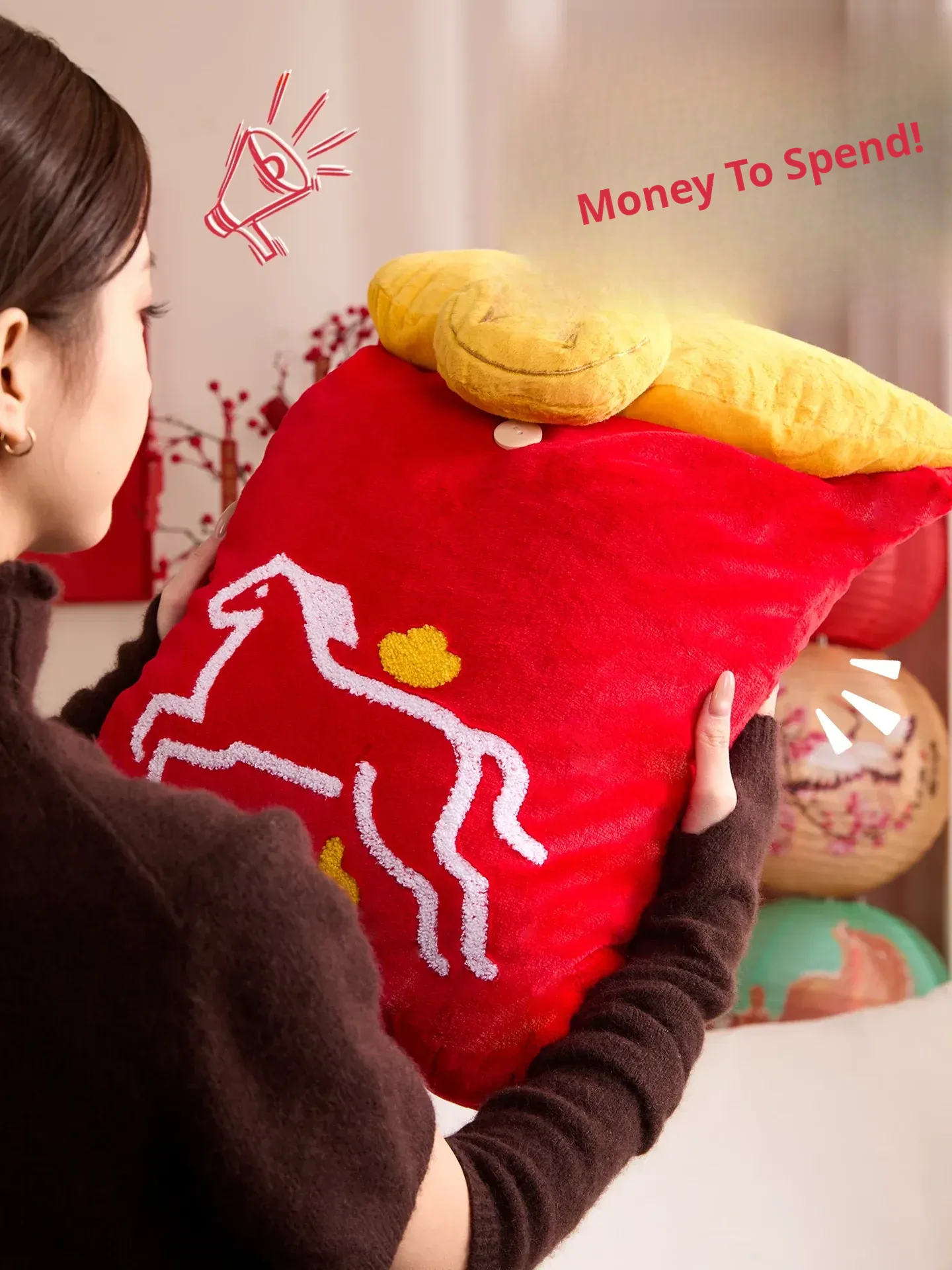 Creative New Year Embroidered "Fu" Pillow Blanket – Festive Red Home Decor, Cute and Quirky Design for Photos and Comfort